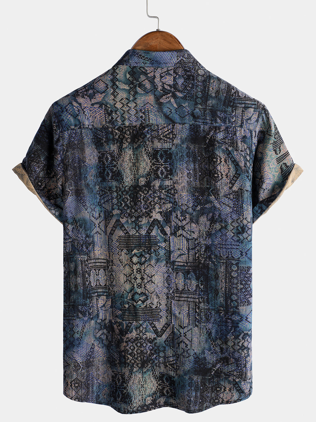 Men's Soft Hawaiian Short-Sleeved Shirt With Vintage Floral Print For Vacation