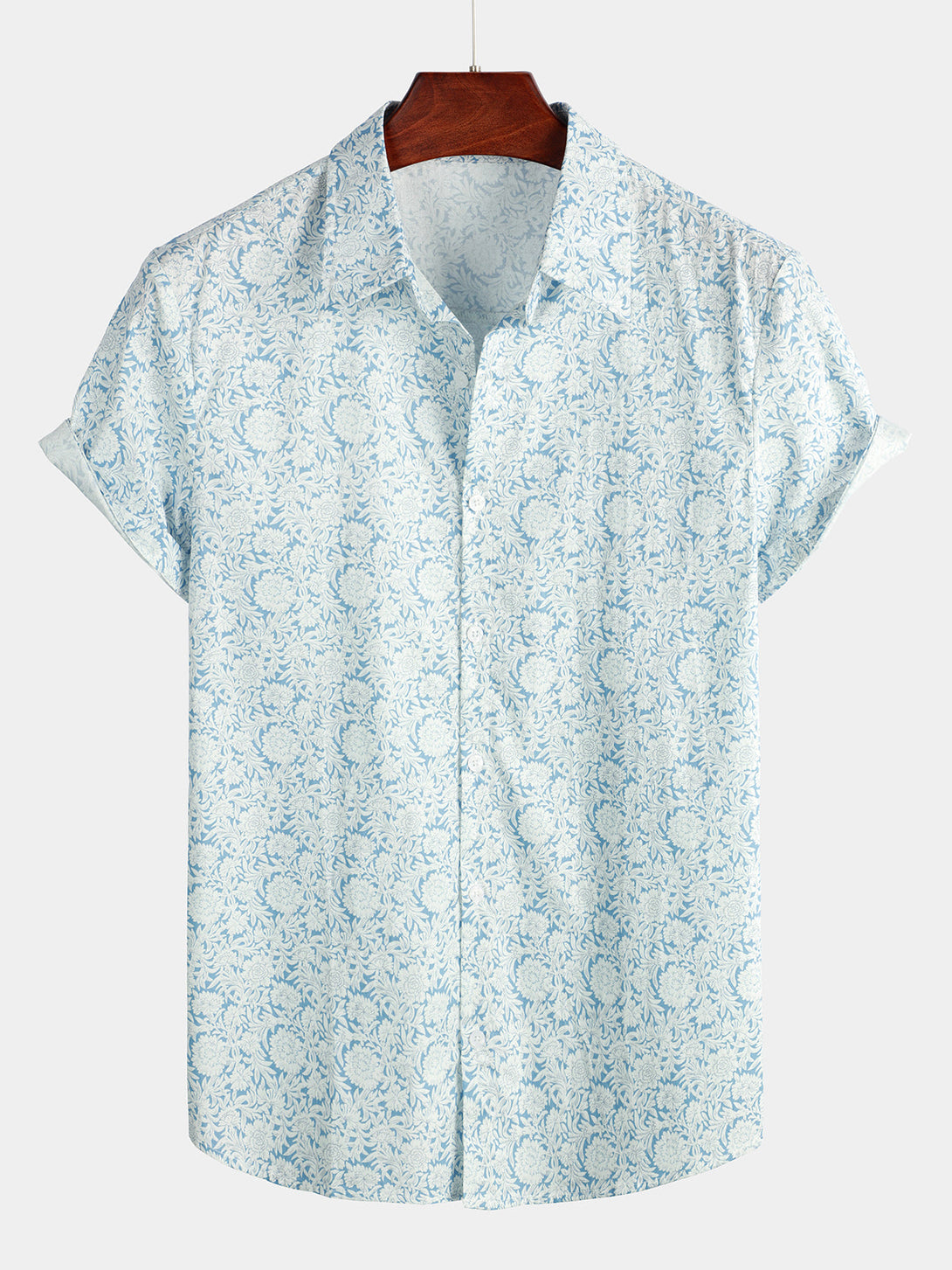 Casual Cotton Shirt With Floral Pattern For Vacation