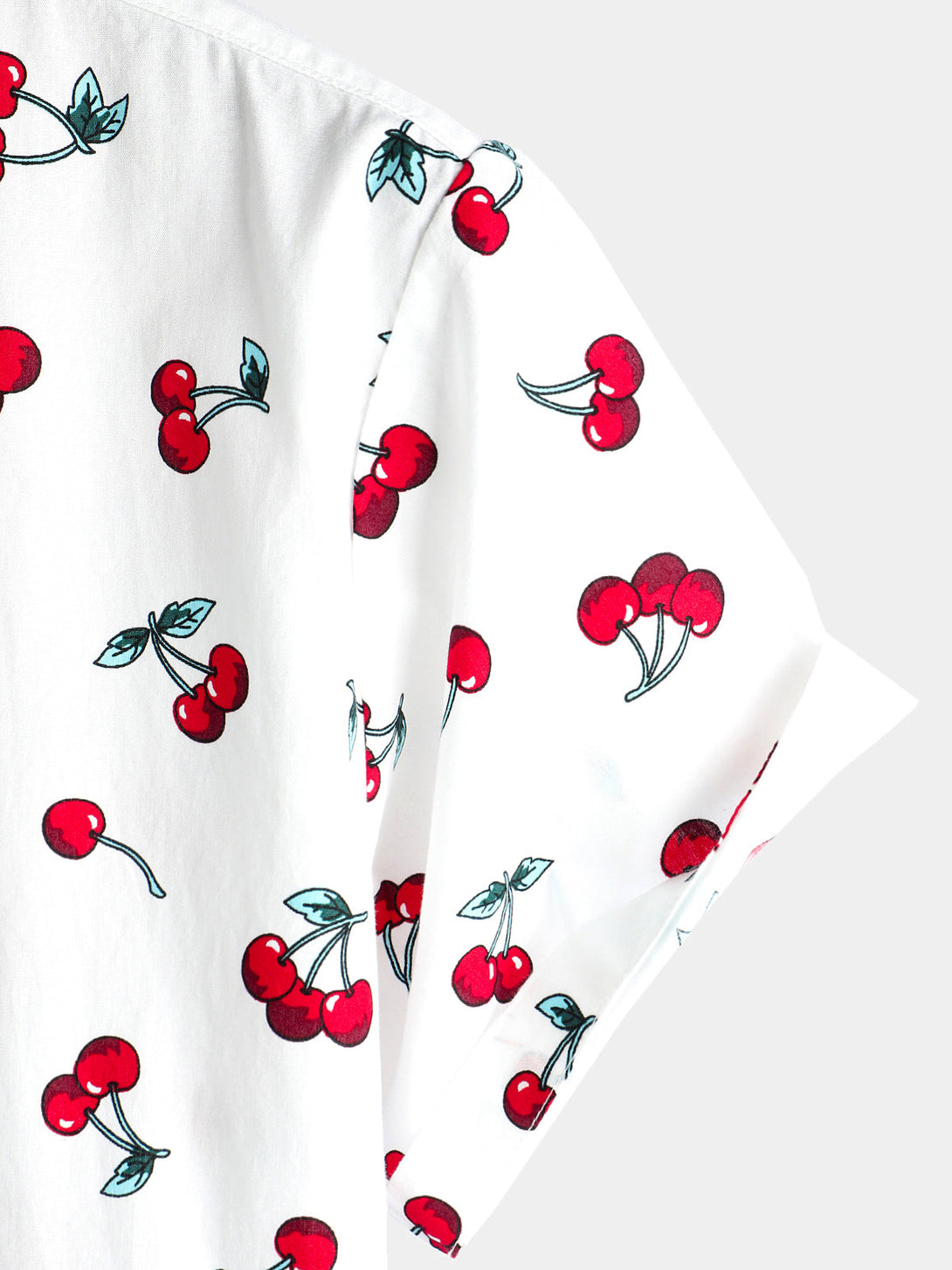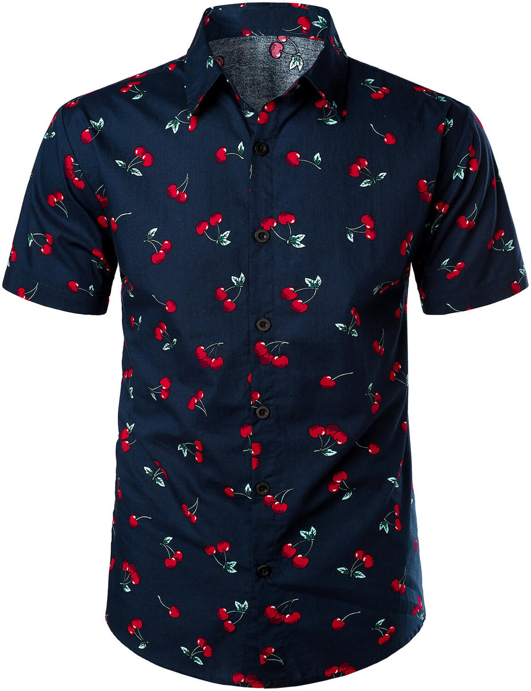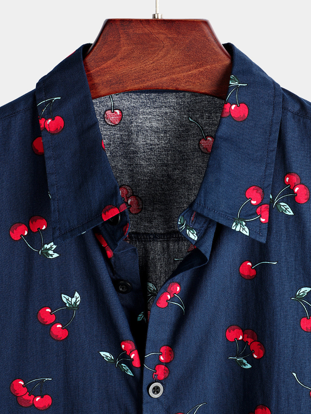 Men's Shirt Made Of Tropical Hawaiian Cotton With Cherry Pattern