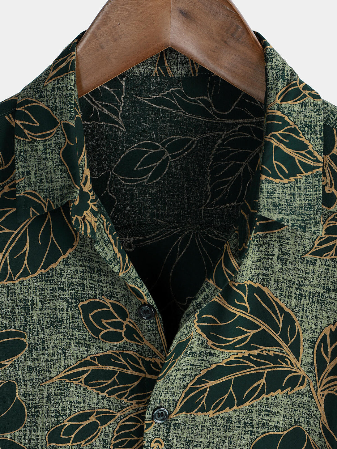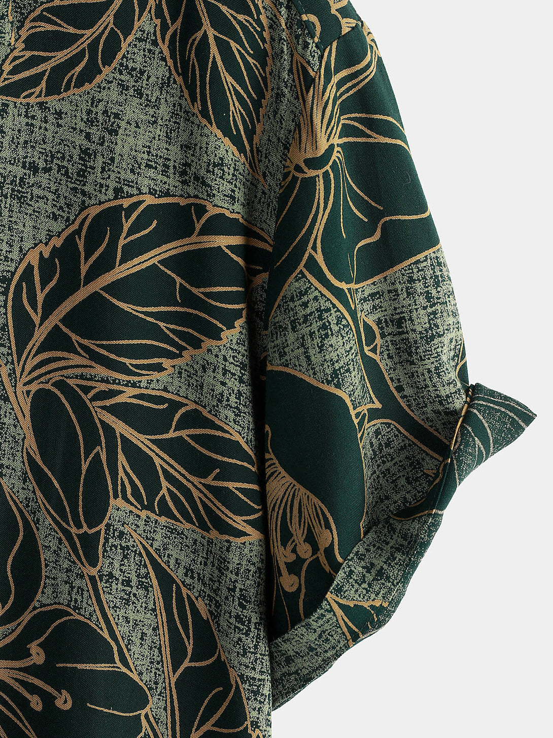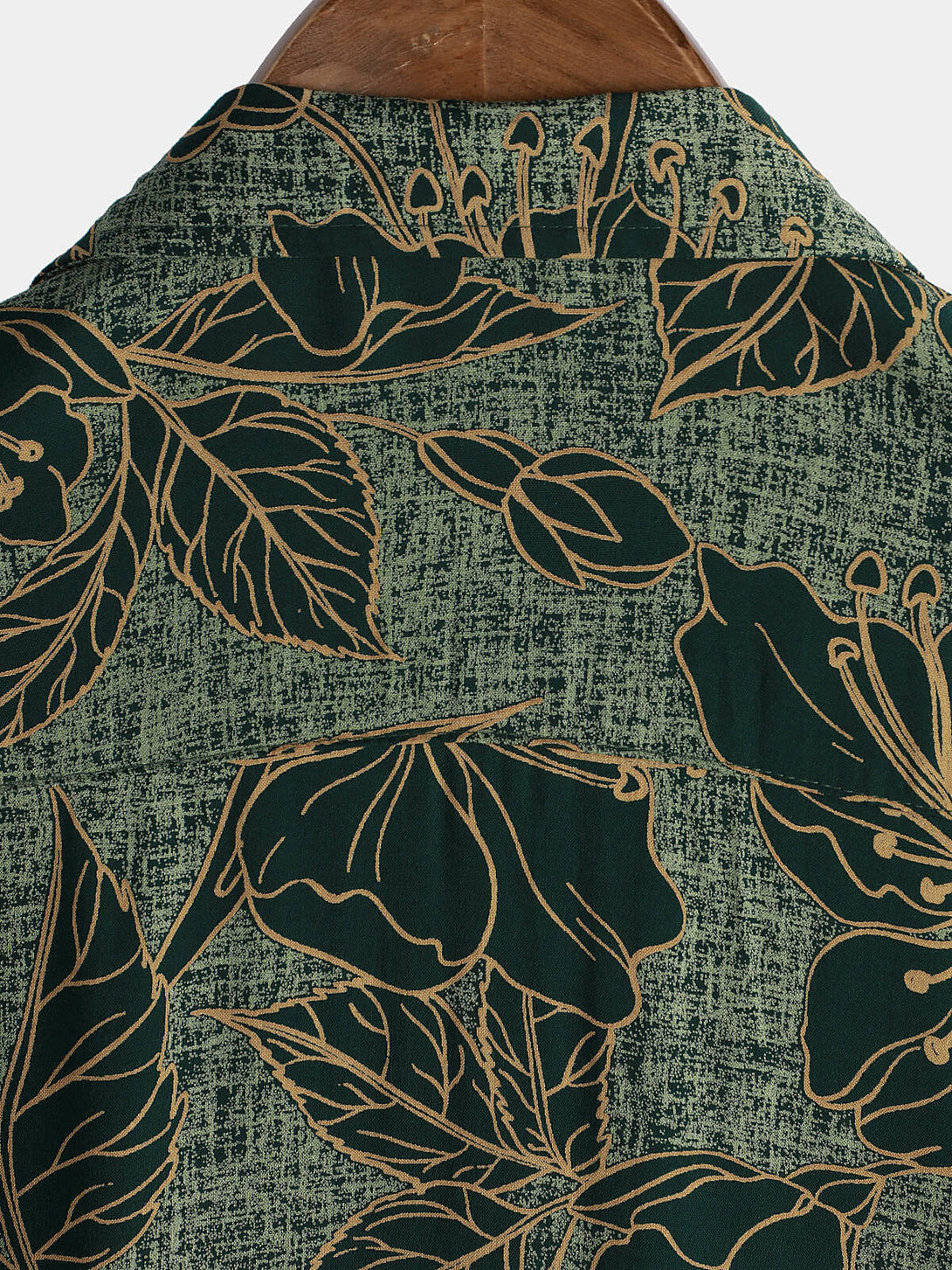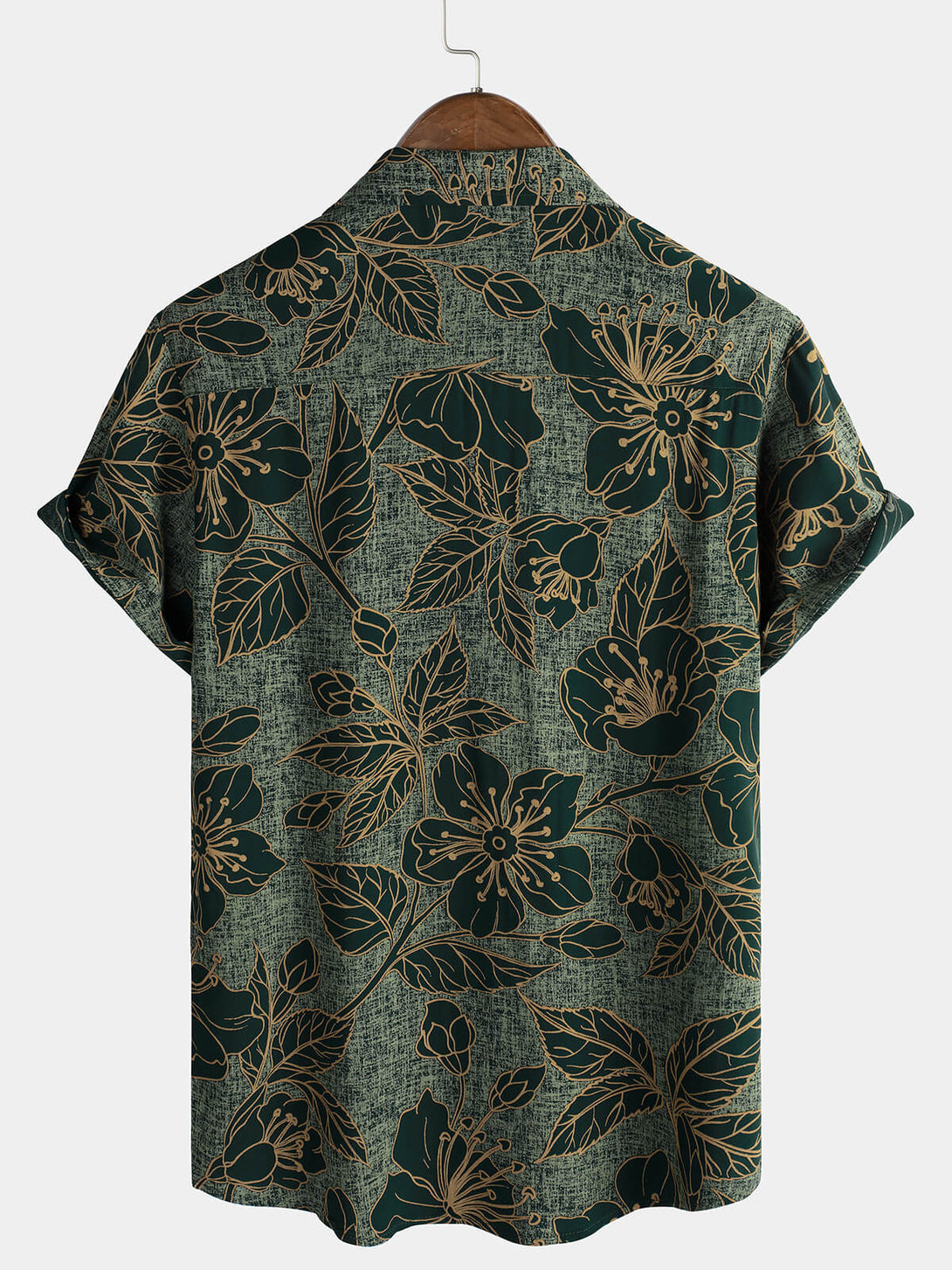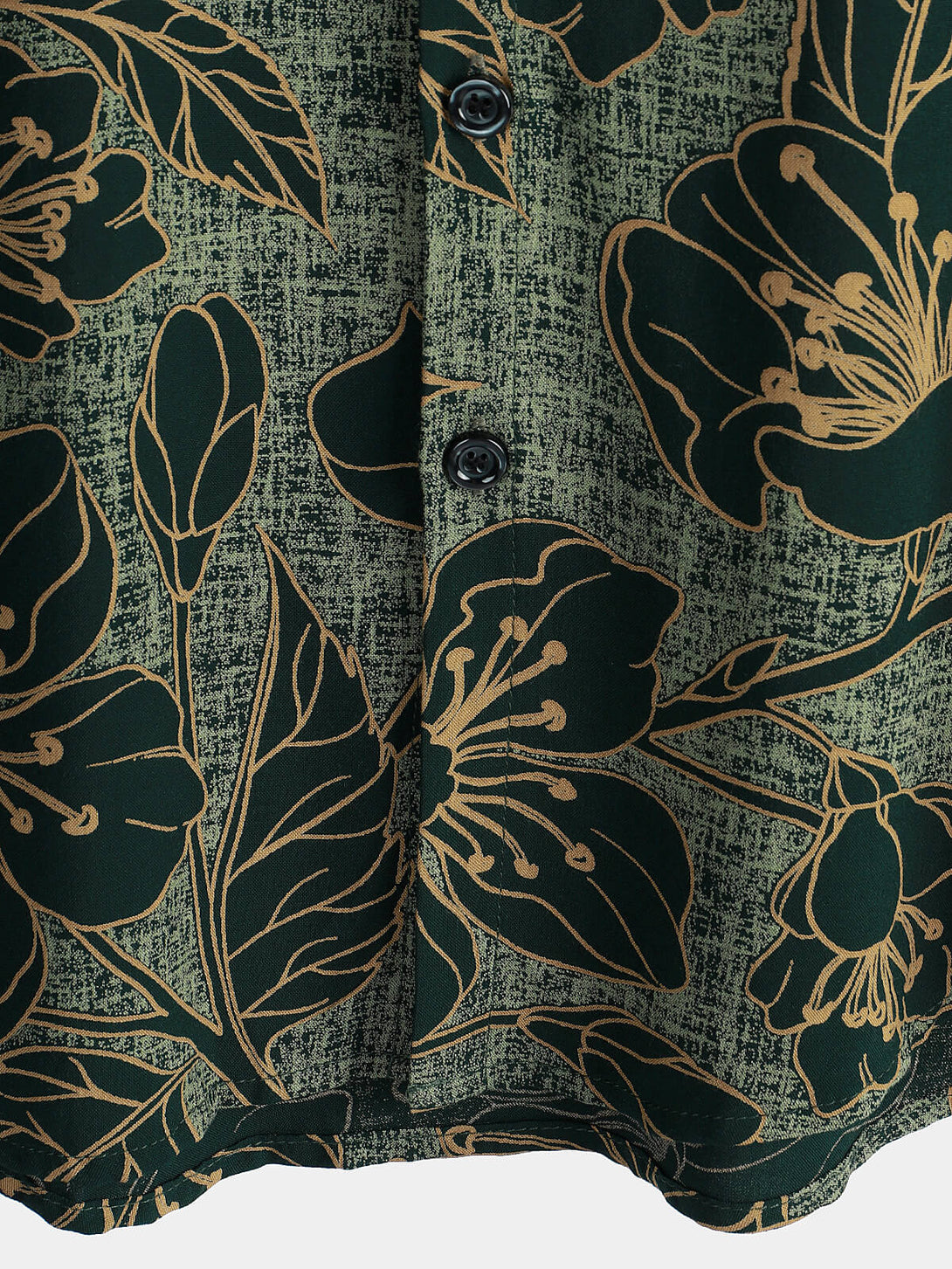 Men's Vintage Green Floral Print Button-Down Summer Holiday Short Sleeve Shirt