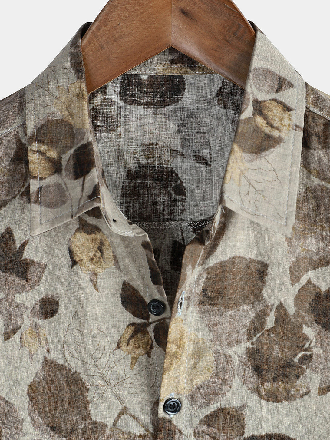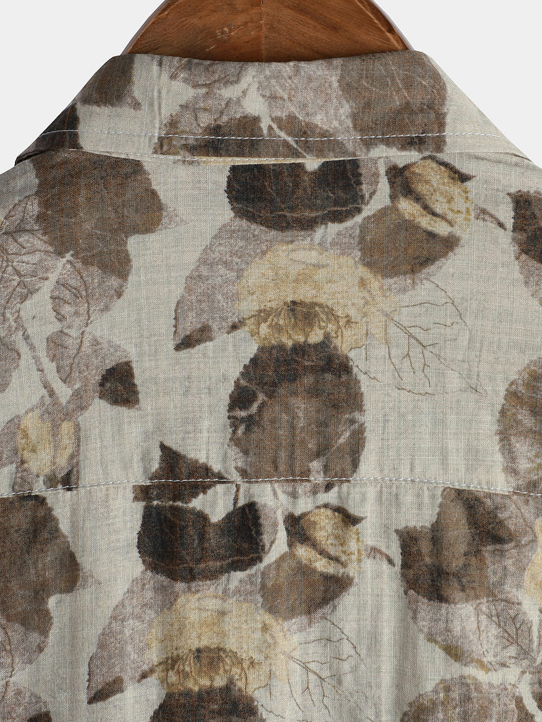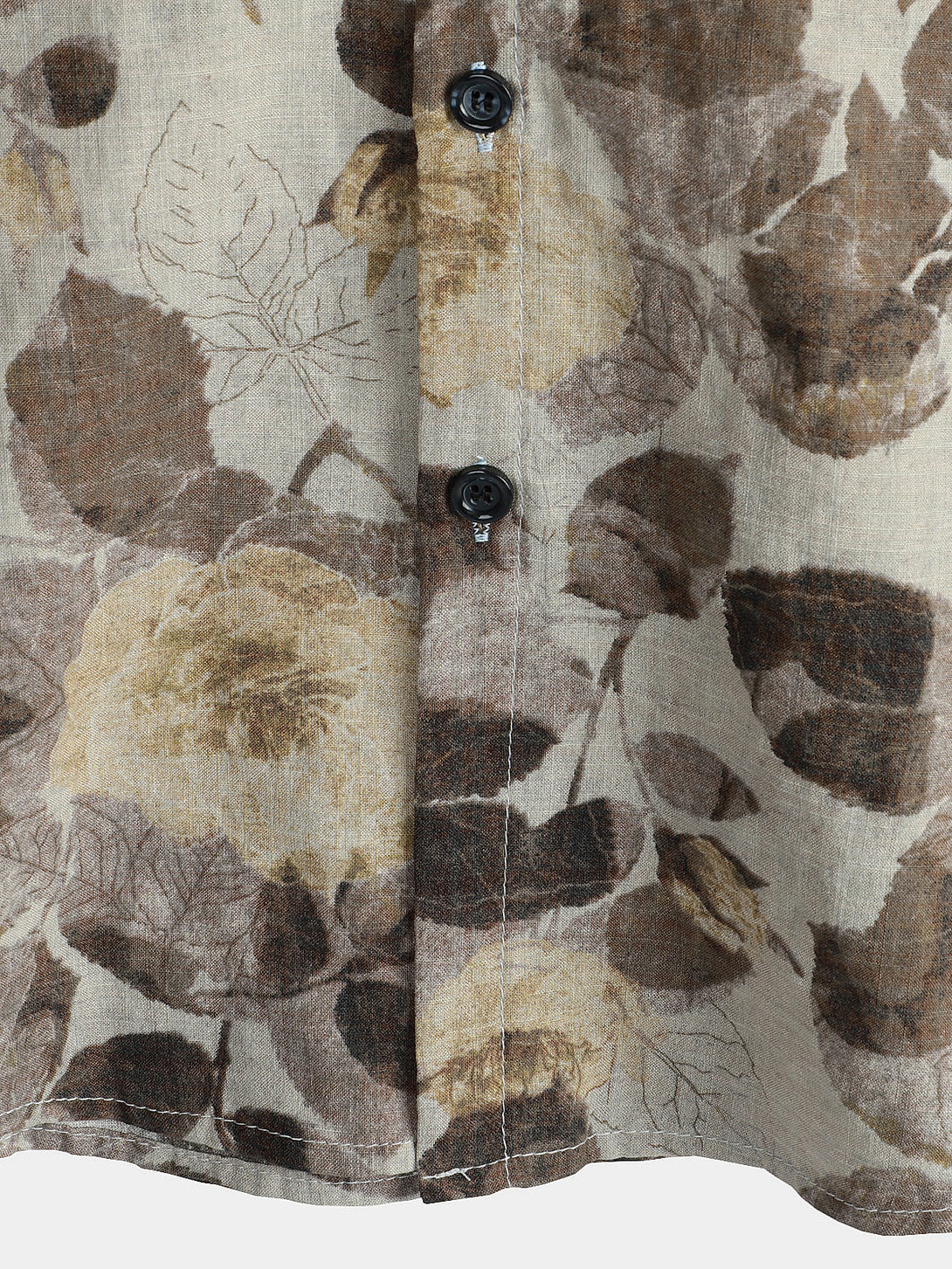 Men's Floral Print Vintage Short Sleeve Retro Beach Cotton Button Down Shirt