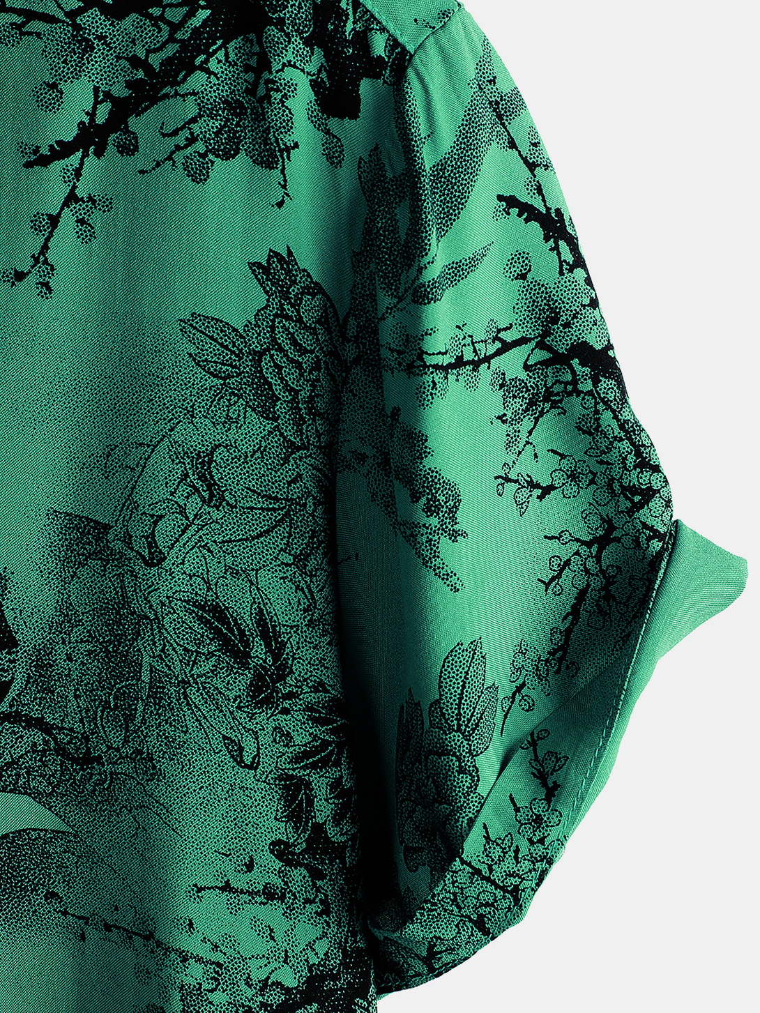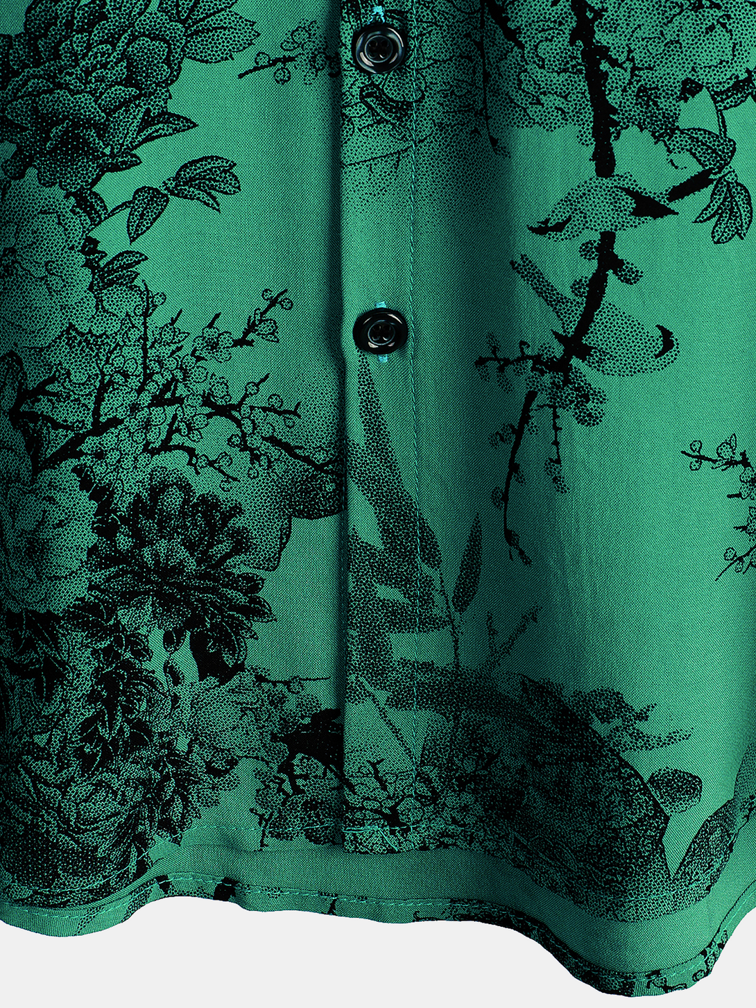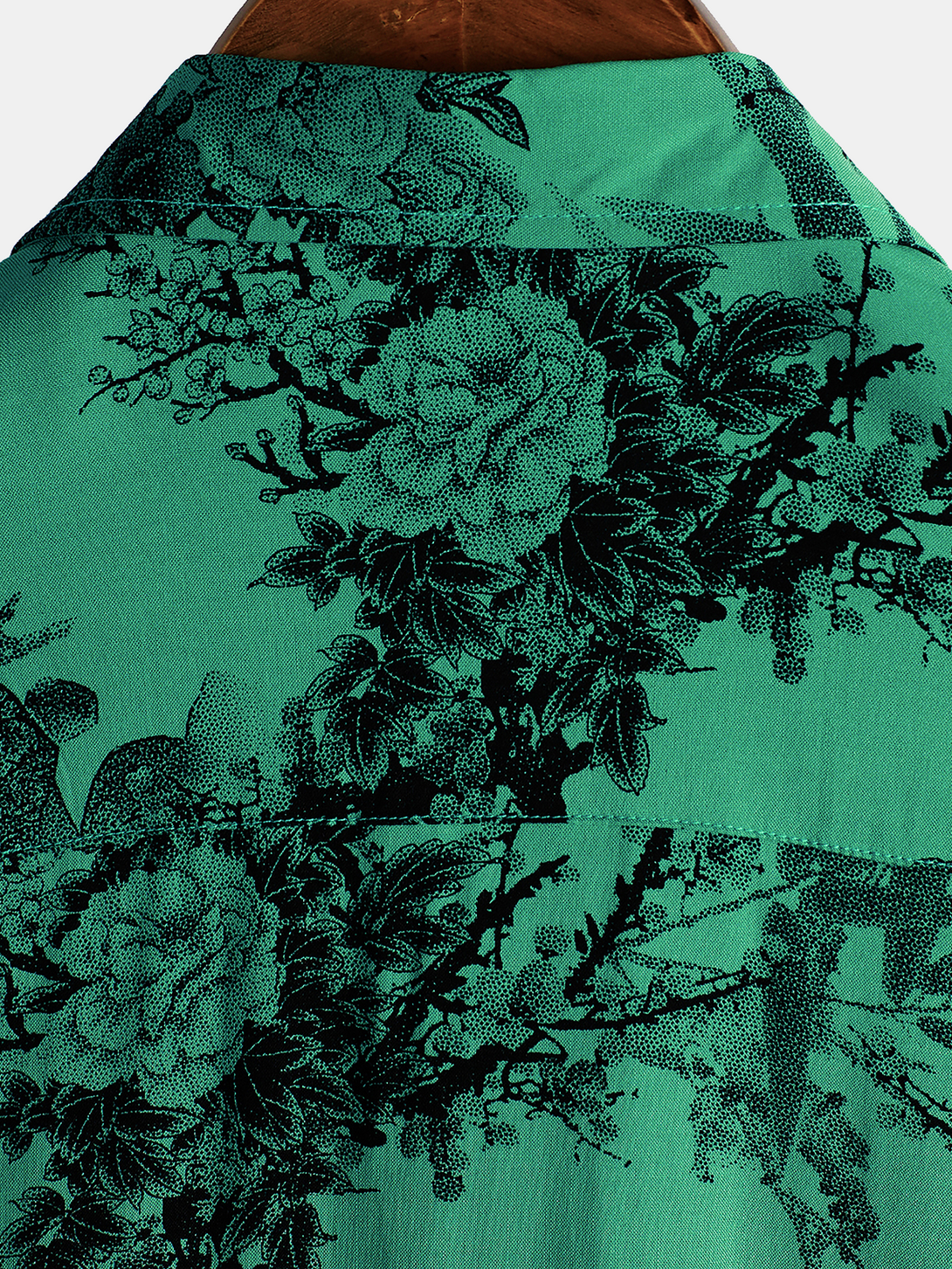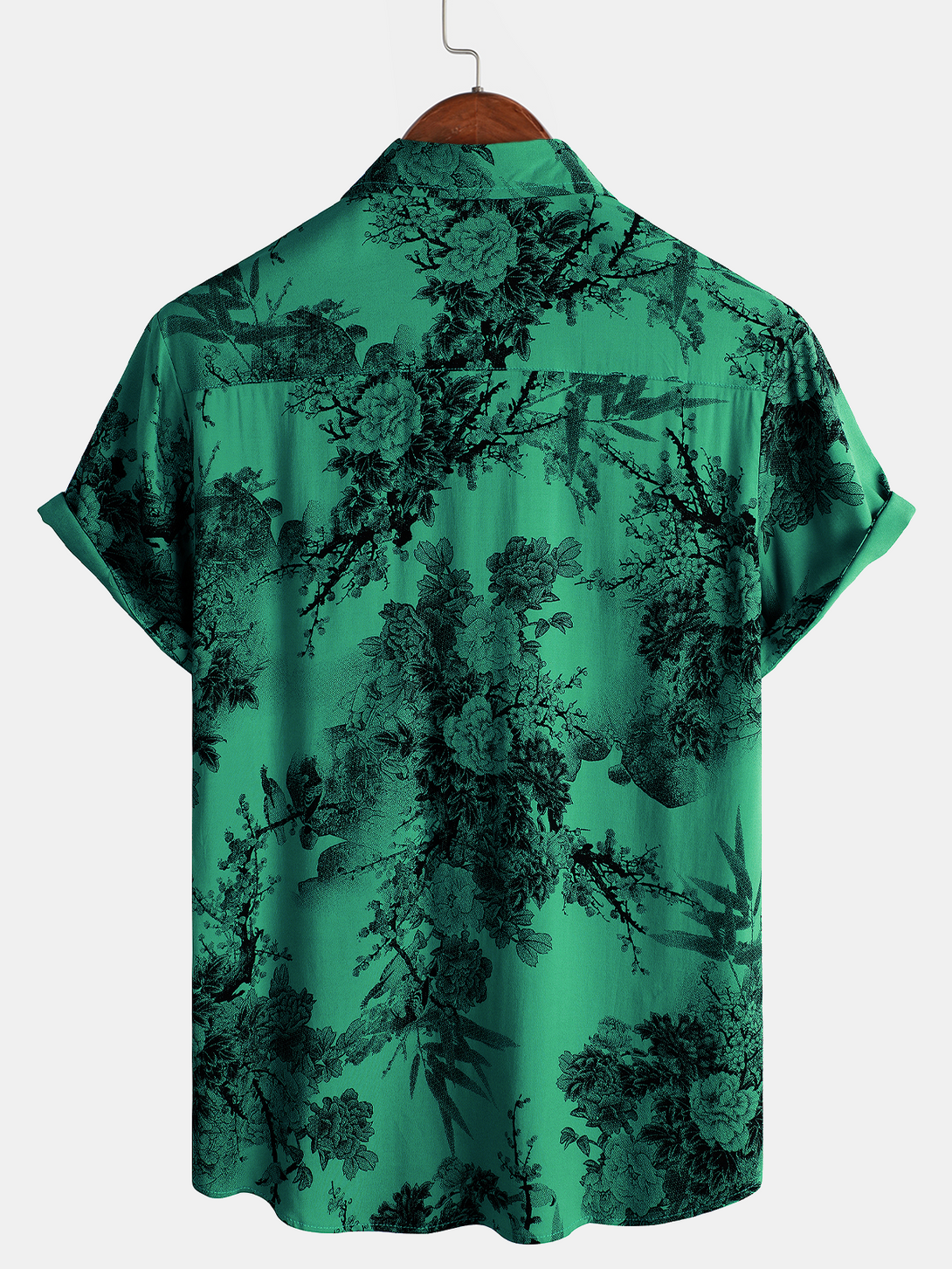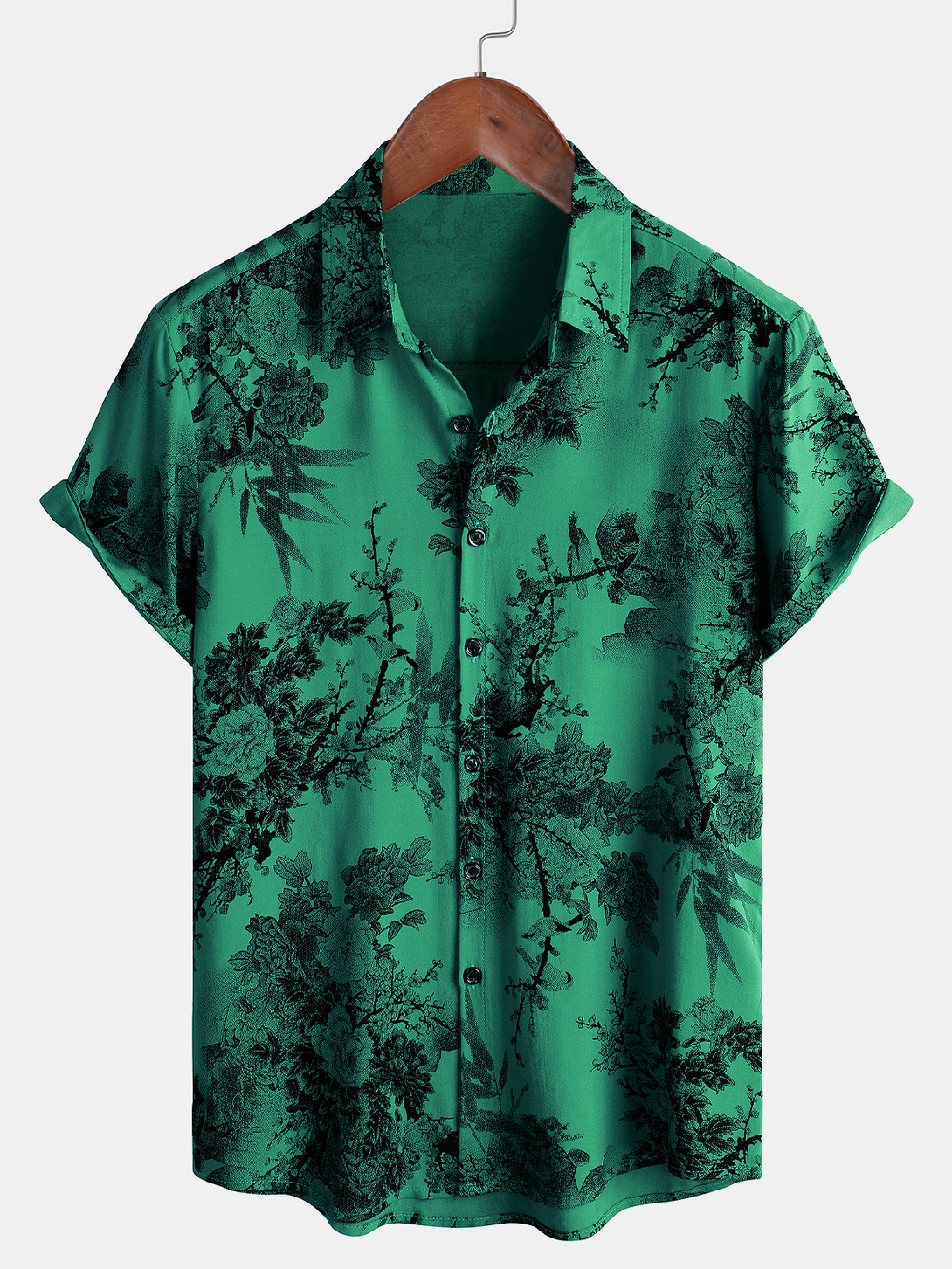 Men's Vintage Hawaiian Rayon Floral Print Holiday Short Sleeve Button Down Shirt