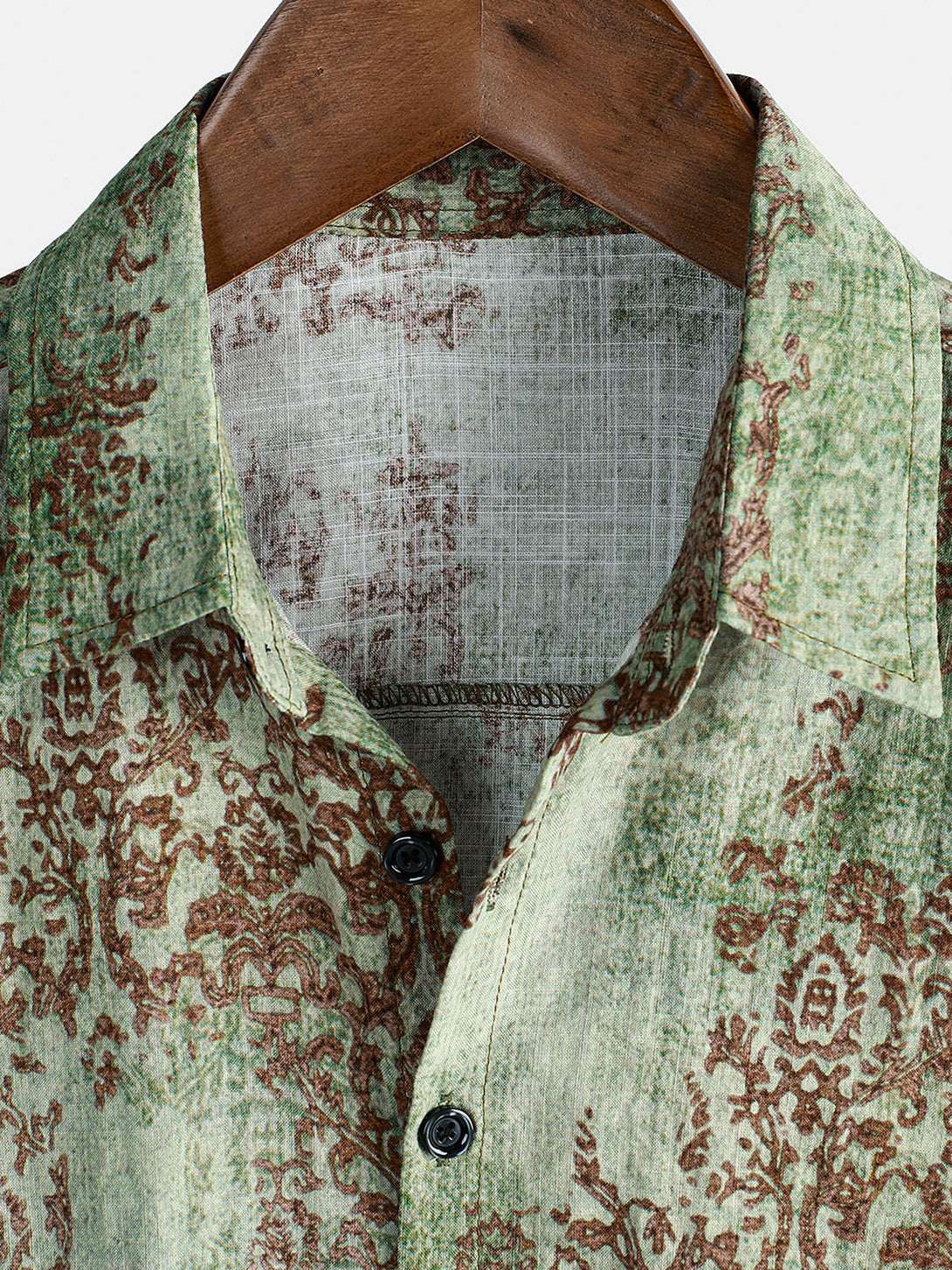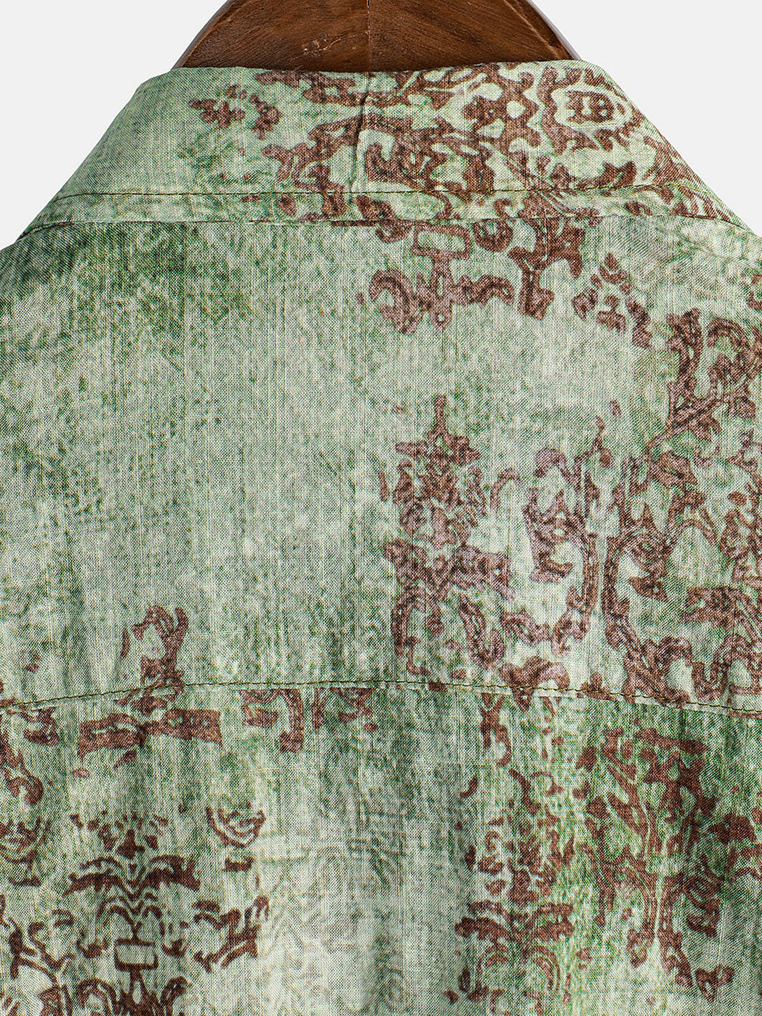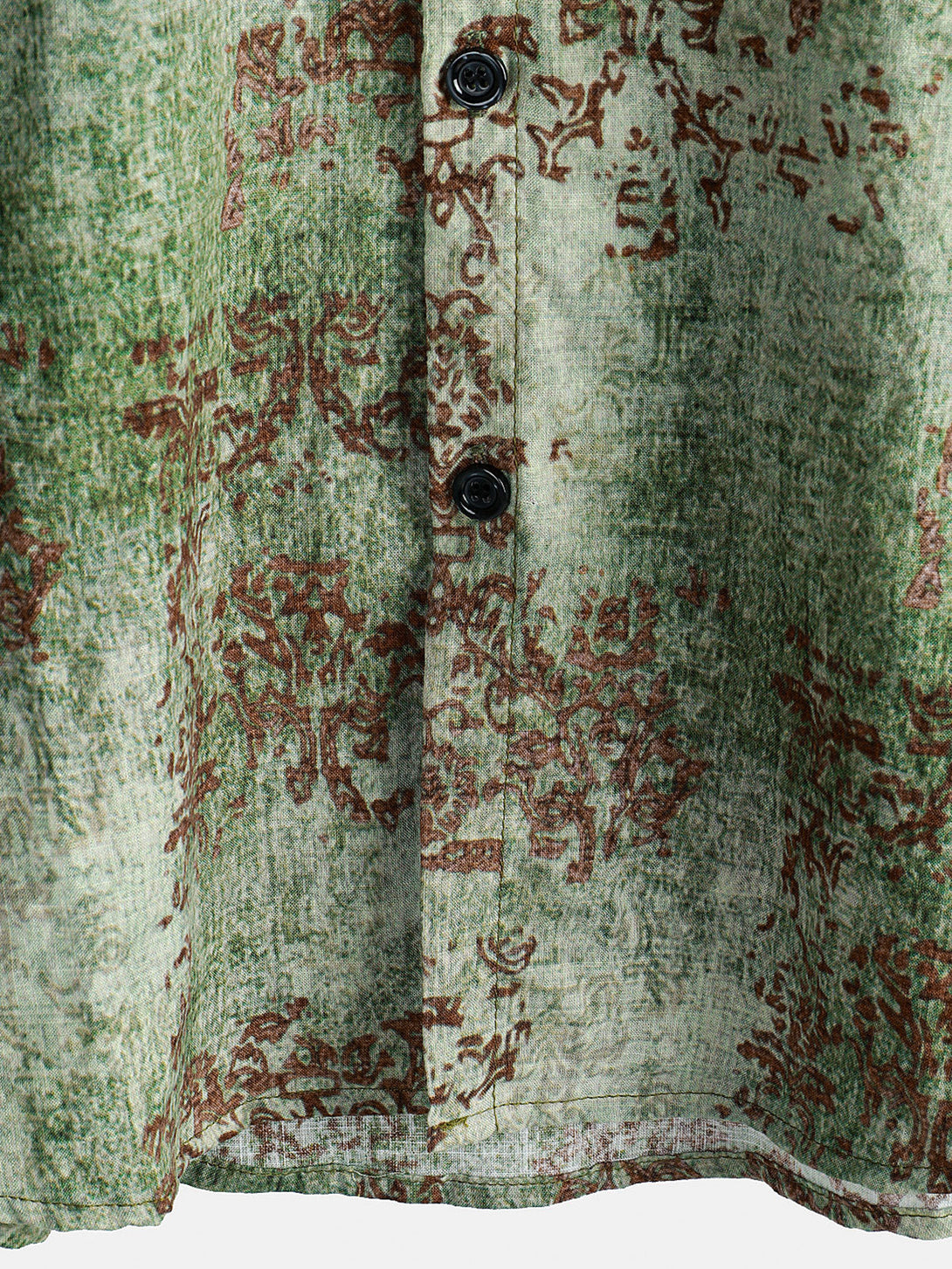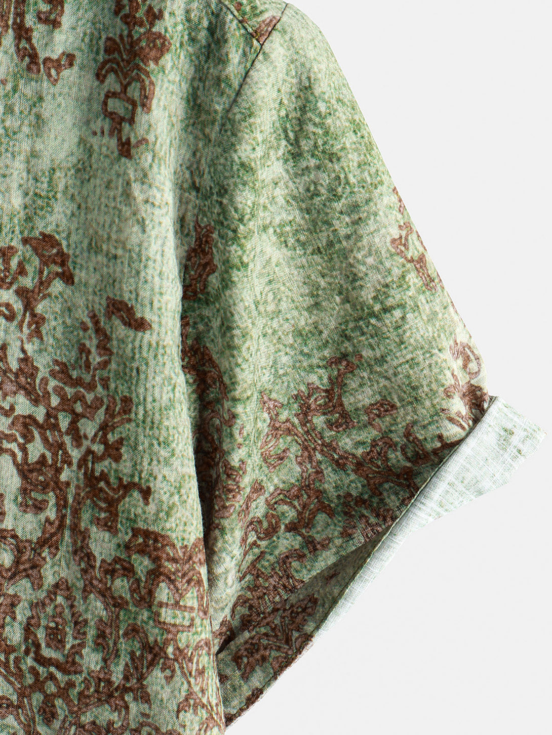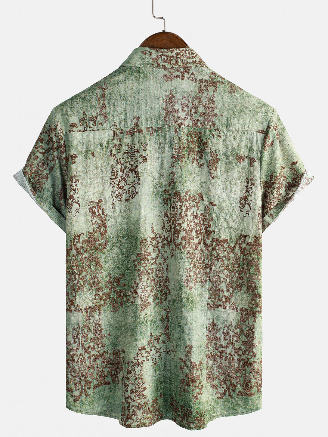 Men's Green Vintage Short-Sleeved Cotton Button-Down Summer Shirt