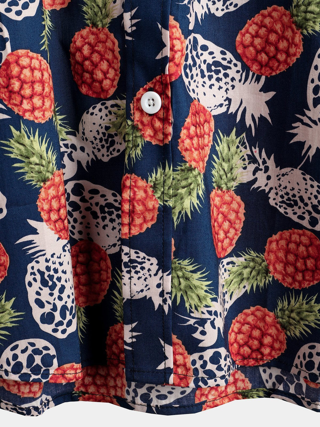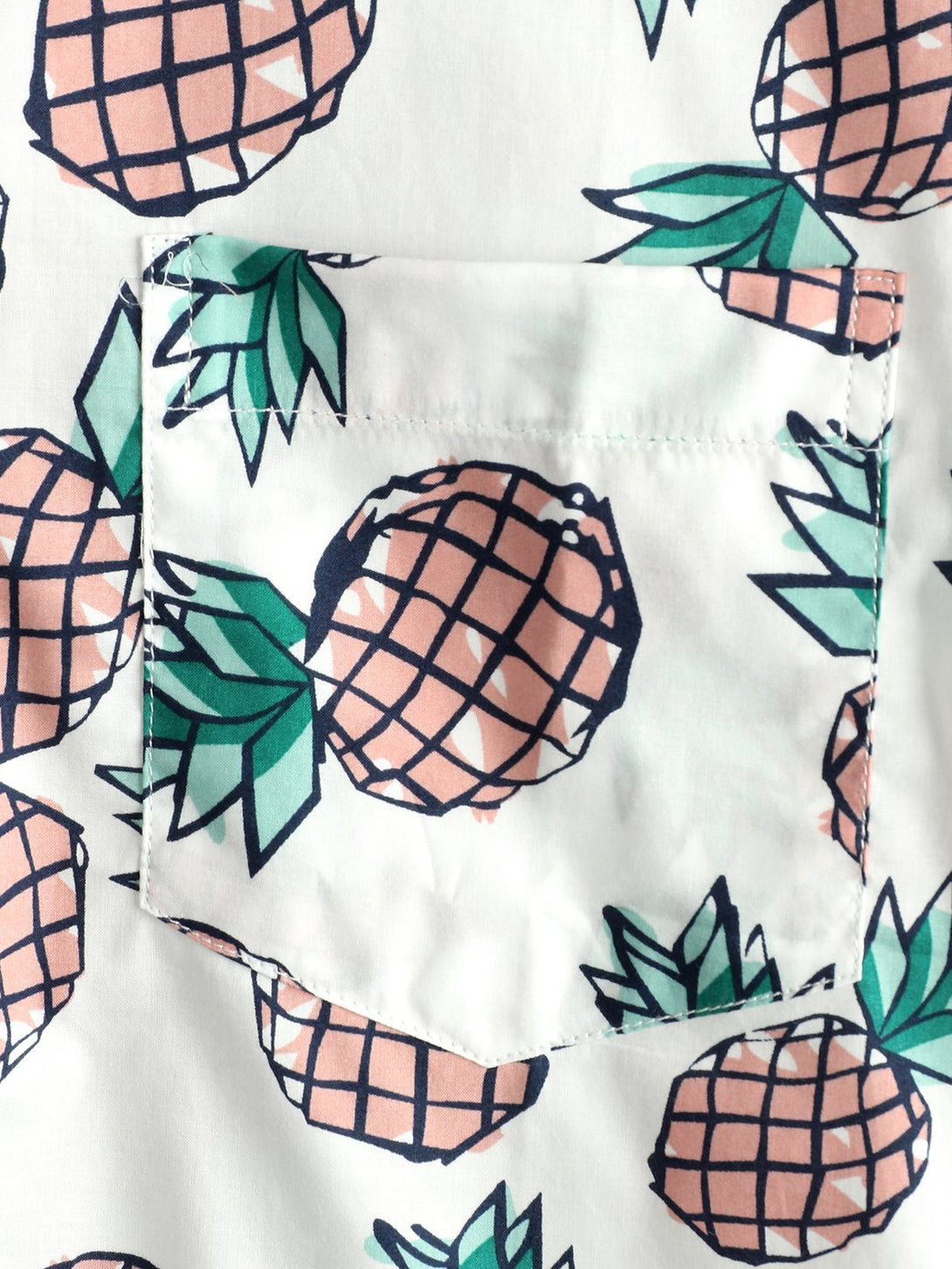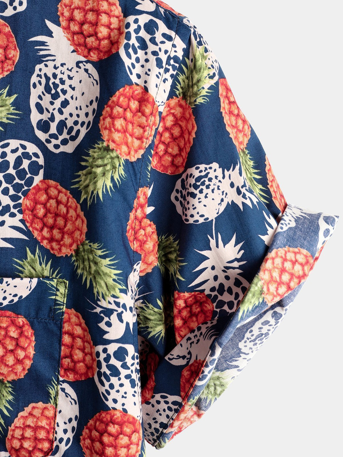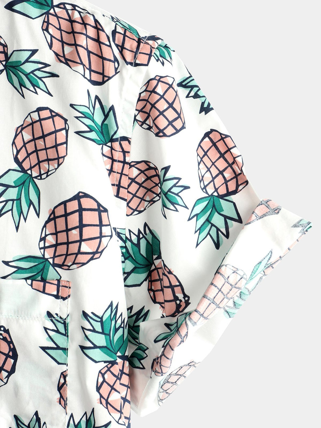 Men's Cotton Shirt With Tropical Pineapple Pockets For Vacation