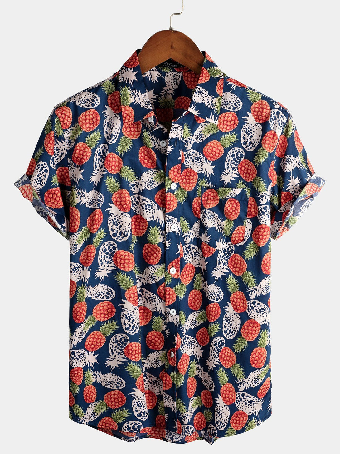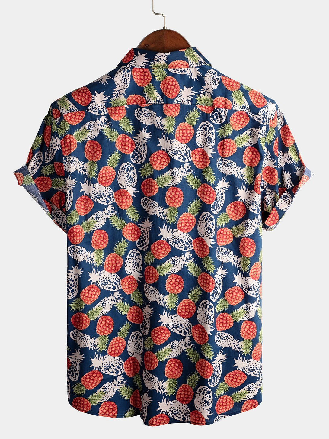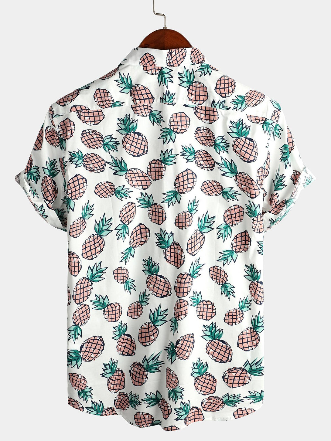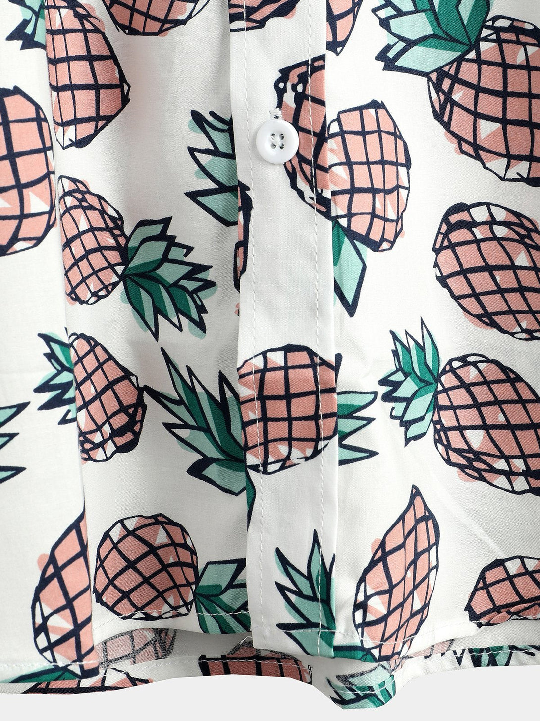 Men's Cotton Shirt With Tropical Pineapple Pockets For Vacation