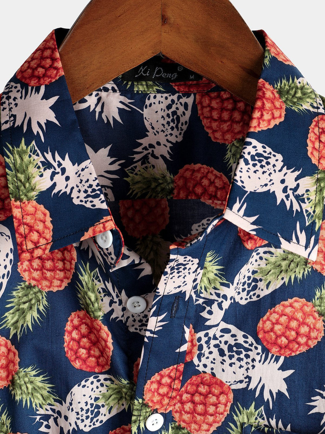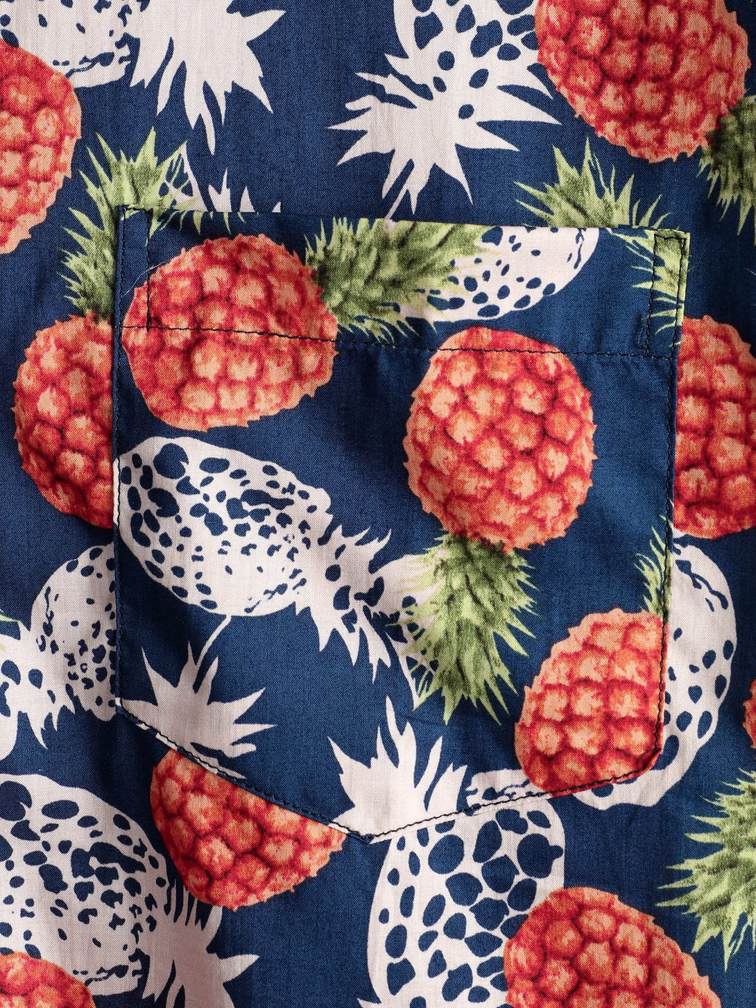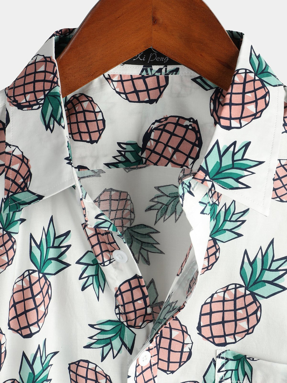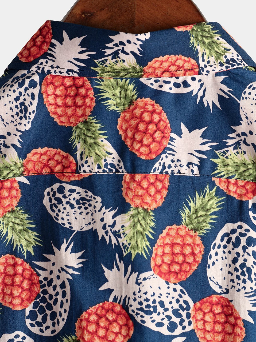 Men's Cotton Shirt With Tropical Pineapple Pockets For Vacation