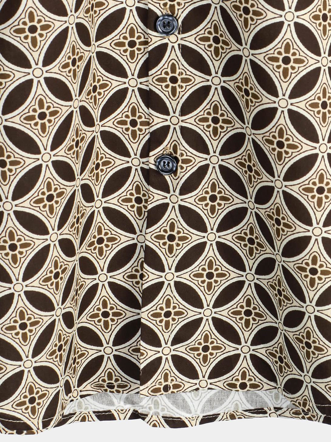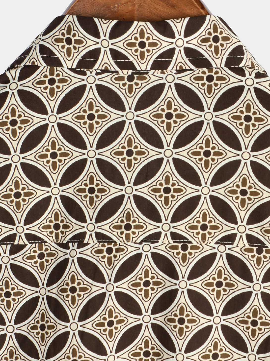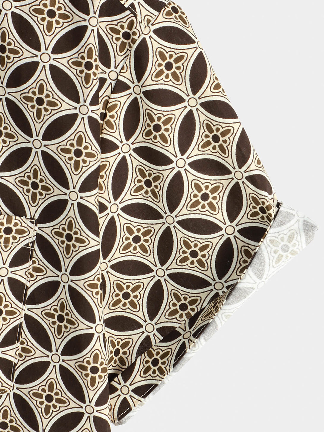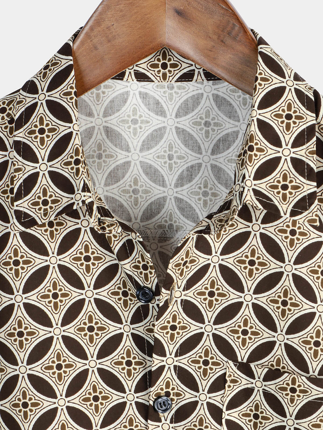 Khaki Short-Sleeved Men's Shirt With Geometric Floral Pattern And Pockets