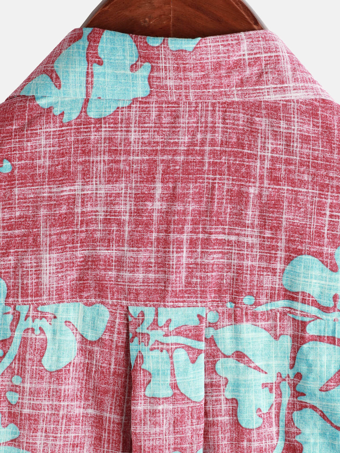 Men's Vintage Floral Hawaiian Shirt Short Sleeve Button Down Beach Tropical Red
