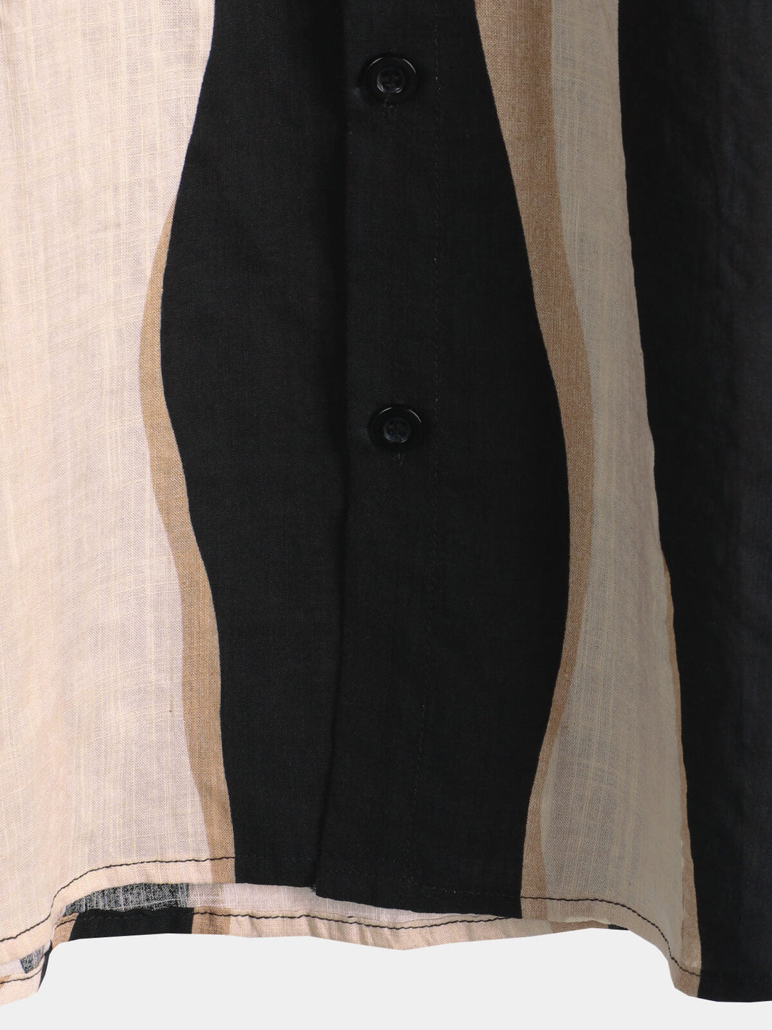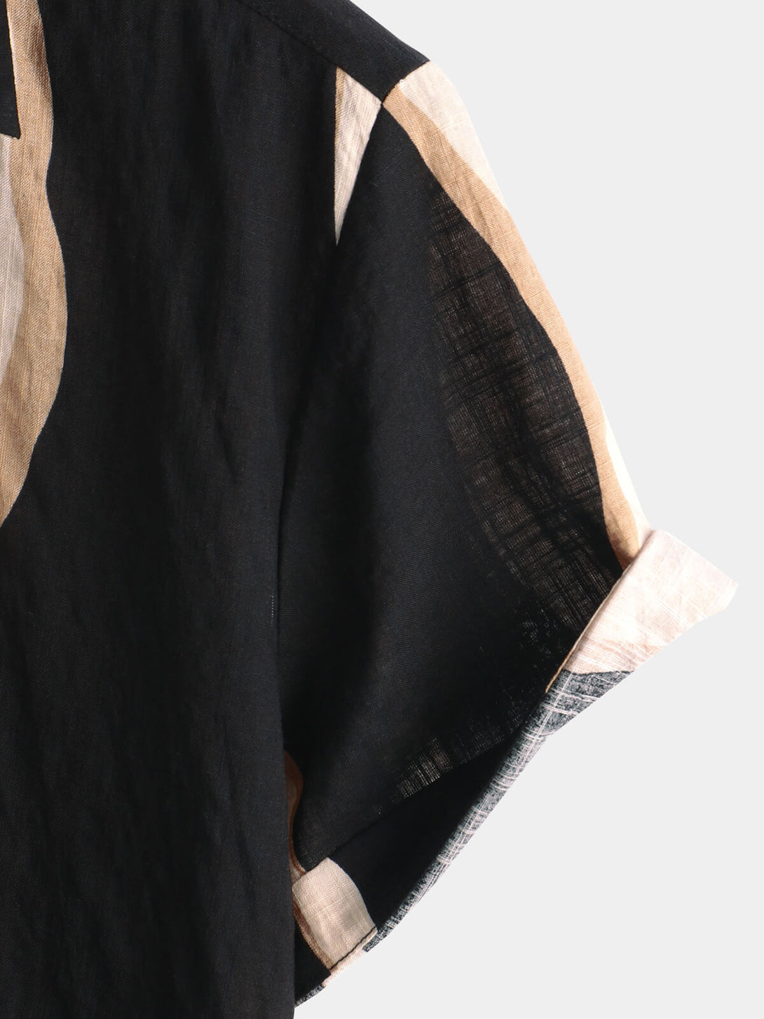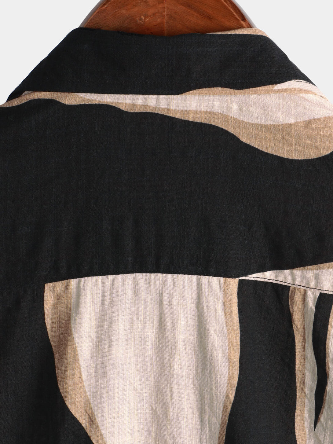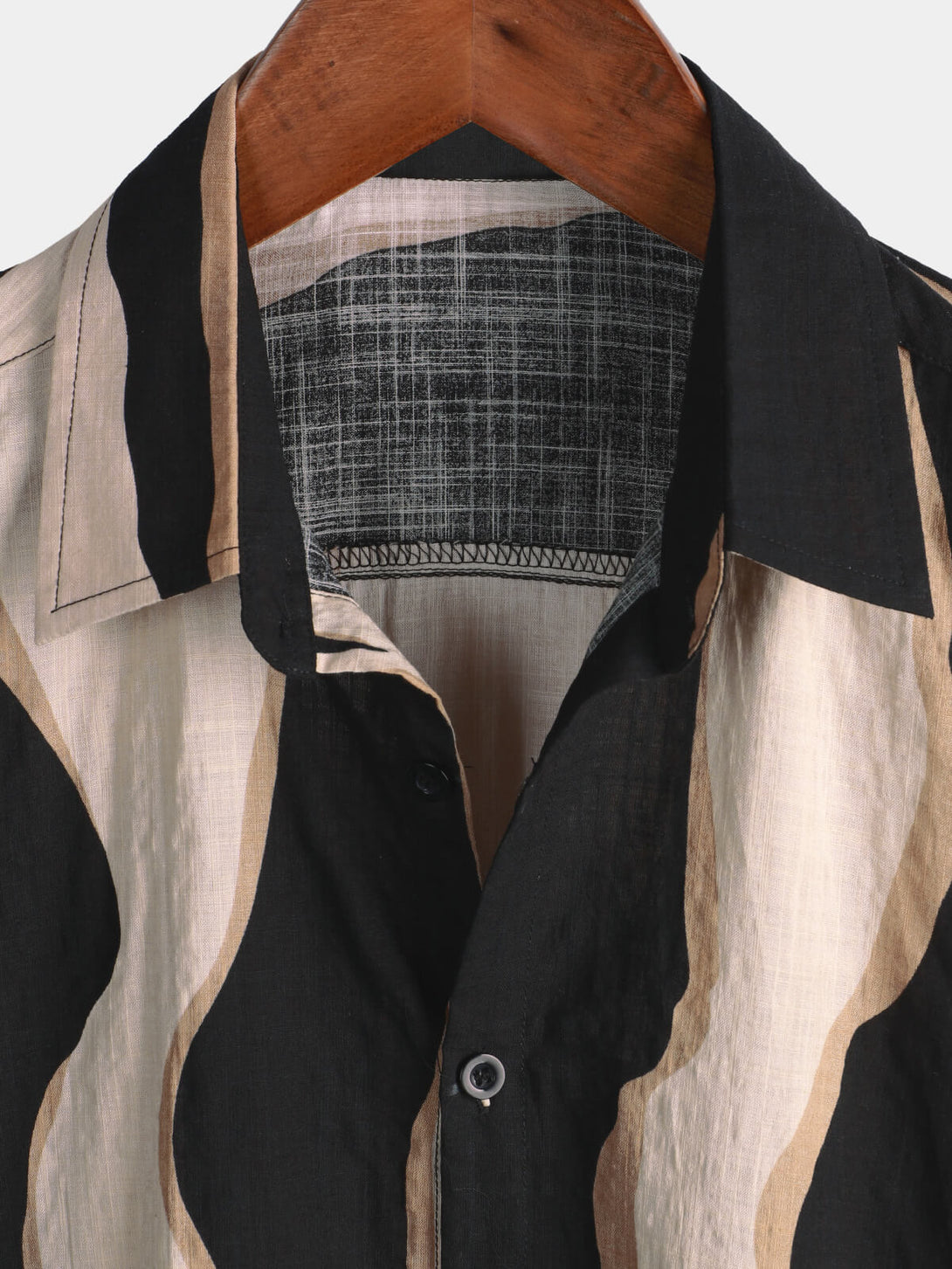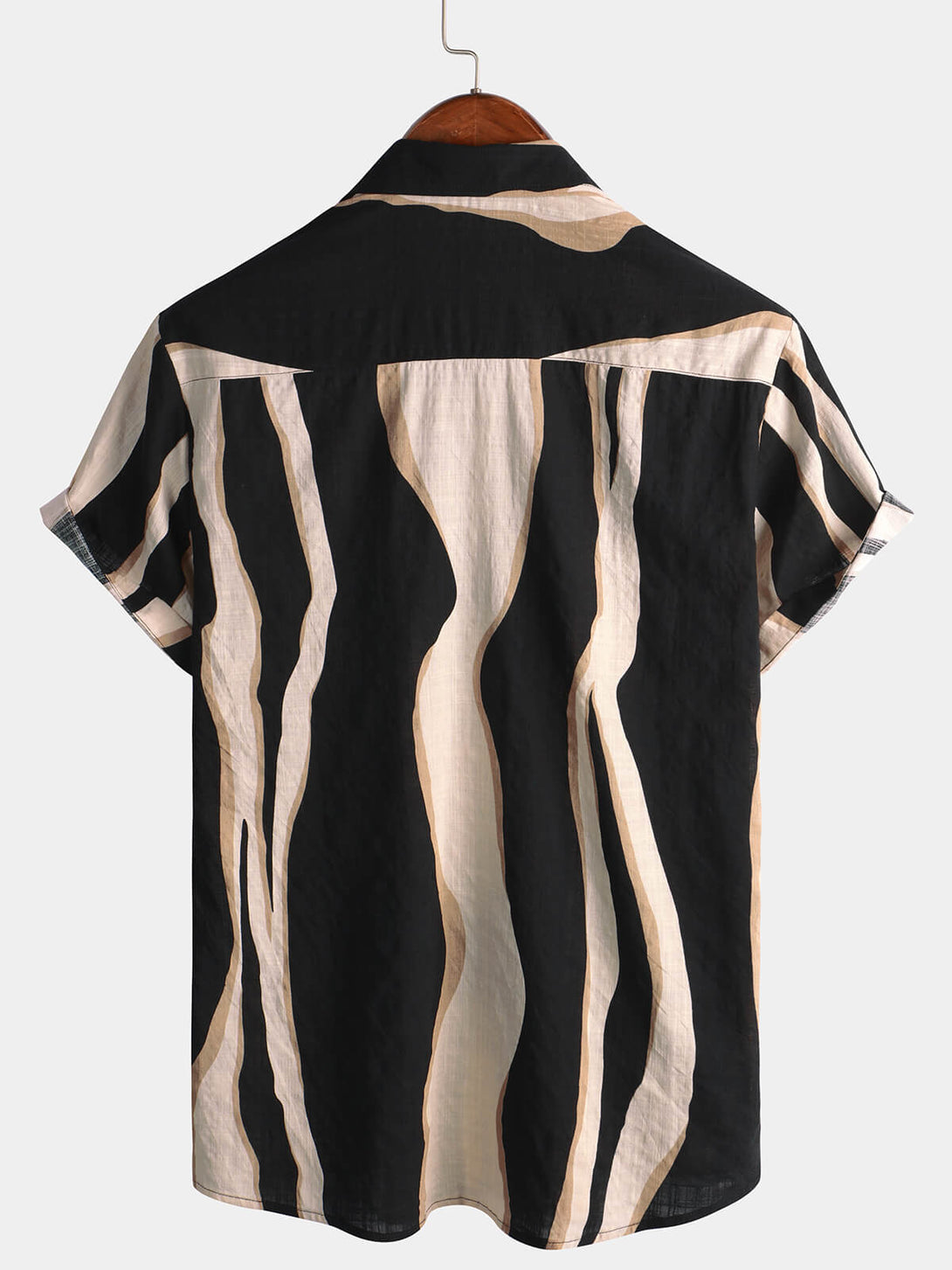 Men's Retro Style Casual Striped Summer Holiday Black Button-Up Short-Sleeved Shirt