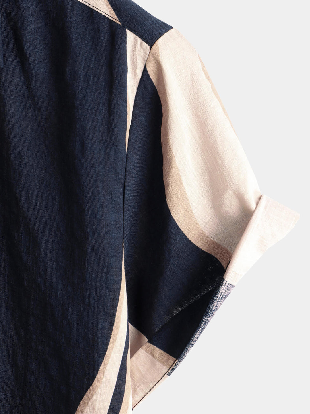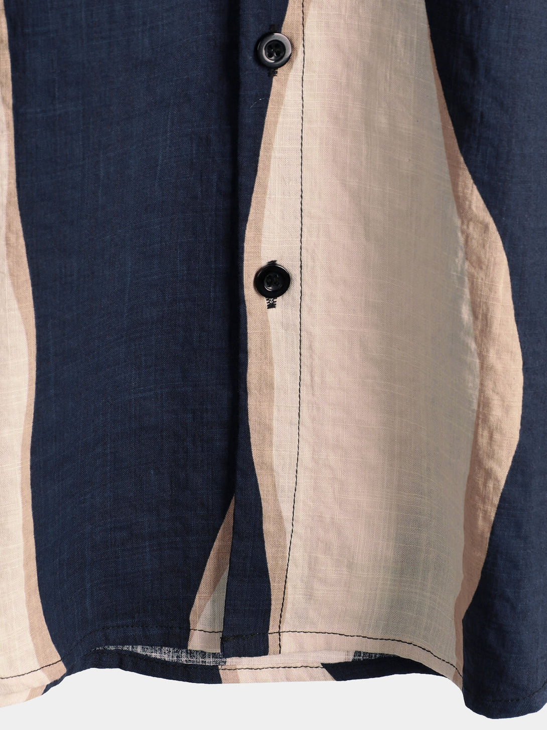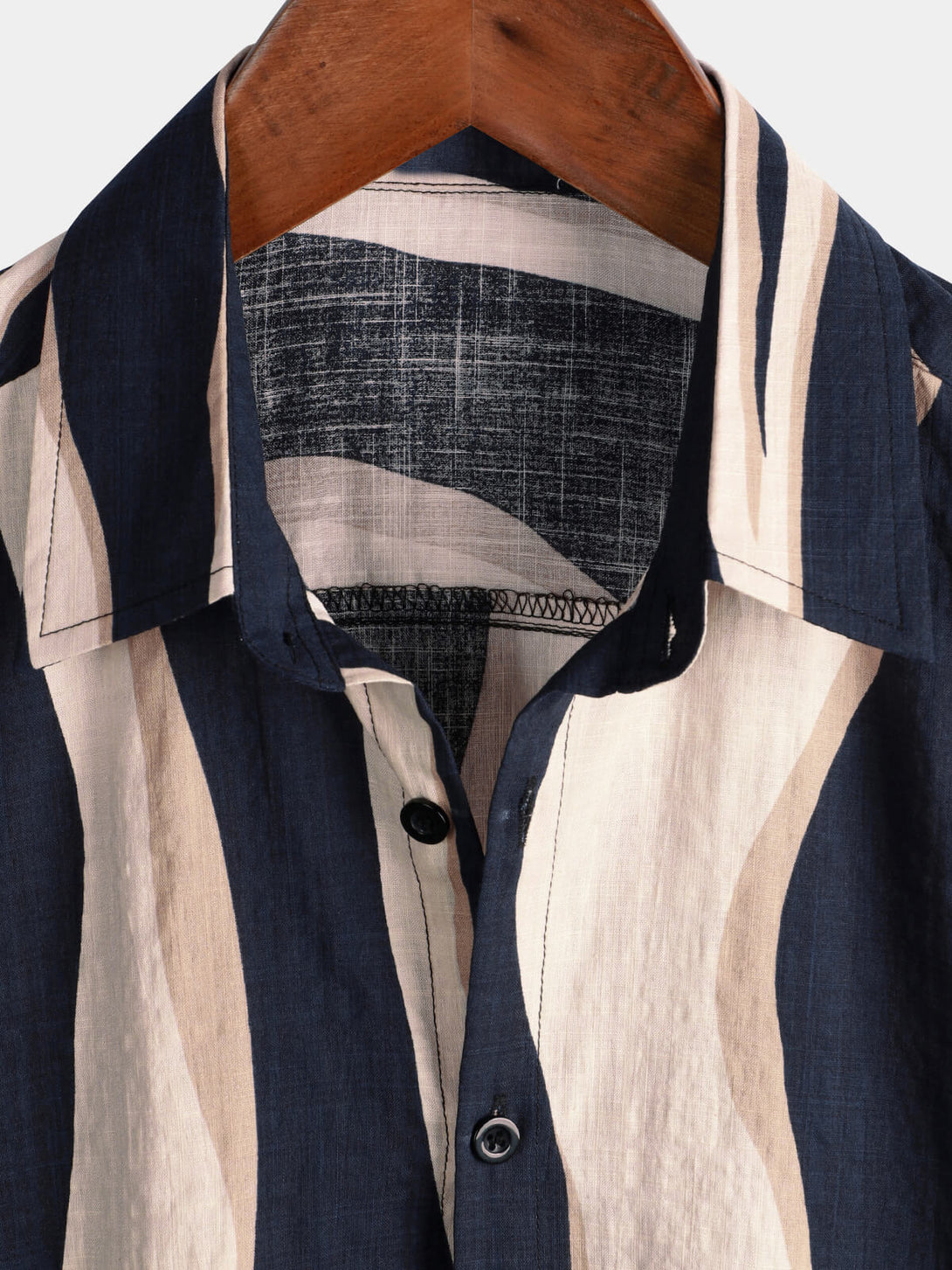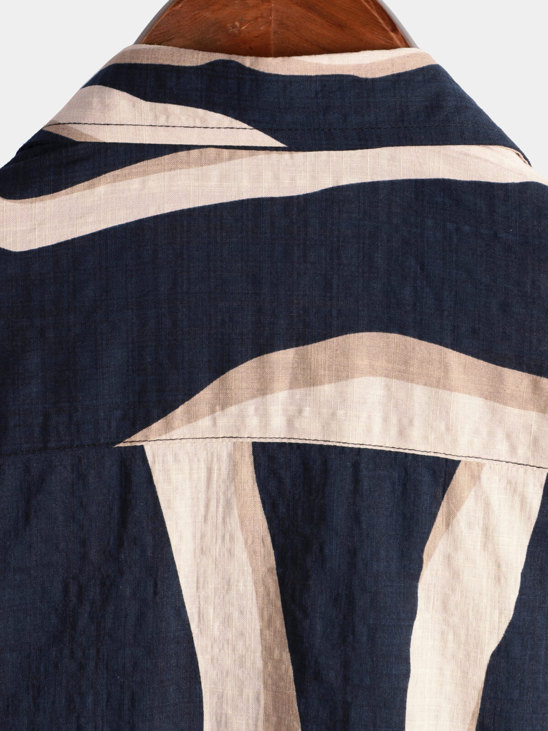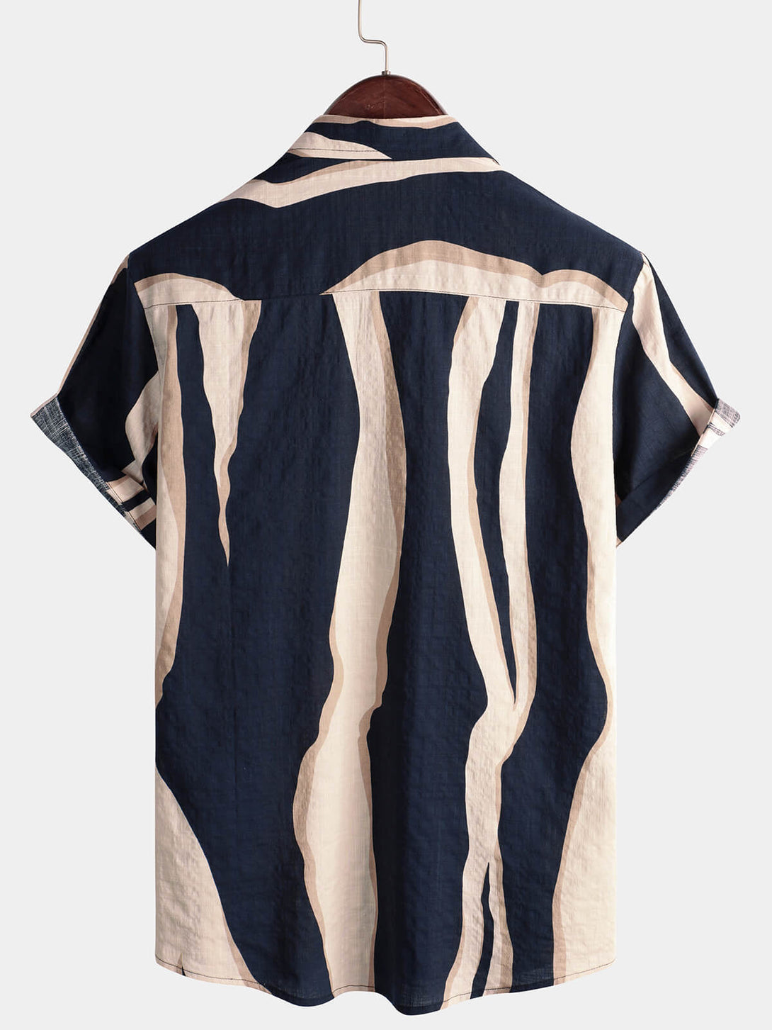 Men's Retro Casual Striped Summer Holiday Navy Blue Short Sleeve Button Down Shirt