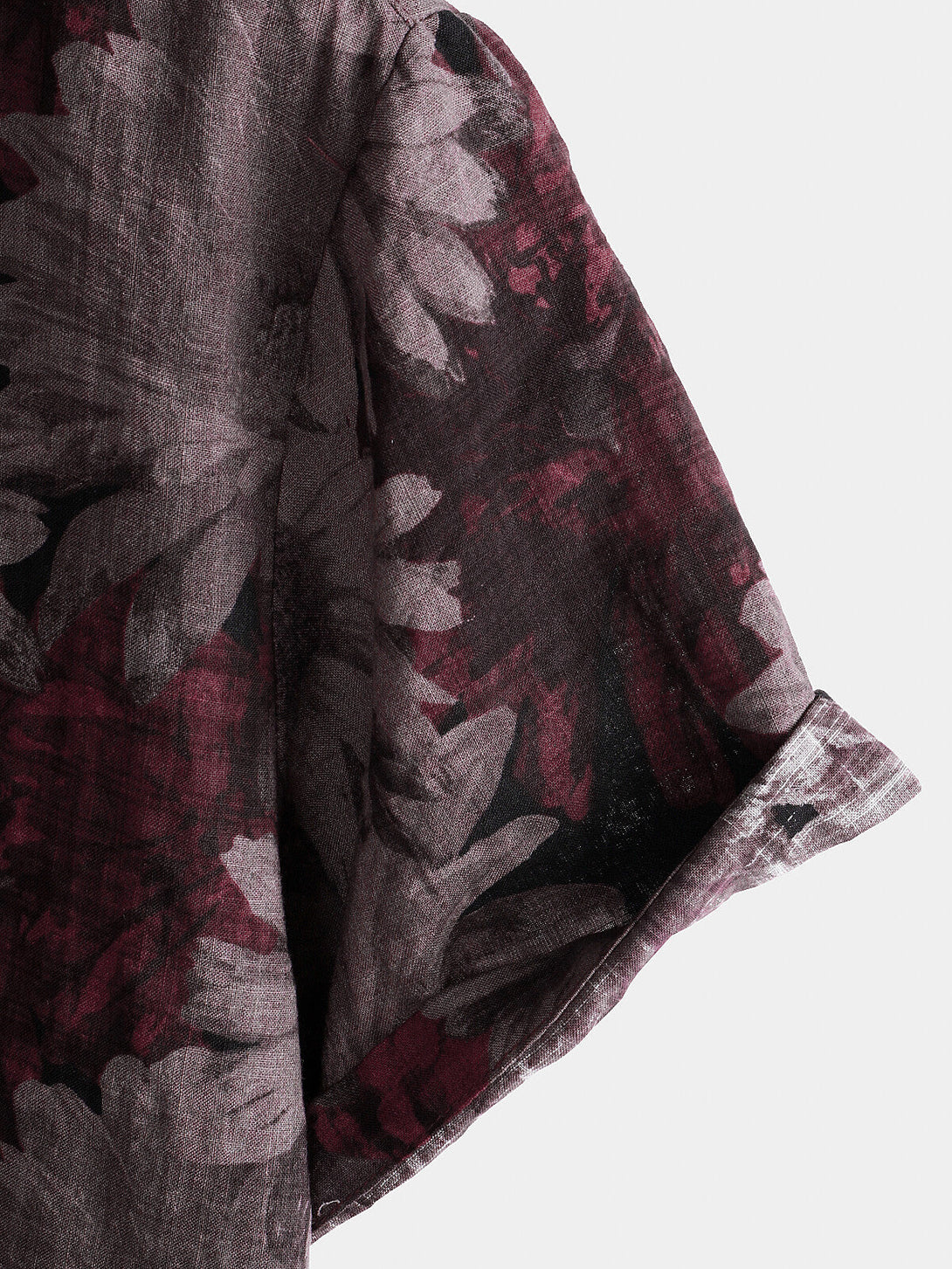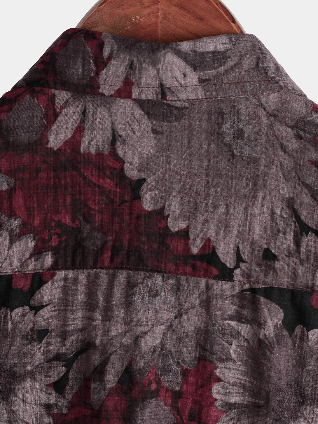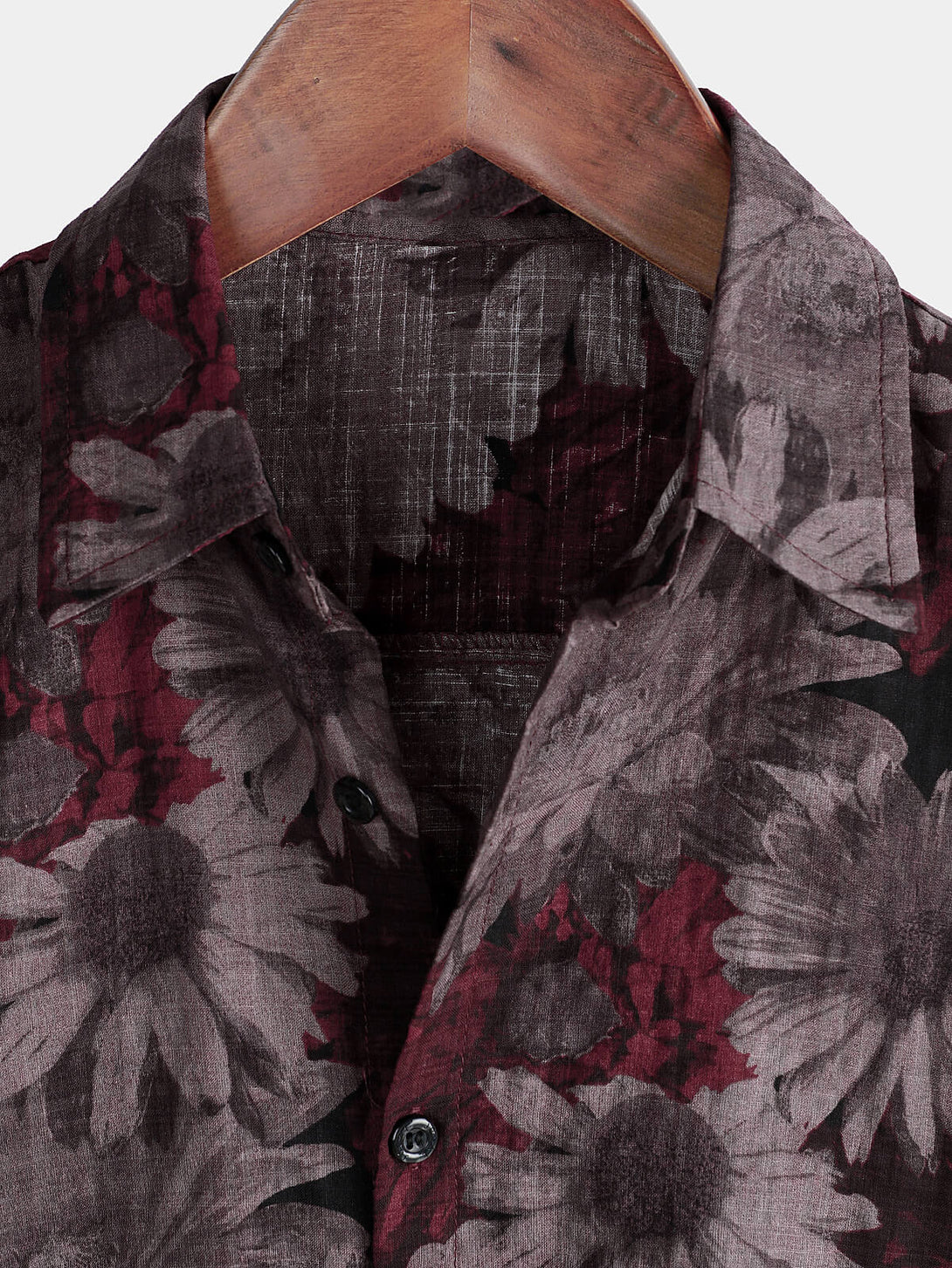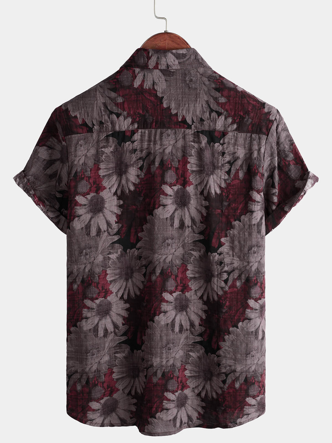 Men's Retro Style Short Sleeve Shirt With Floral And Daisy Pattern In Vintage 70S Style
