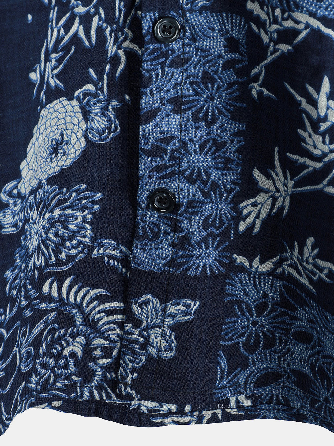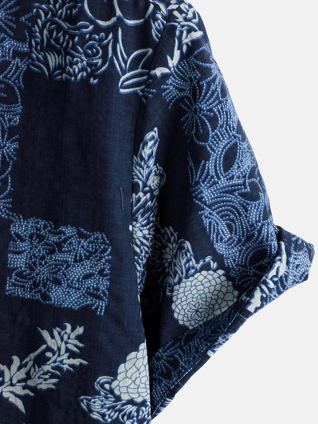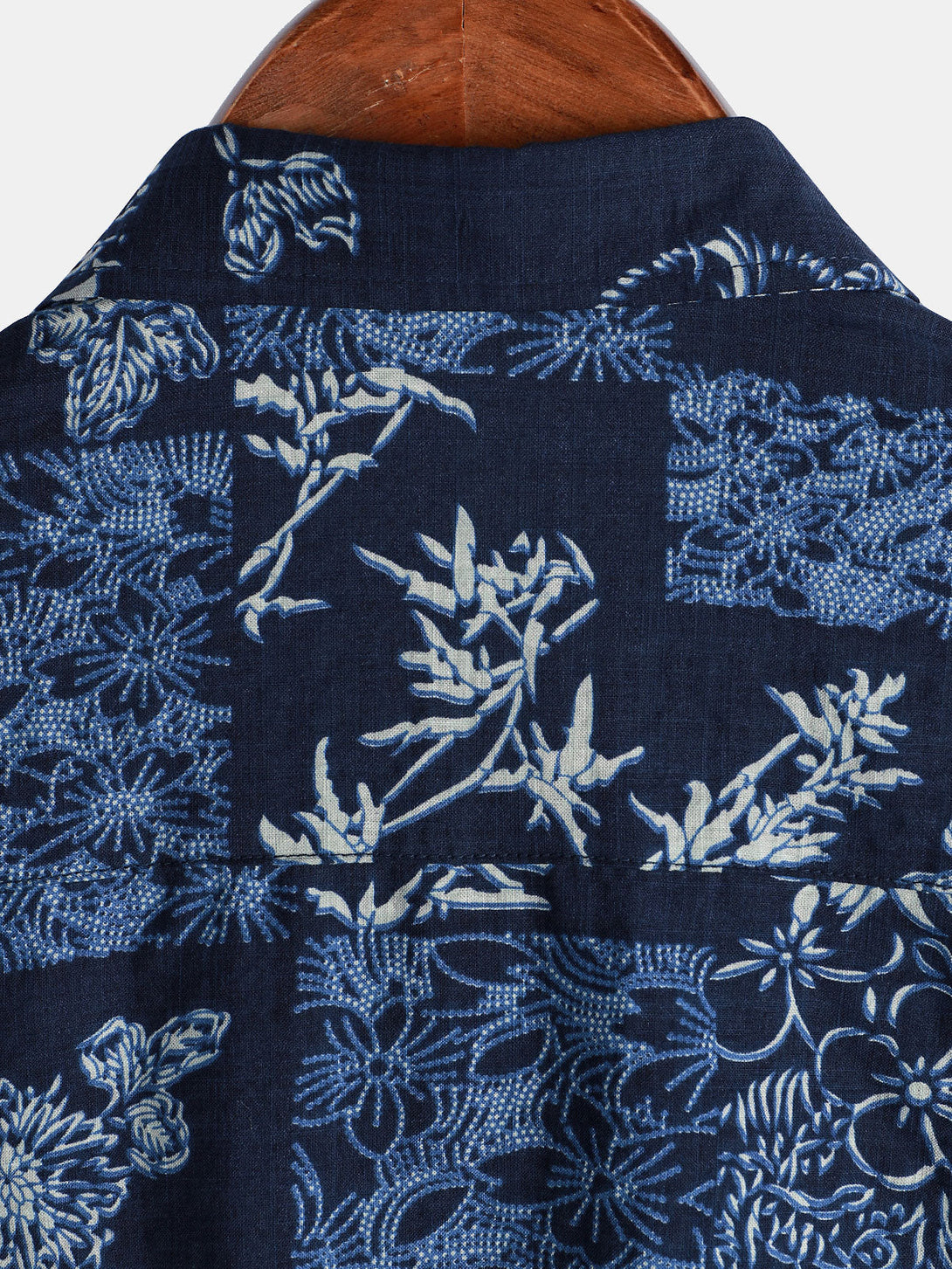 Men's Summer Short-Sleeved Shirt In Retro Style With Floral Pattern In Navy Blue