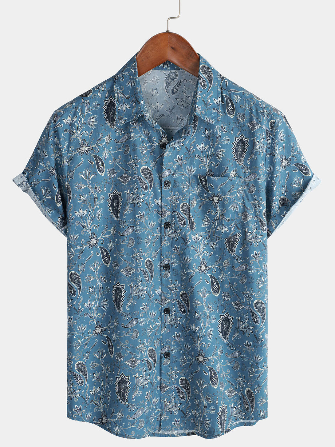 Men's Short-Sleeved Button-Down Hawaiian Shirt For Vacation And Summer, Paisley Floral Pattern