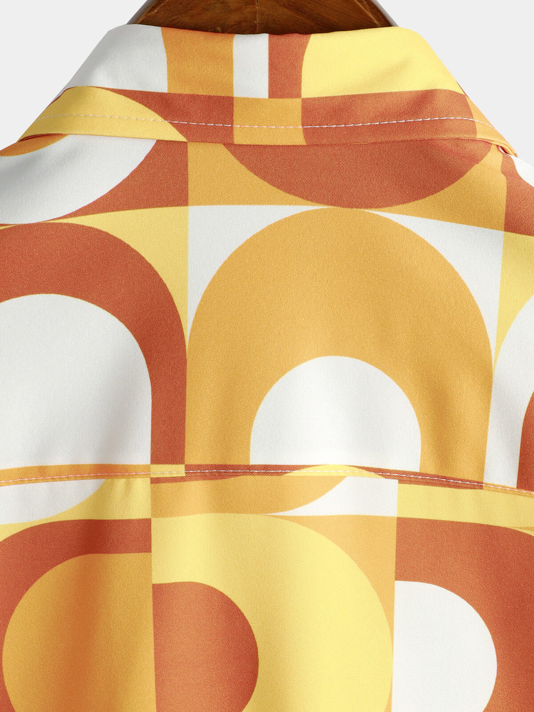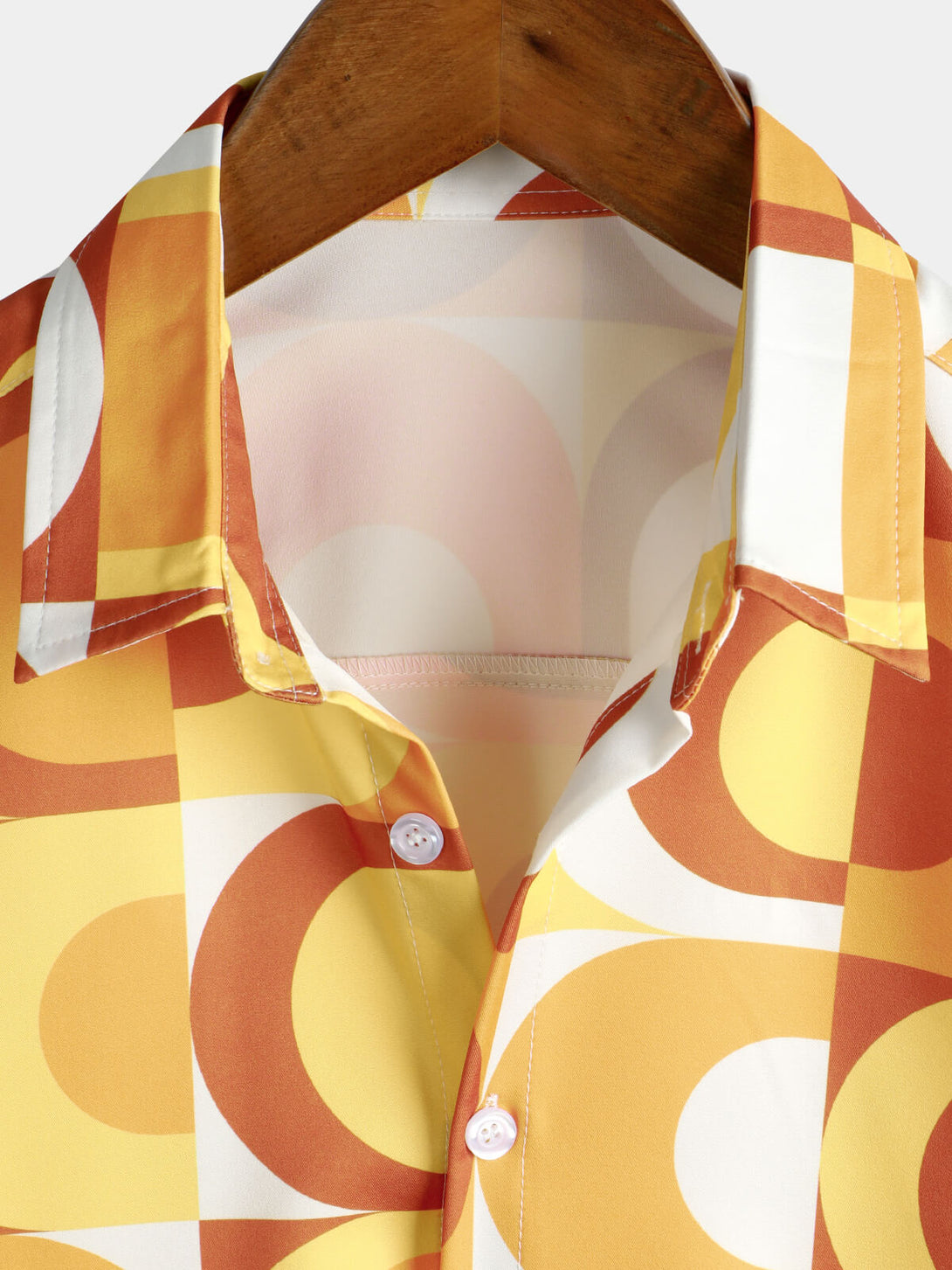 Men's Summer Retro Button Up Vintage Orange 70S Geometric Summer Beach Cool Short Sleeve Shirt