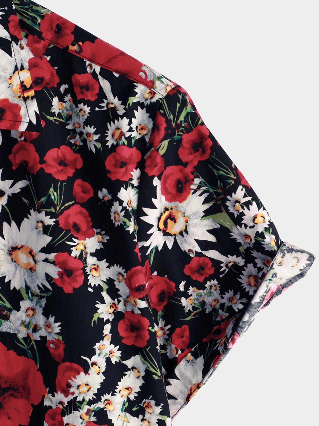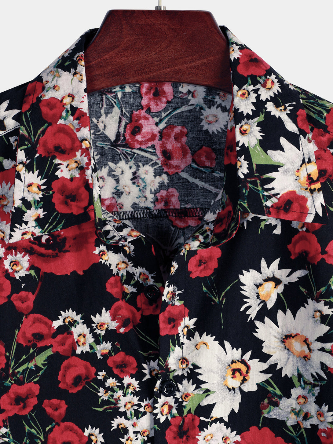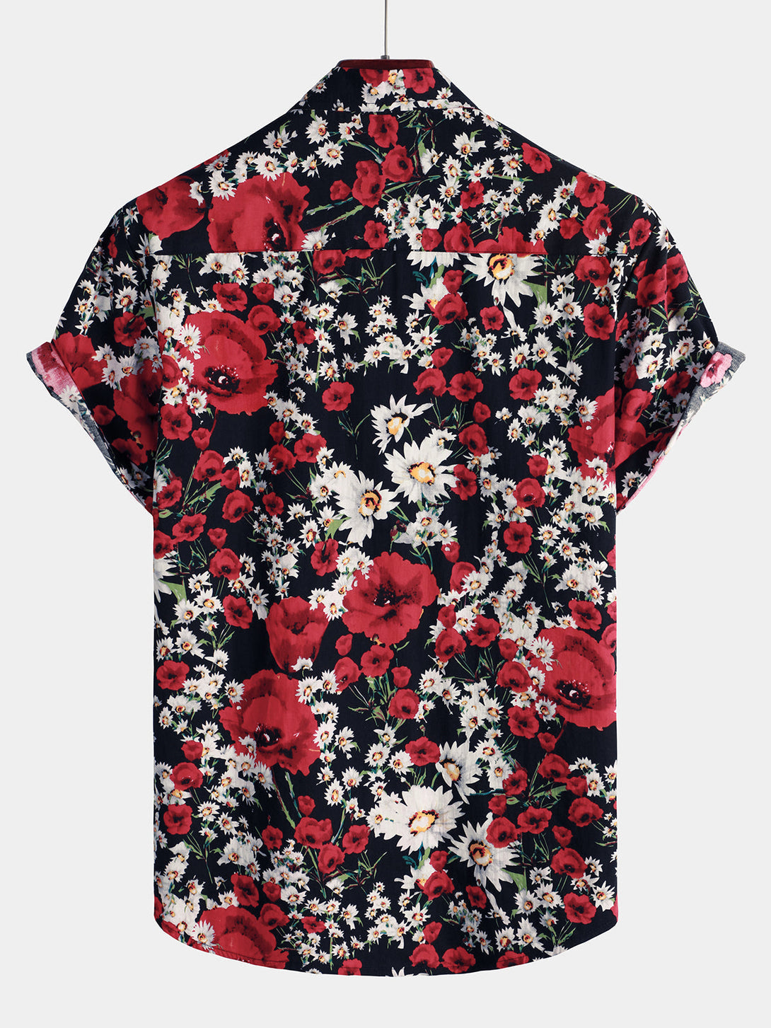 Men's Summer Rose And Daisy Floral Print Shirt, Casual Floral Short Sleeve Shirt