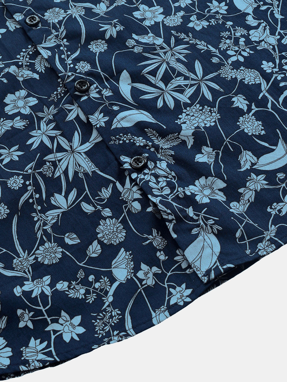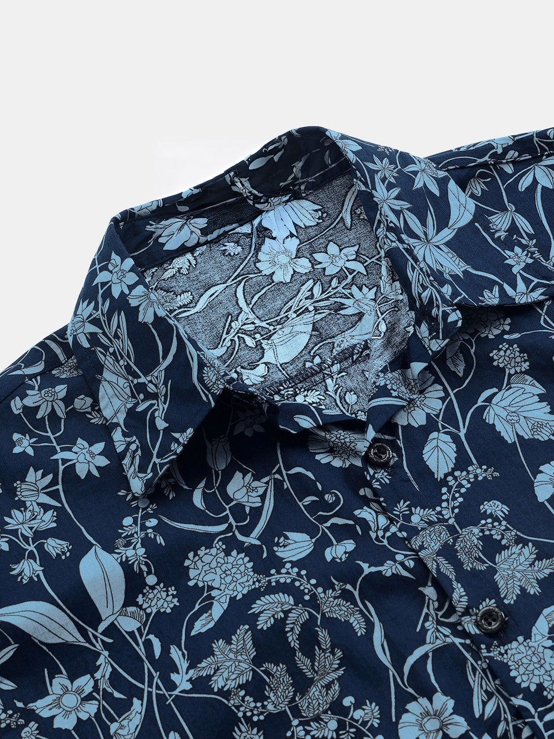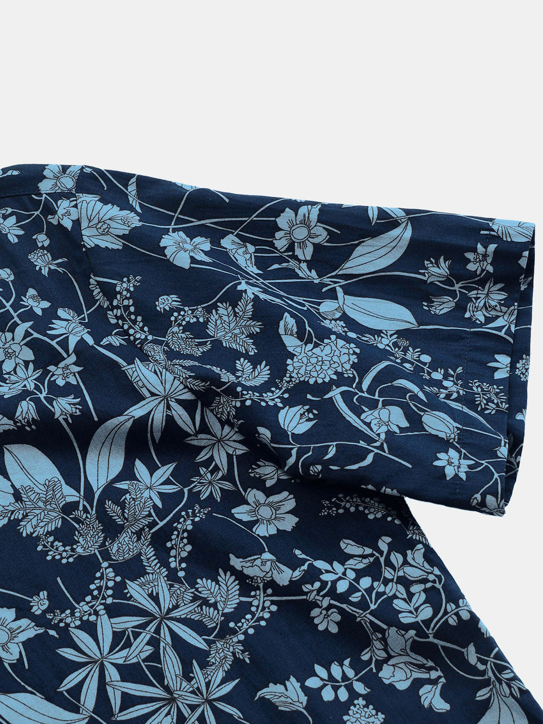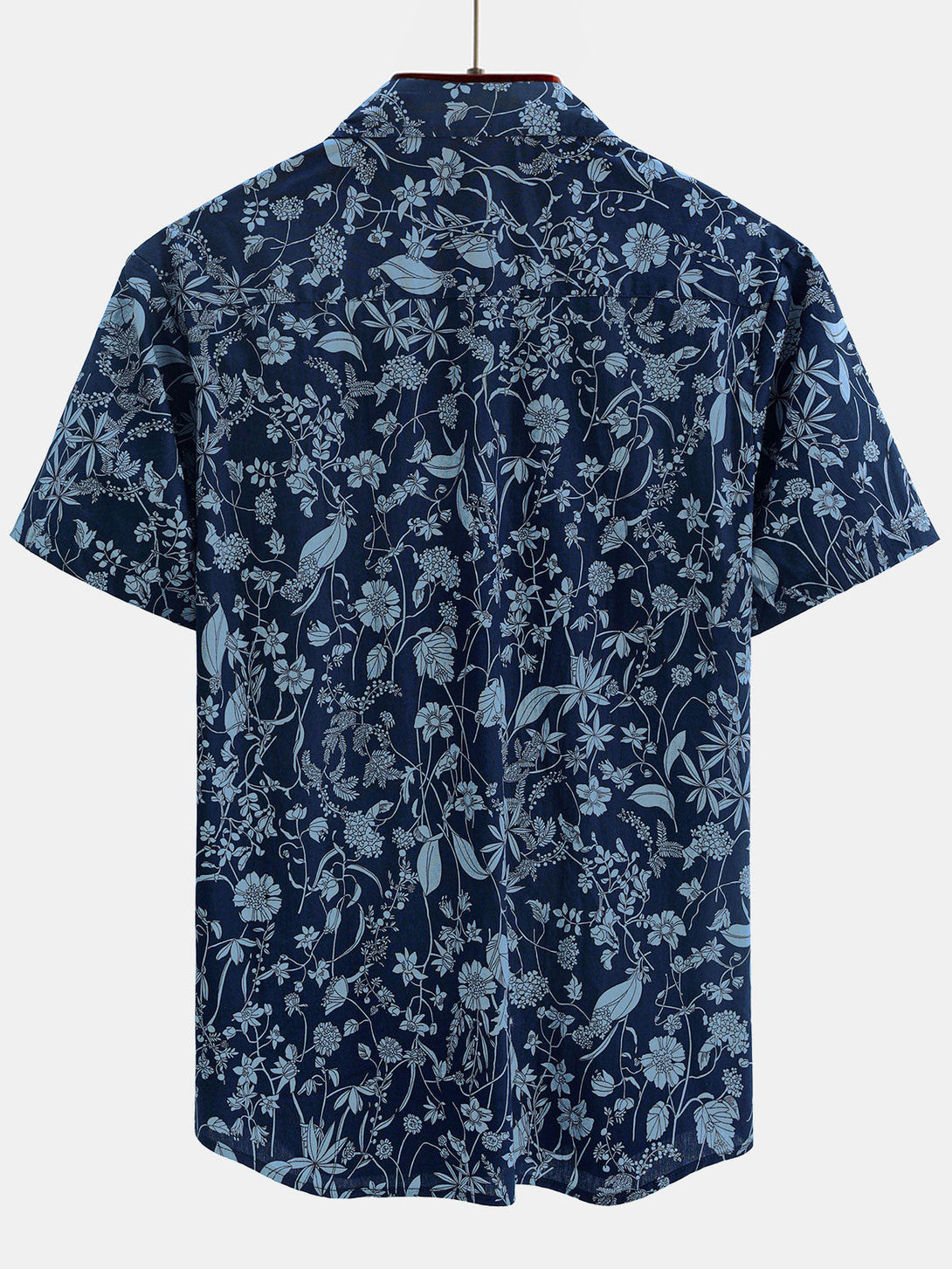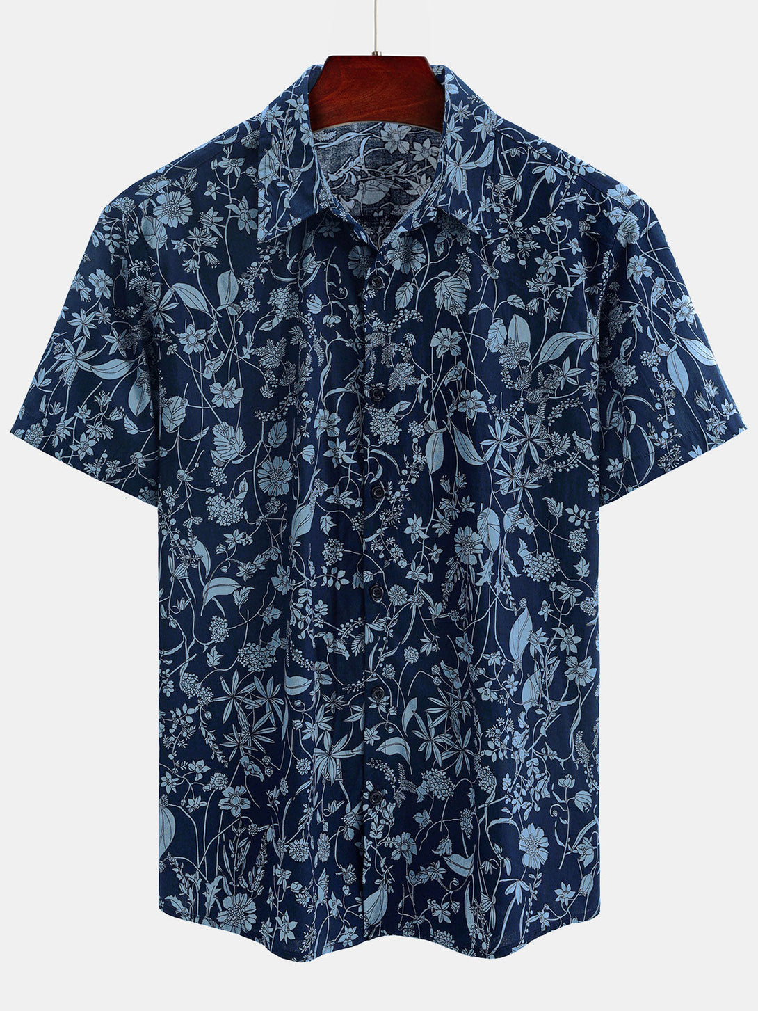 Men's Summer Short-Sleeved Cotton Shirt With Tropical Print, Casual, For Vacation