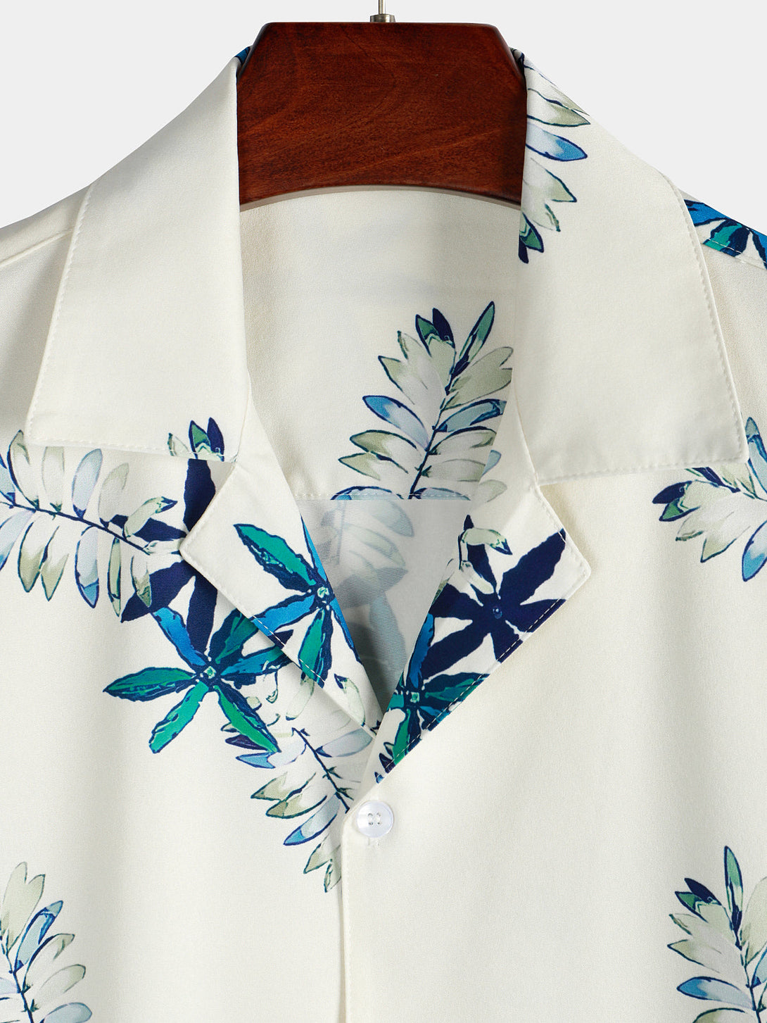 • Button-front shirt with a wide collar and short sleeves.