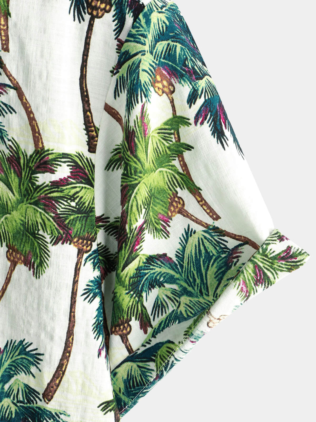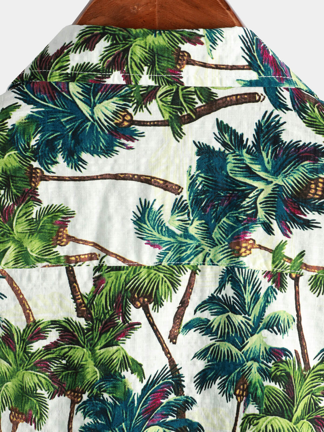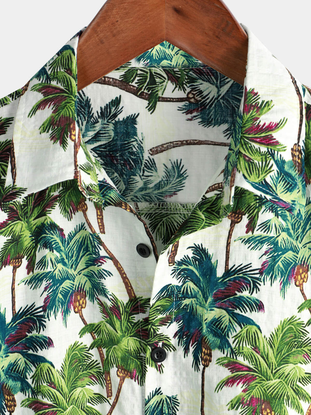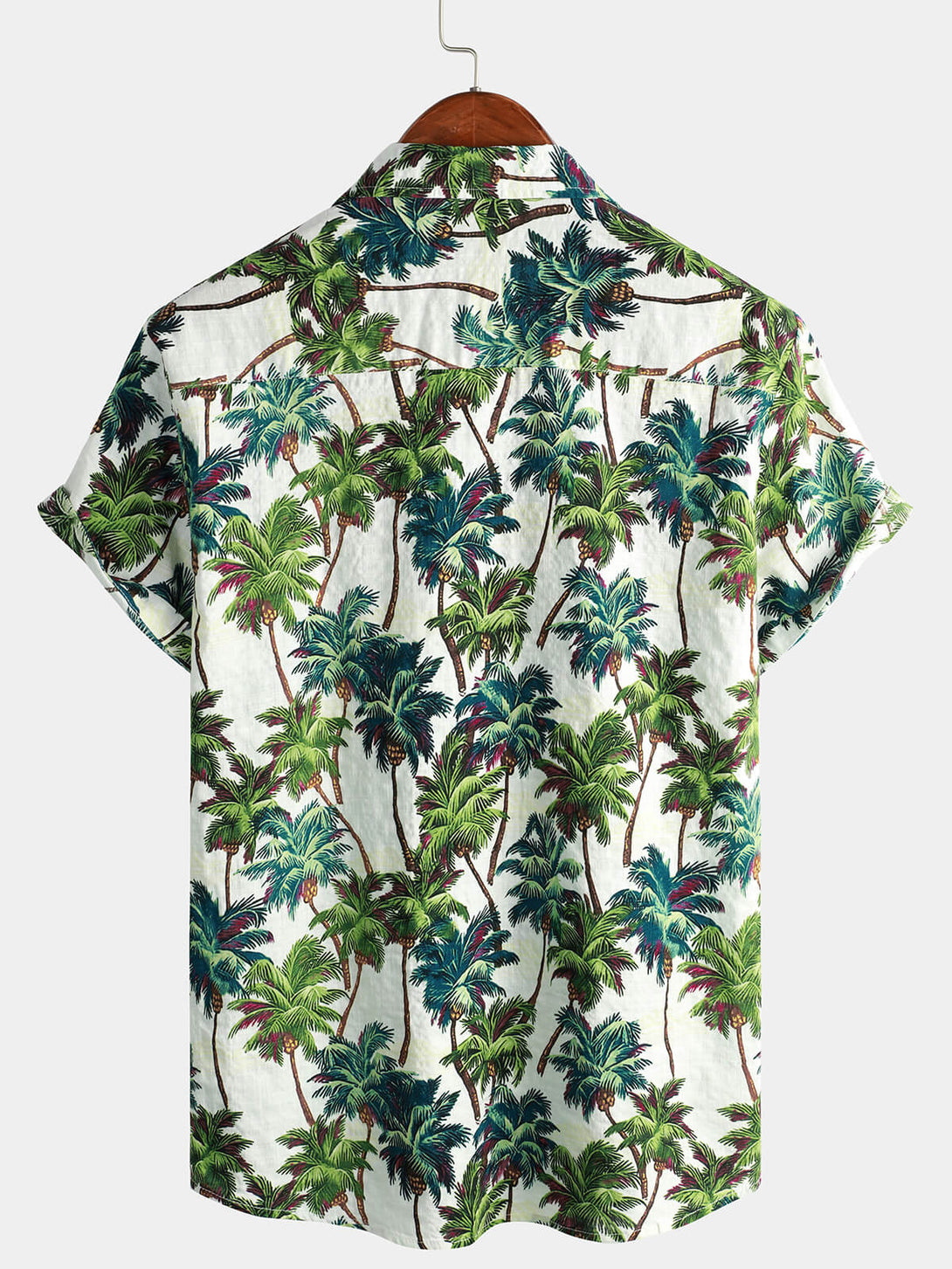 Men's Hawaiian Shirt With Tropical Floral Print, Summer Short Sleeve, Palm Tree Vintage Style