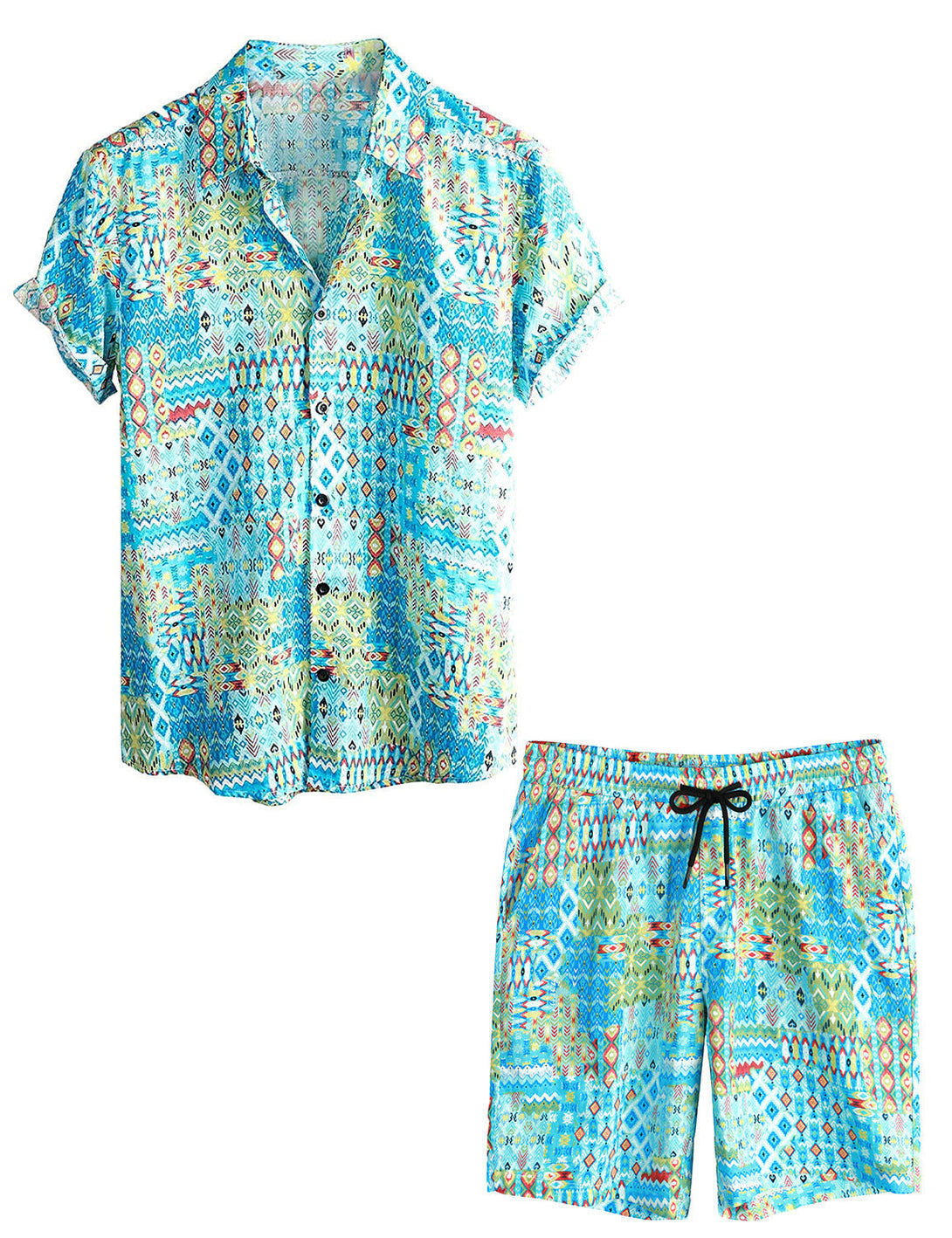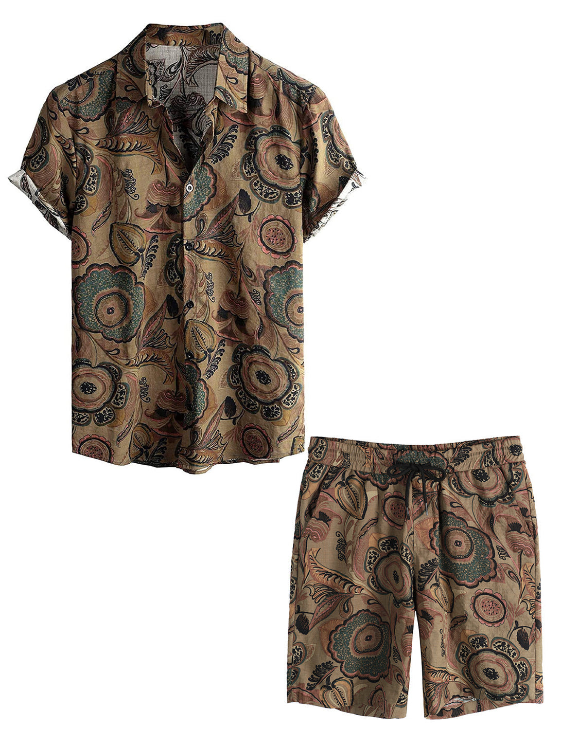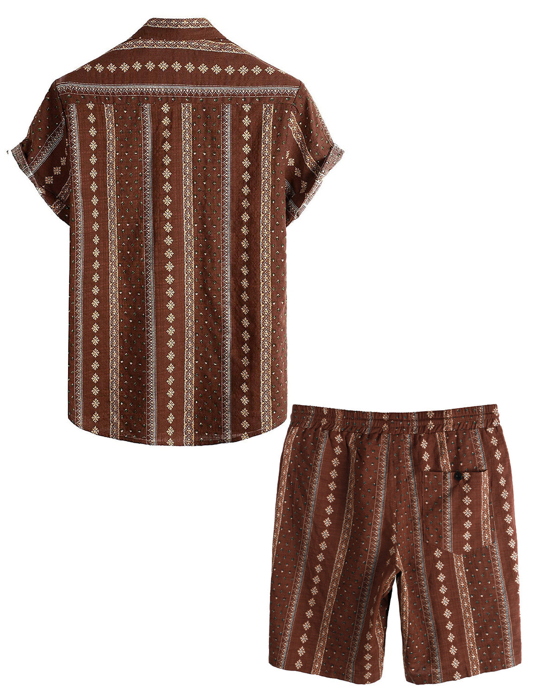 Men's Casual Vintage Button-Down Shirt And Shorts Set