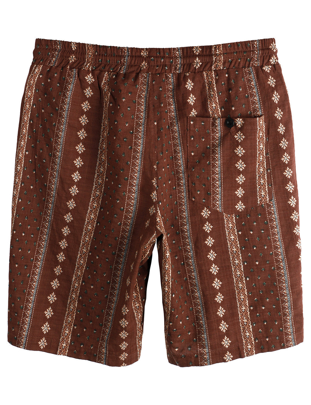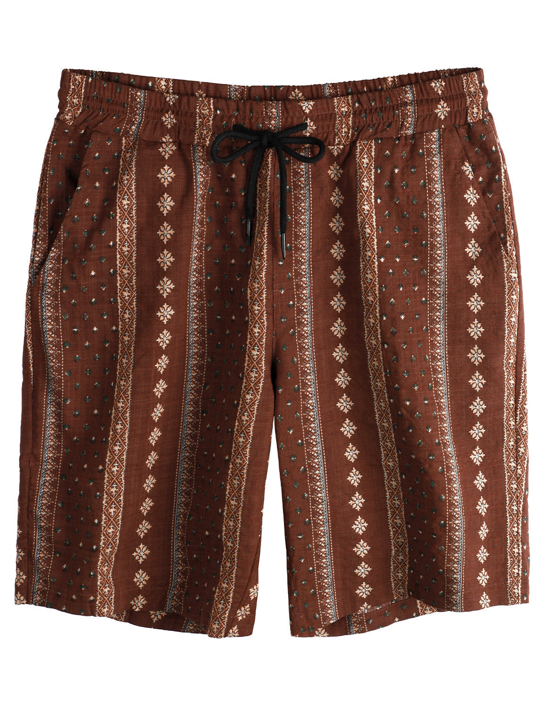 - Over shorts: Casual, all-over printed shorts with a flat front, slanted side and back pockets, a mid-rise waist, an elastic waistband, and a drawstring.