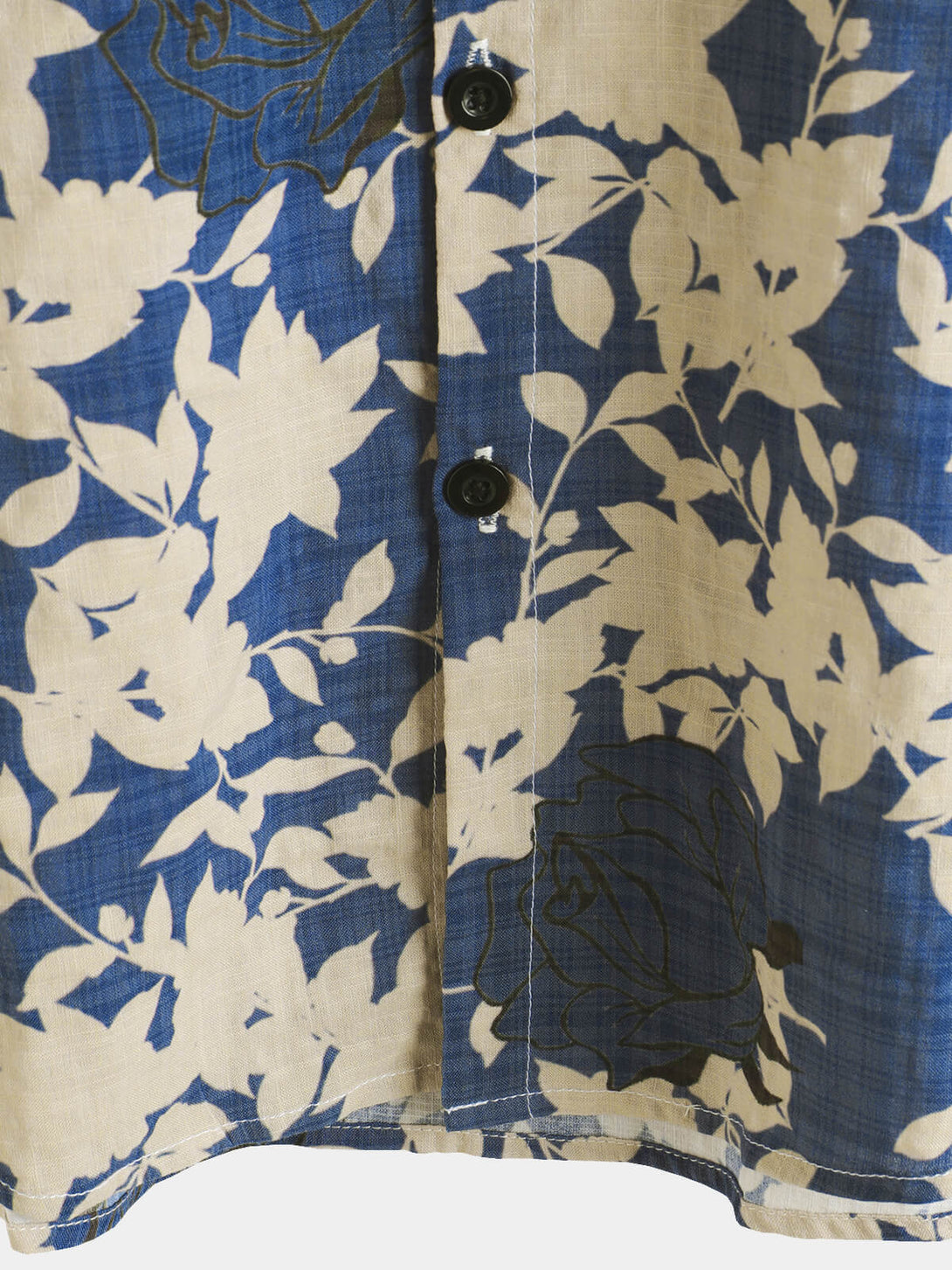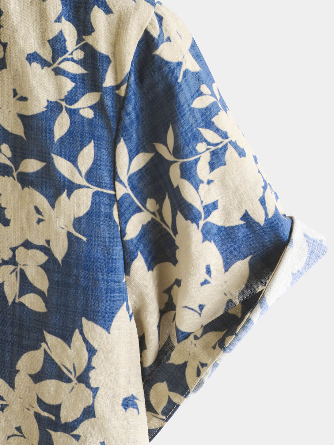 Men's Vintage Floral Blue Casual Beach Short Sleeve Shirt
