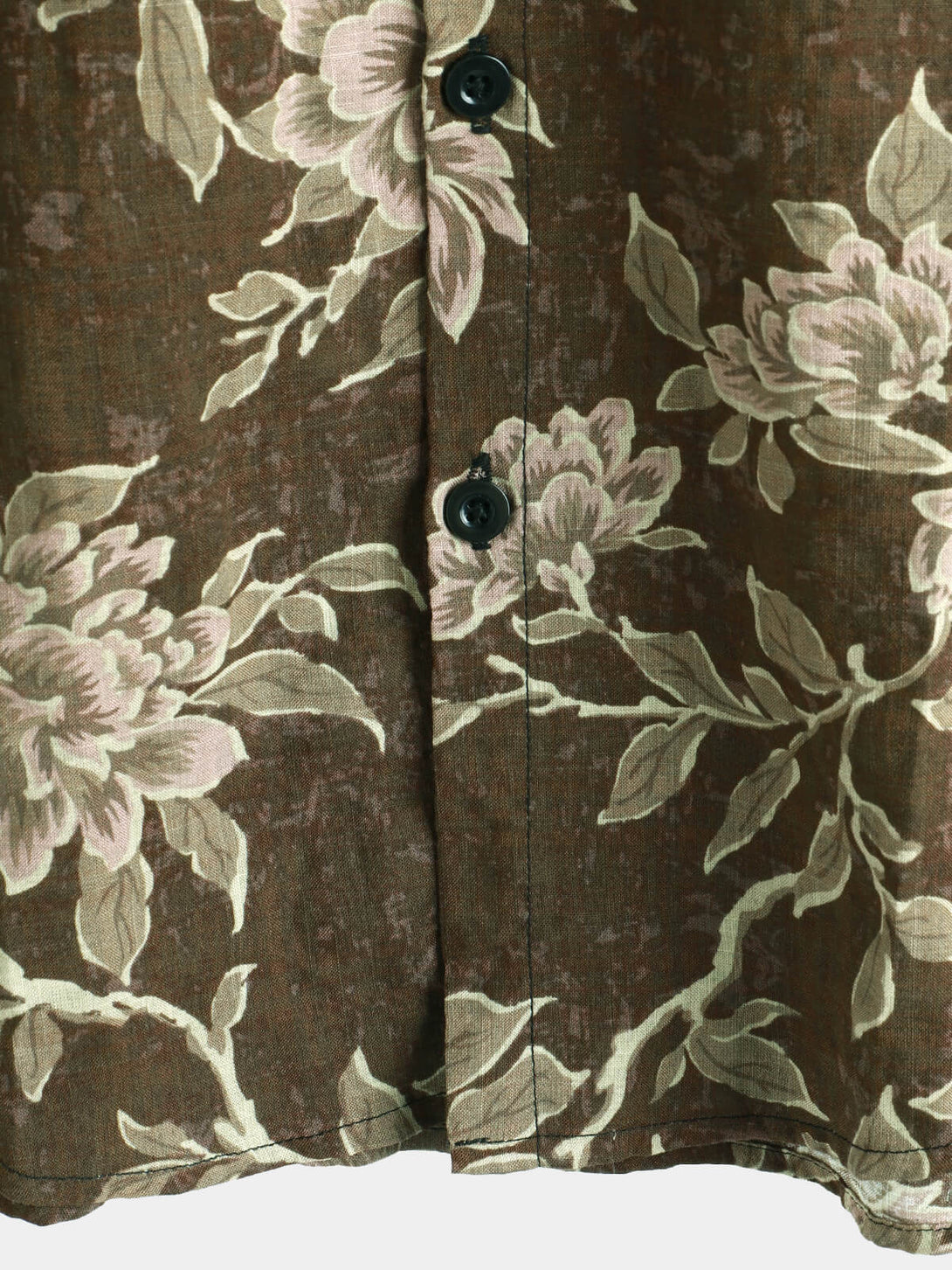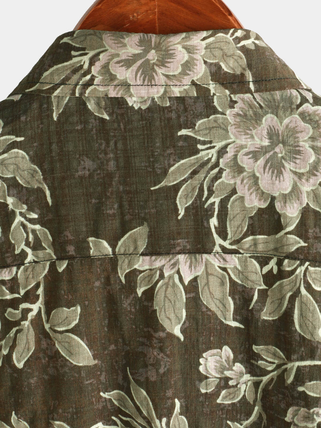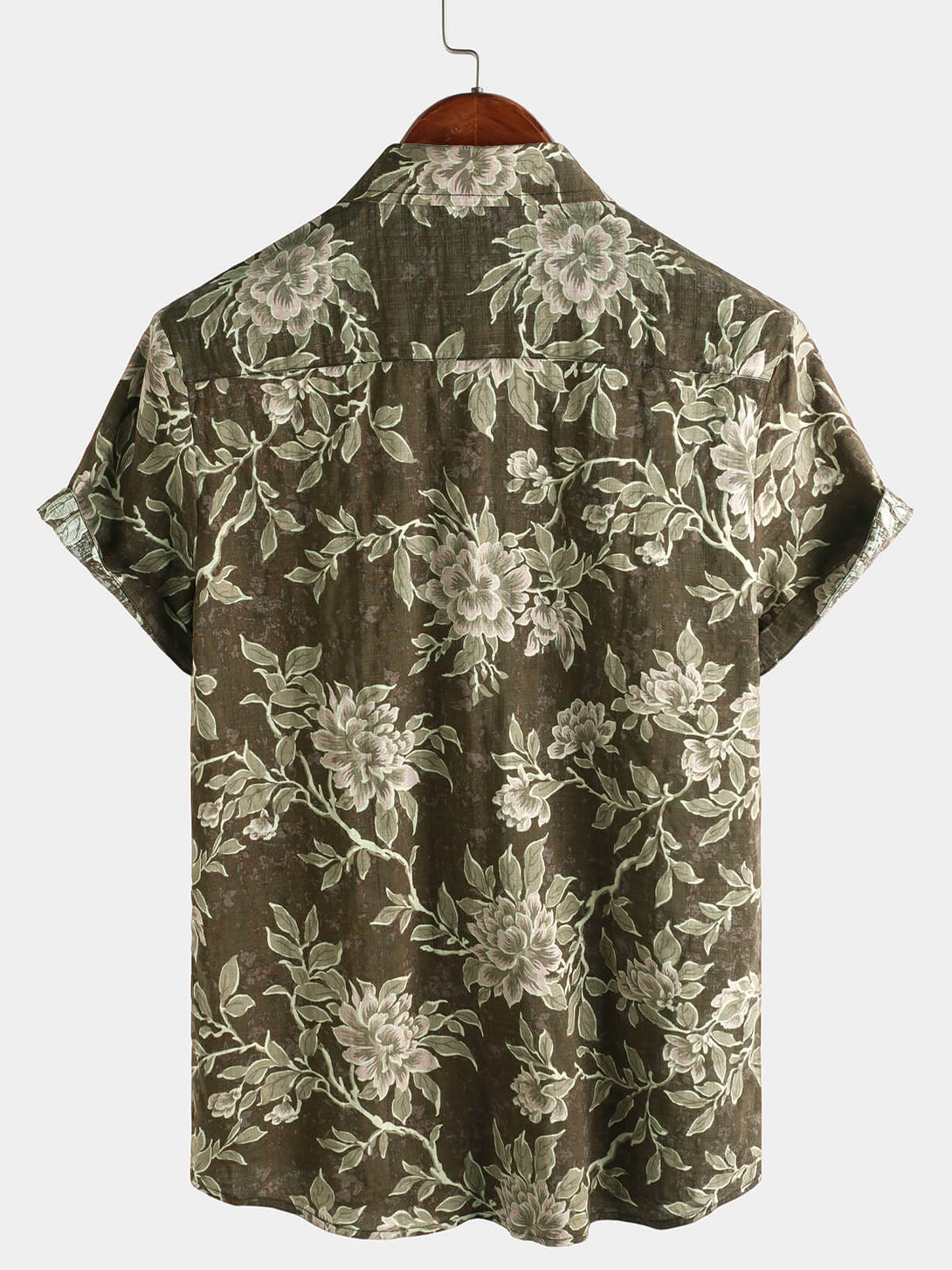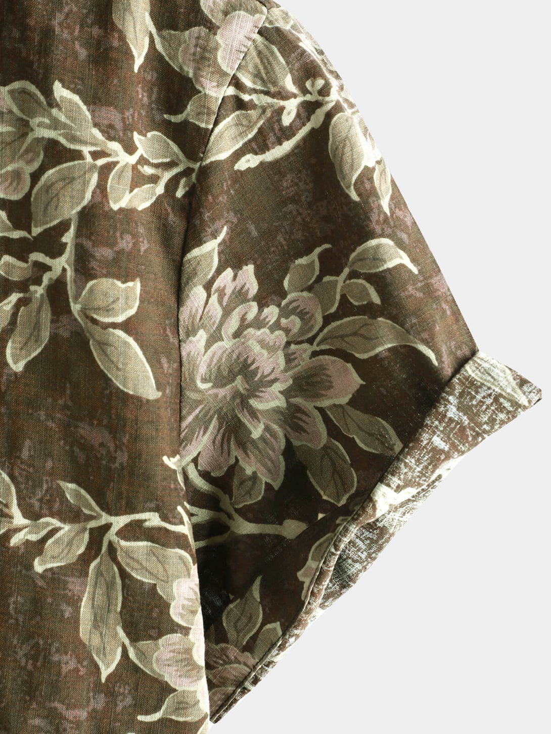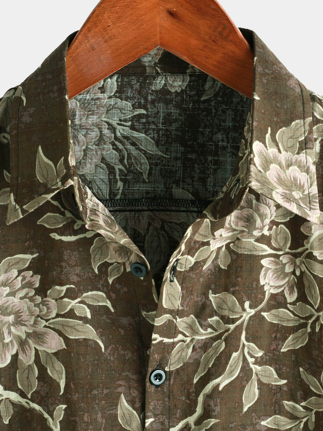 Men's Vintage Floral Brown Casual Holiday Short Sleeve Shirt