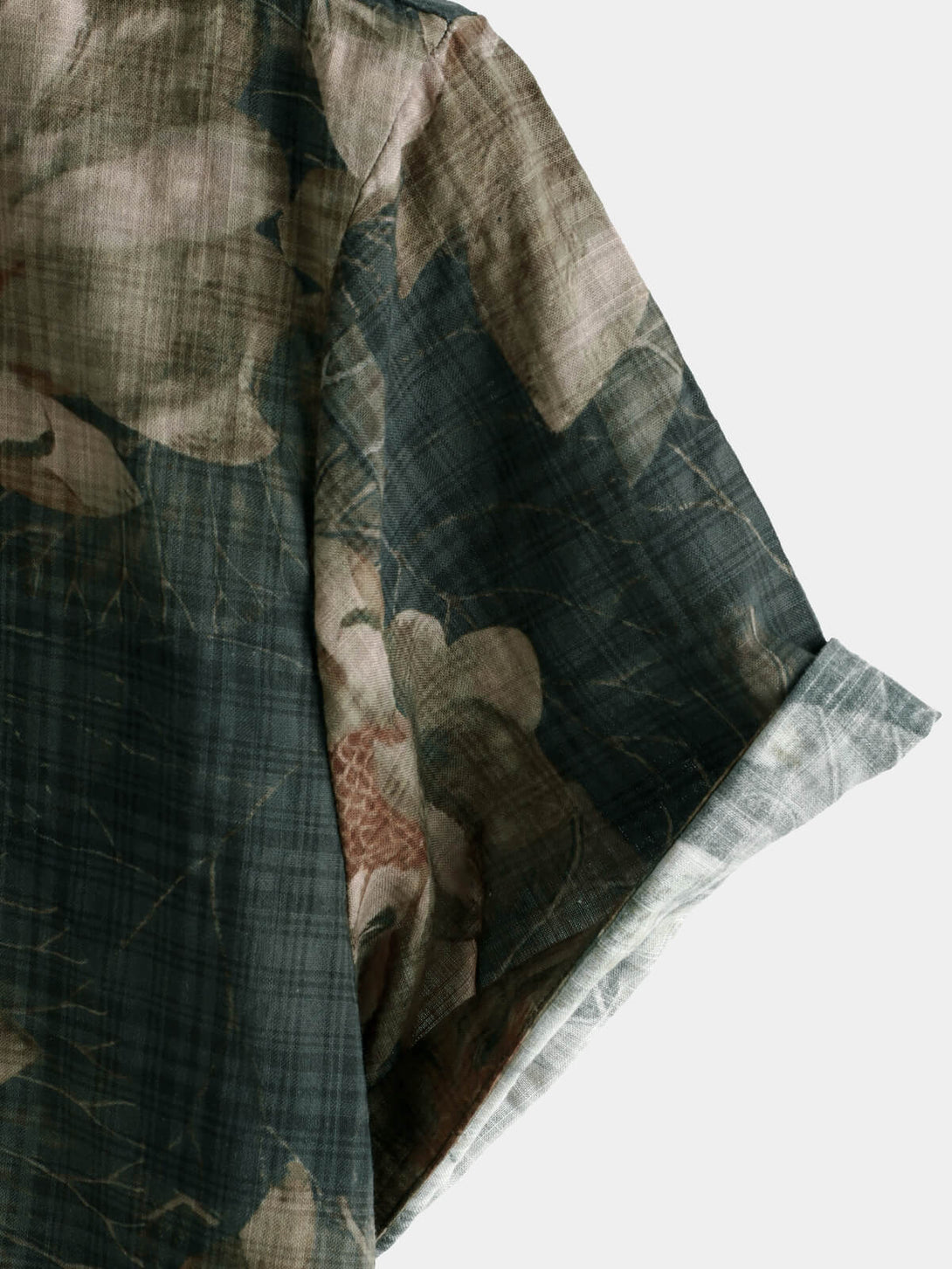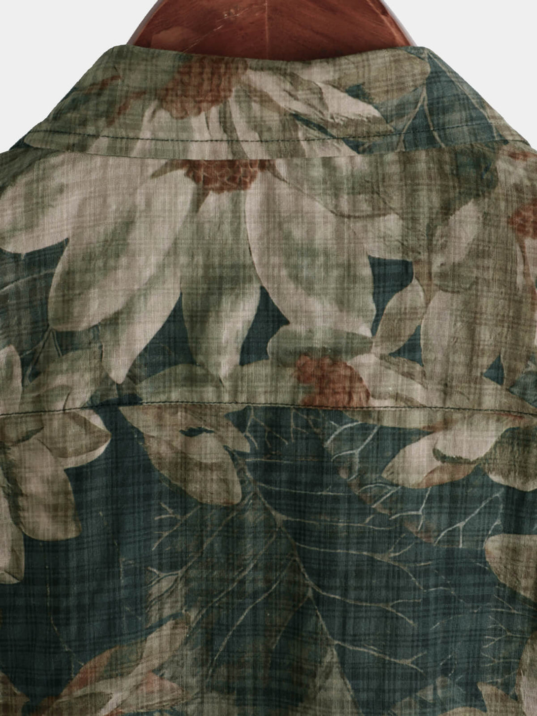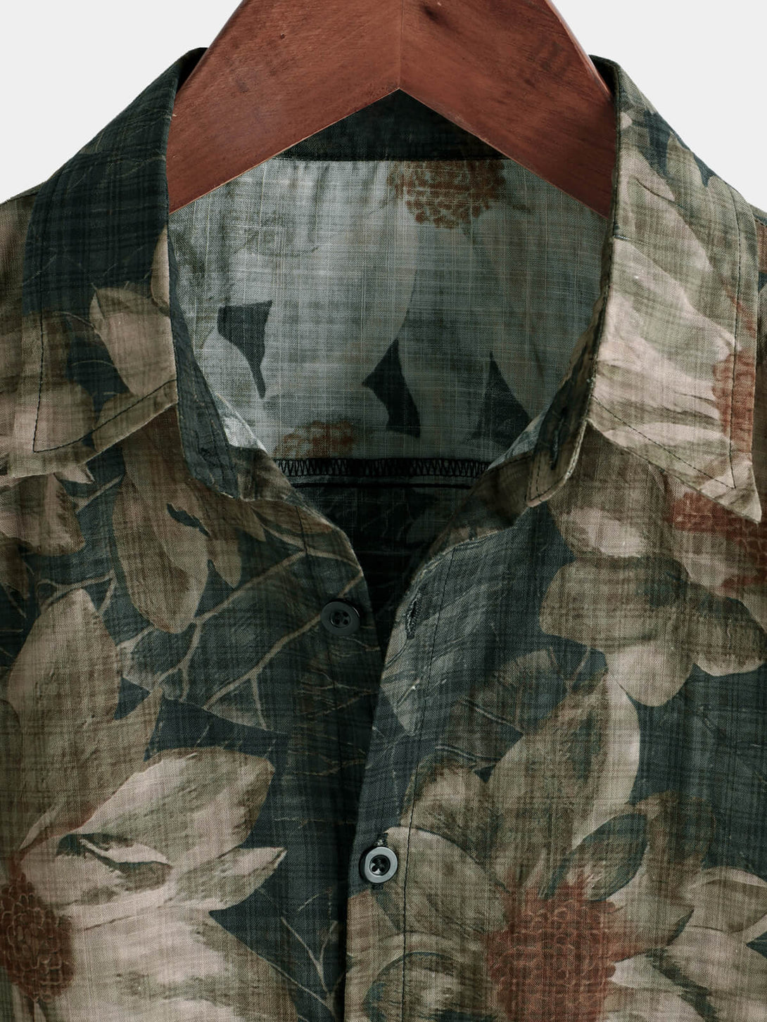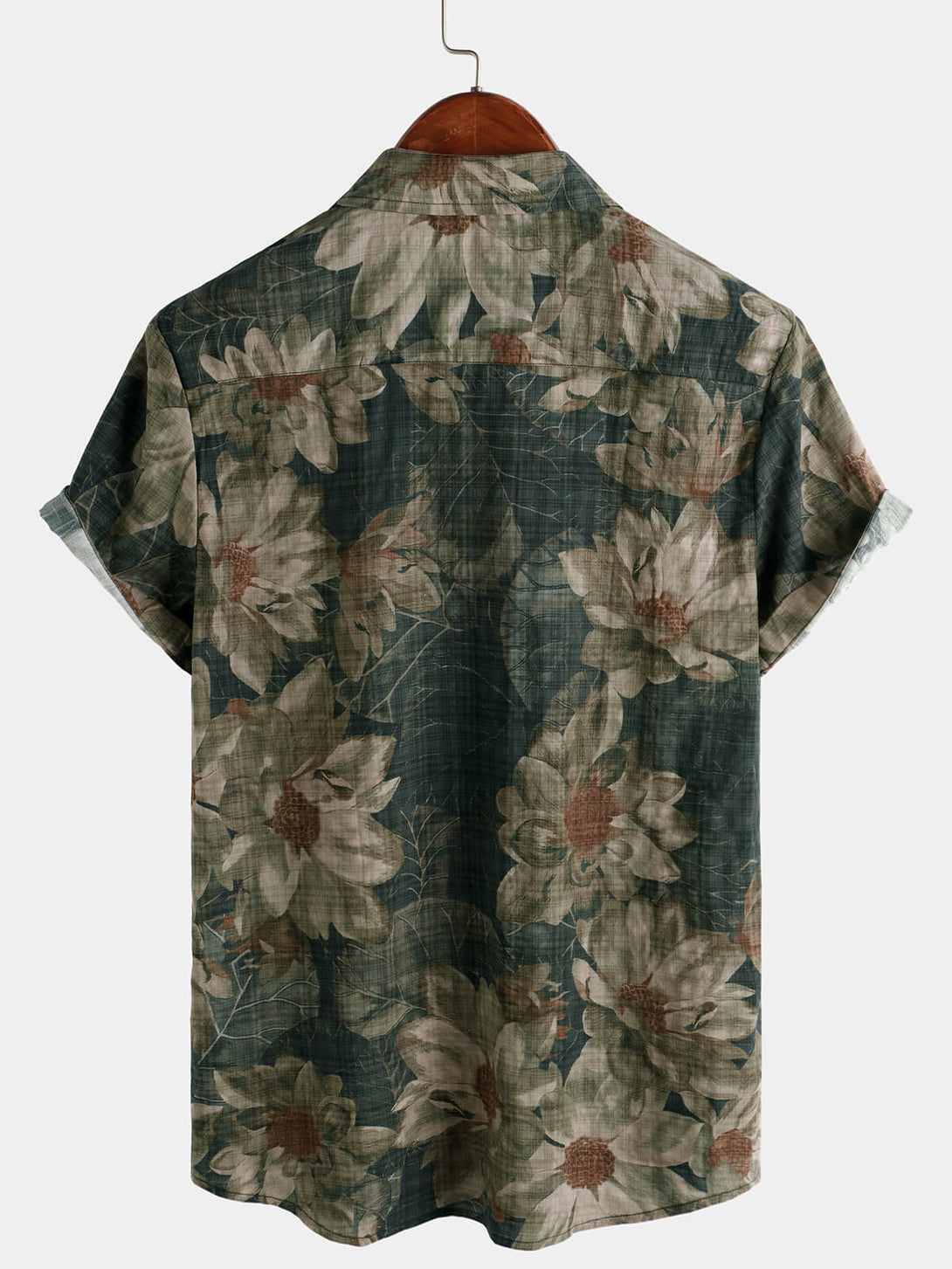 Men's Vintage Floral Print Casual Short Sleeve Shirt For Vacation
