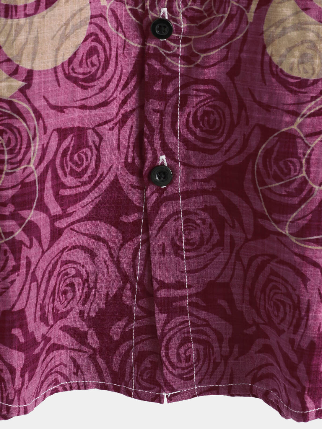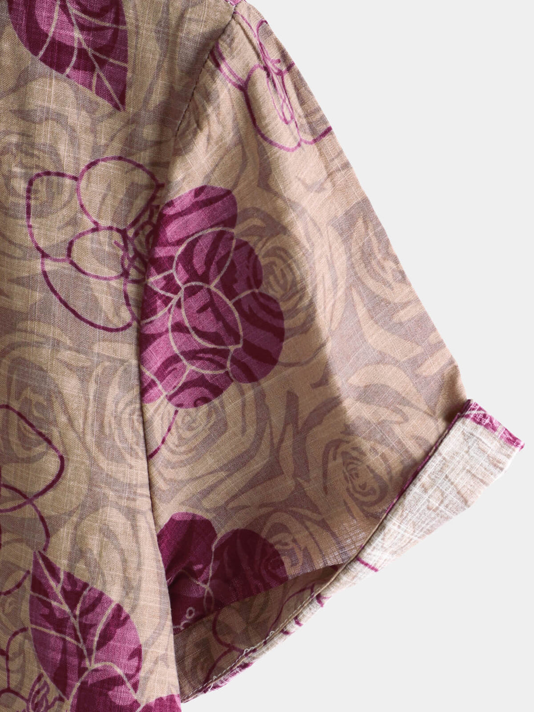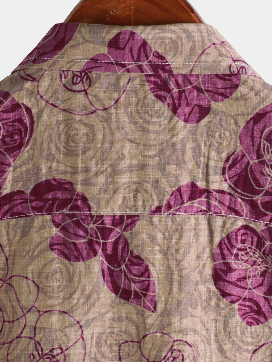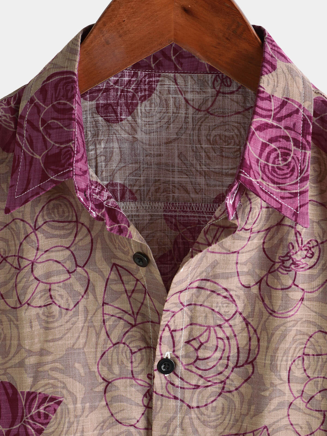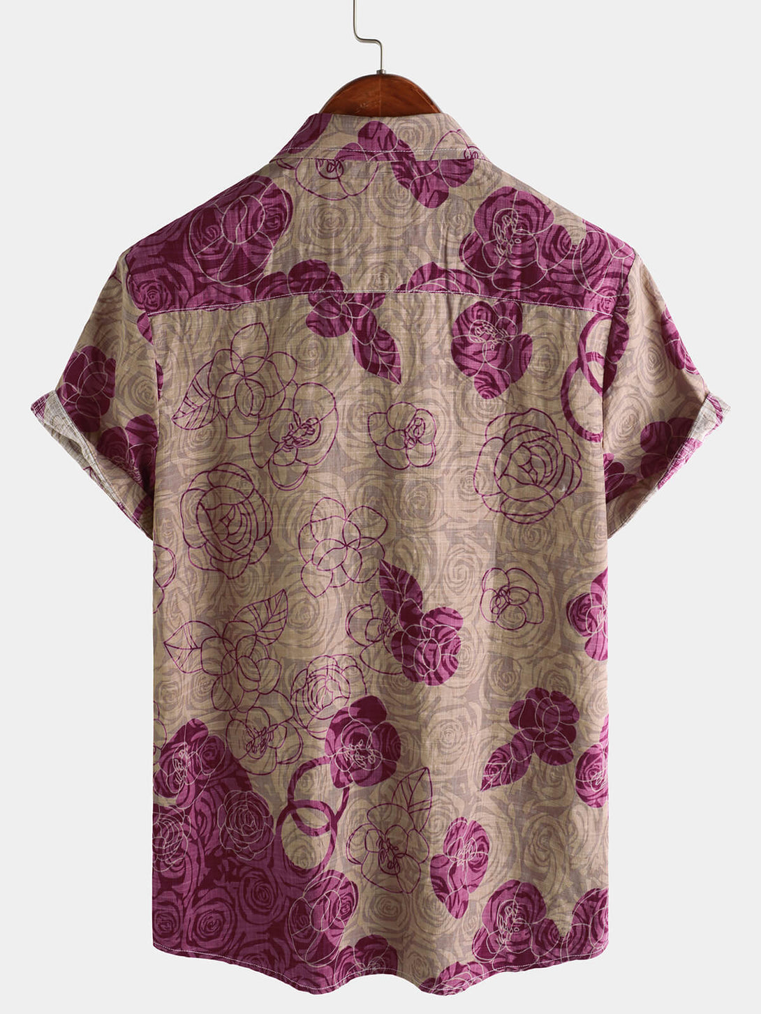 Men's Casual Short Sleeve Shirt With Vintage Floral Pattern