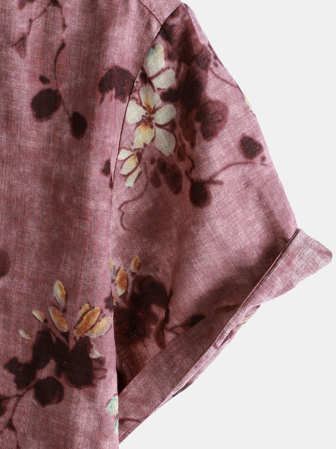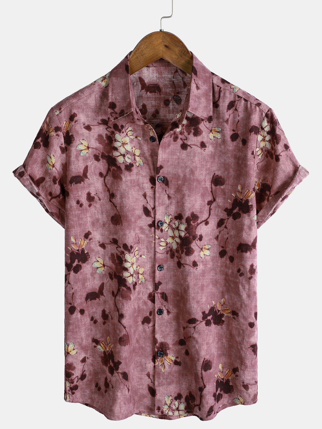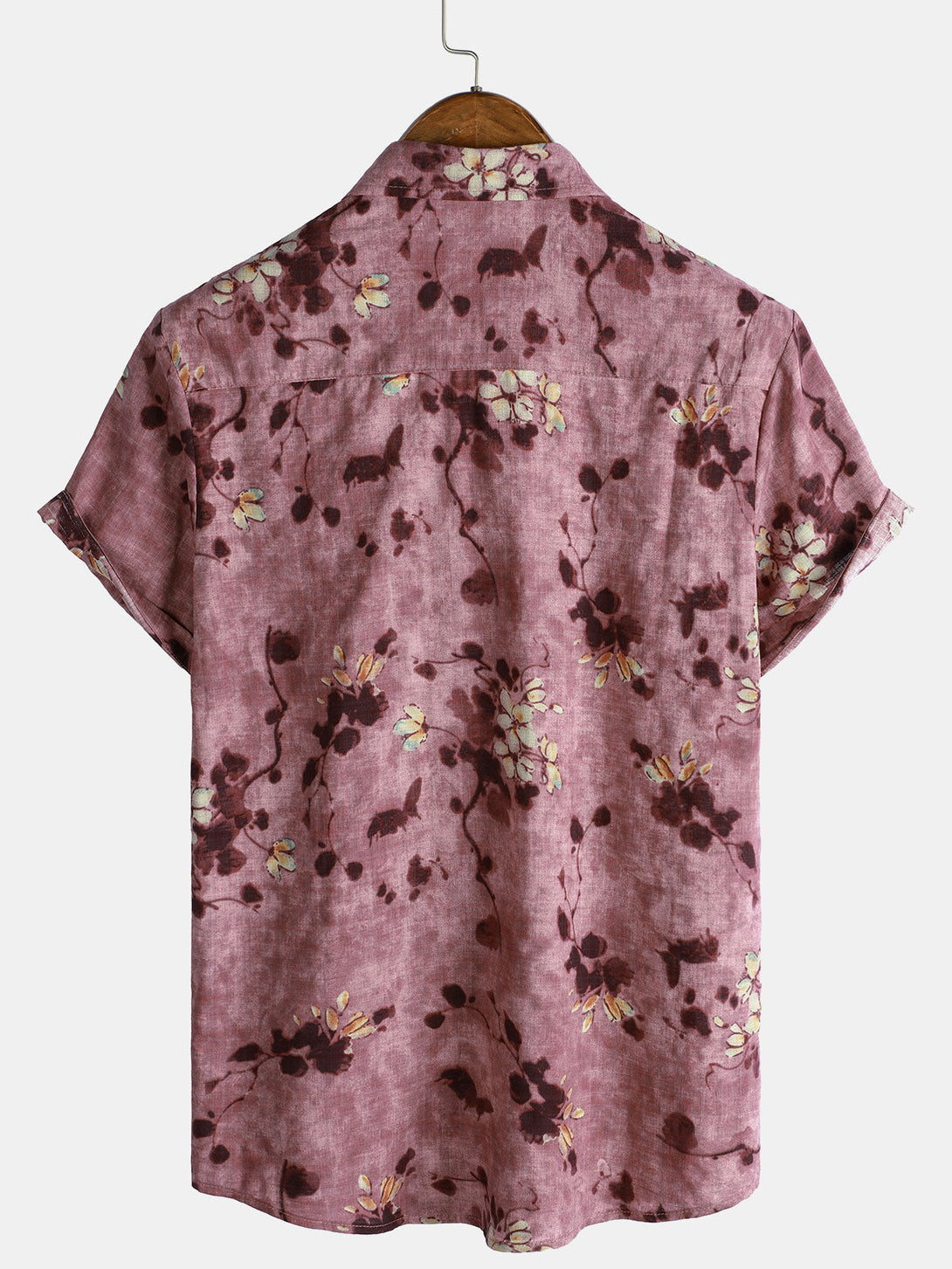 Breathable, Short-Sleeved, Button-Down Men's Cotton Shirt With Vintage Floral Pattern