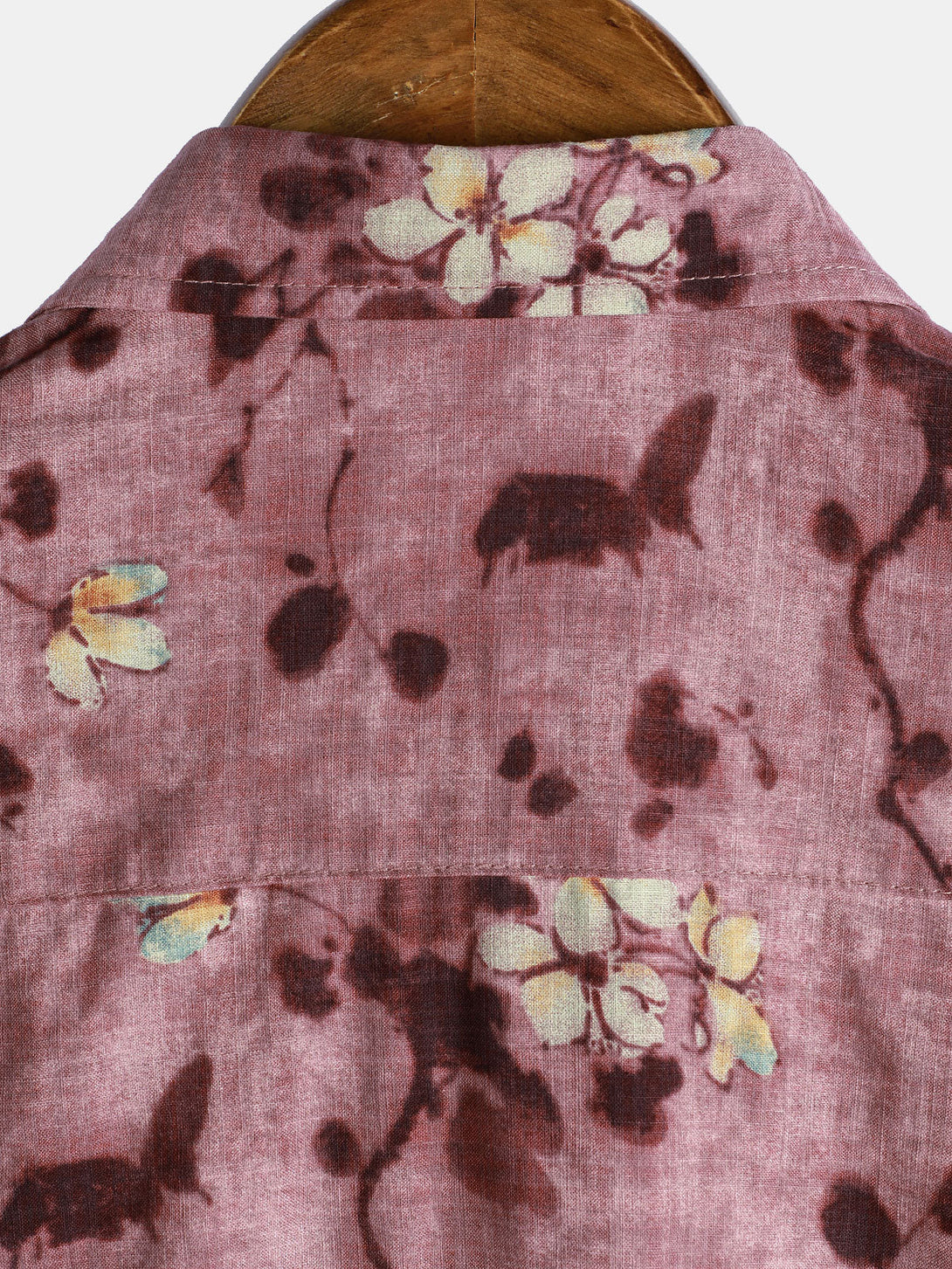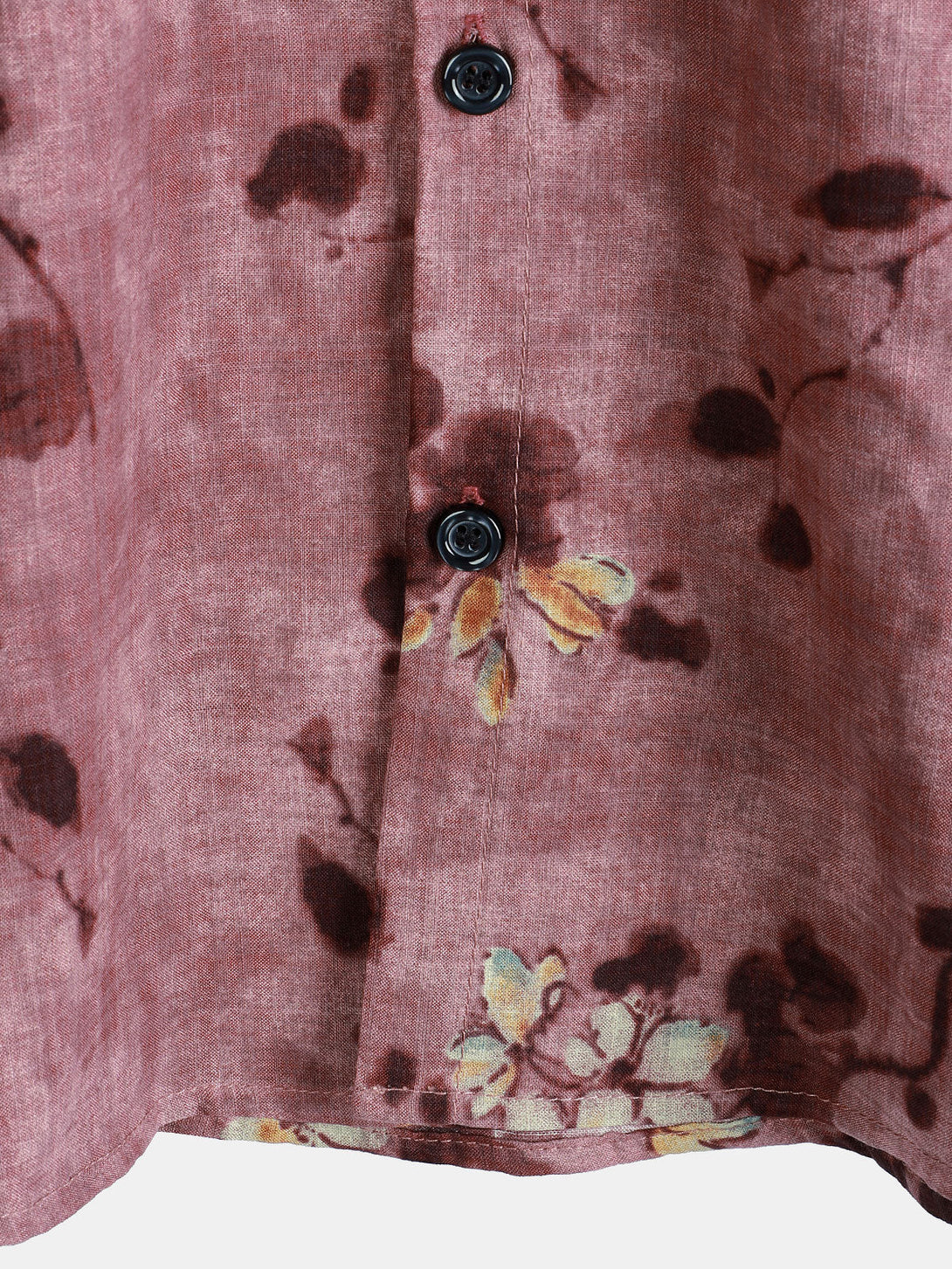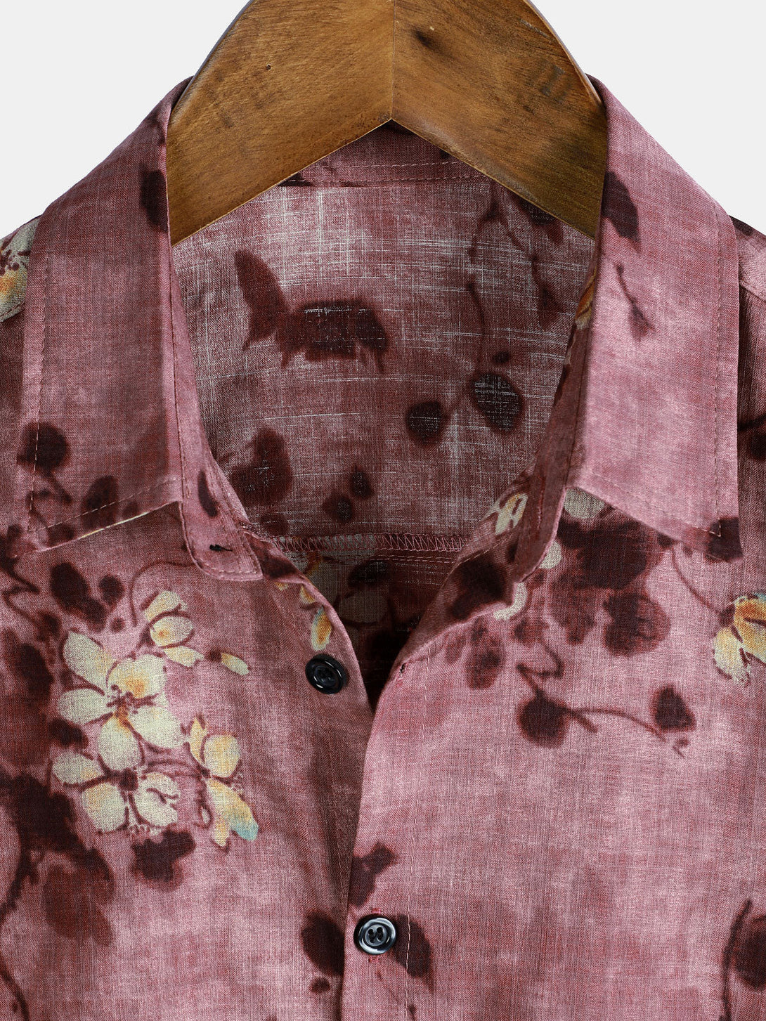 Breathable, Short-Sleeved, Button-Down Men's Cotton Shirt With Vintage Floral Pattern