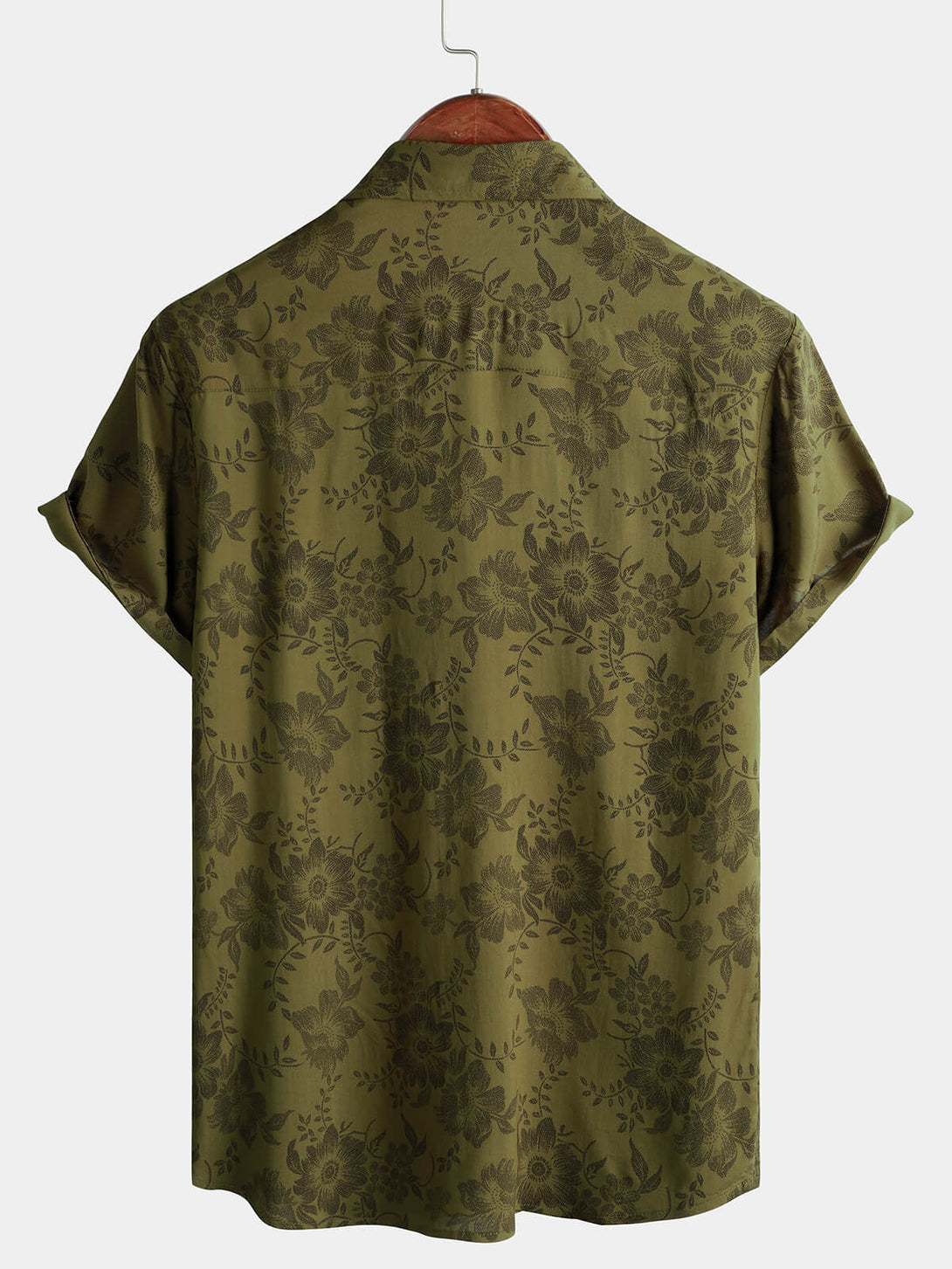 Men's Vintage Floral Green Short Sleeve Cool Retro 70S Summer Button Down Shirt