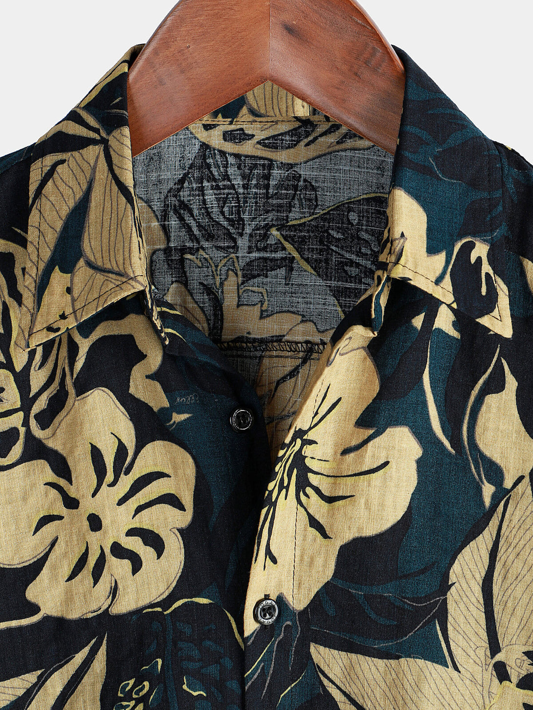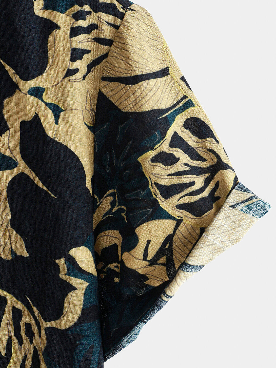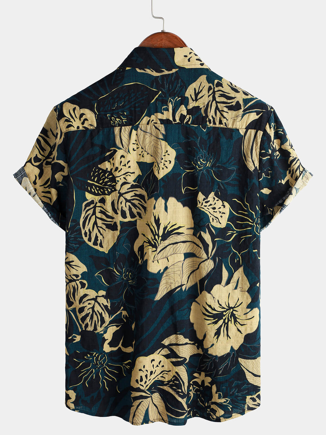 Men's Vintage Floral Leaf Print Pocket Summer Short Sleeve Lapel Shirt
