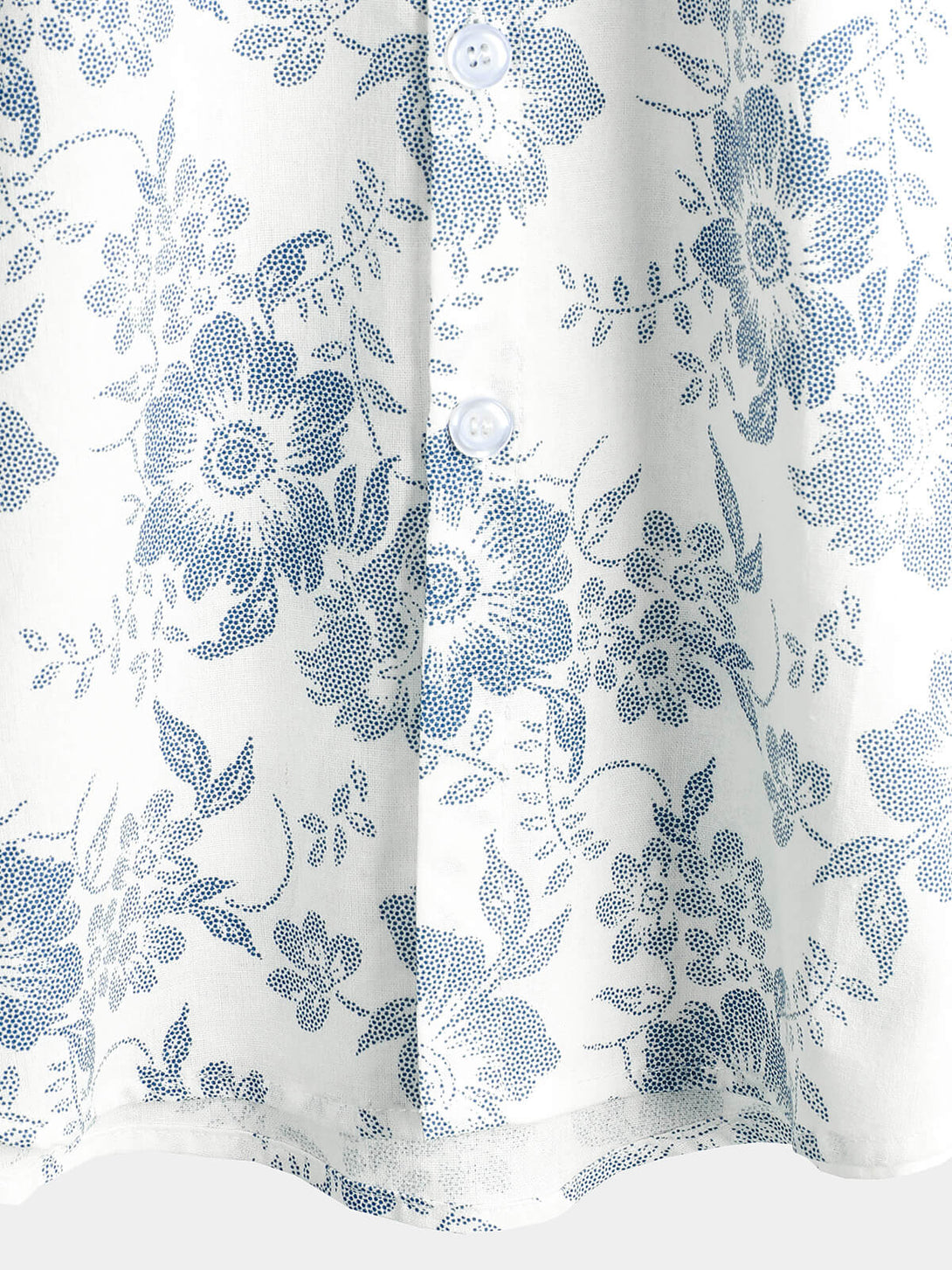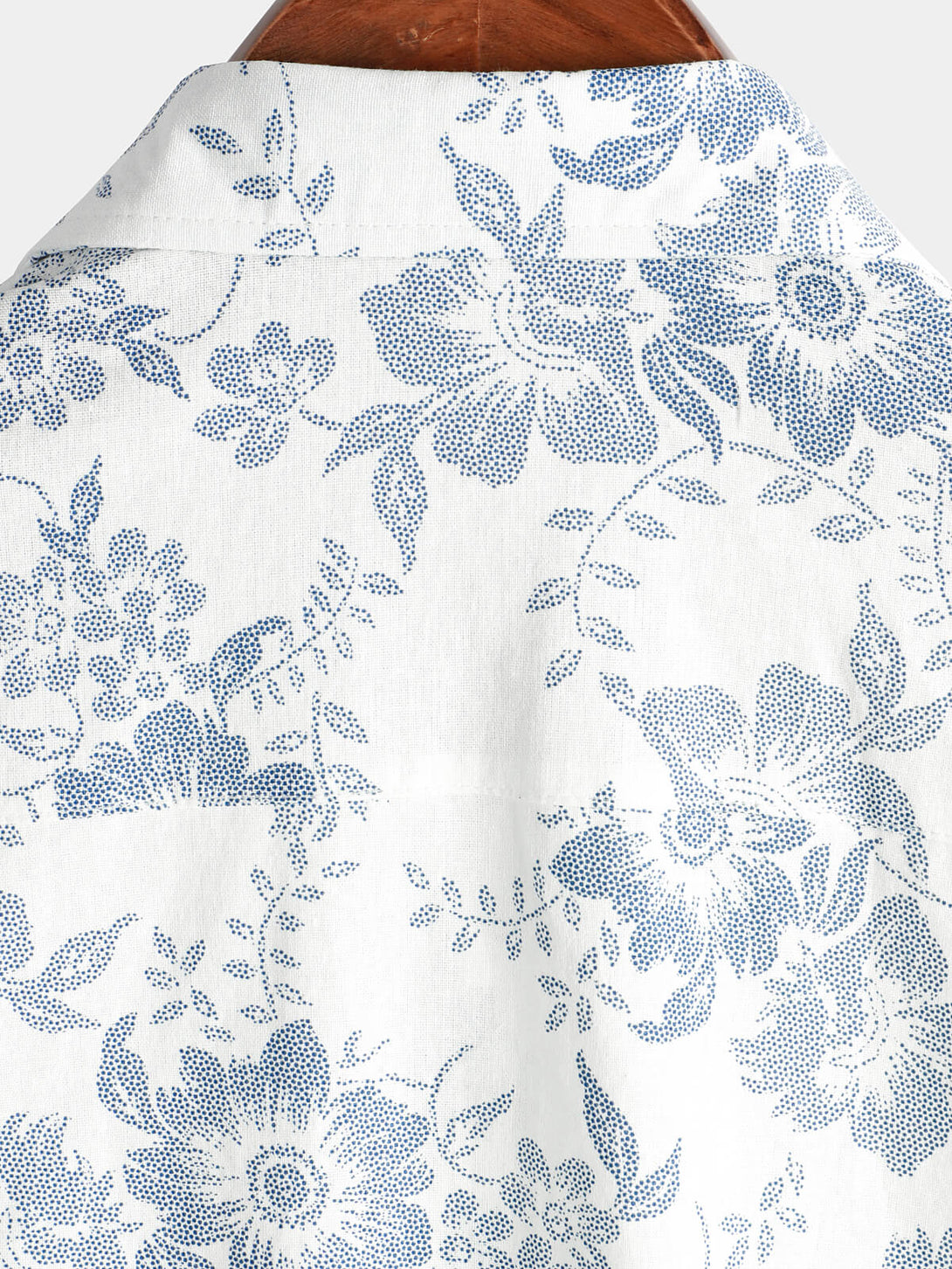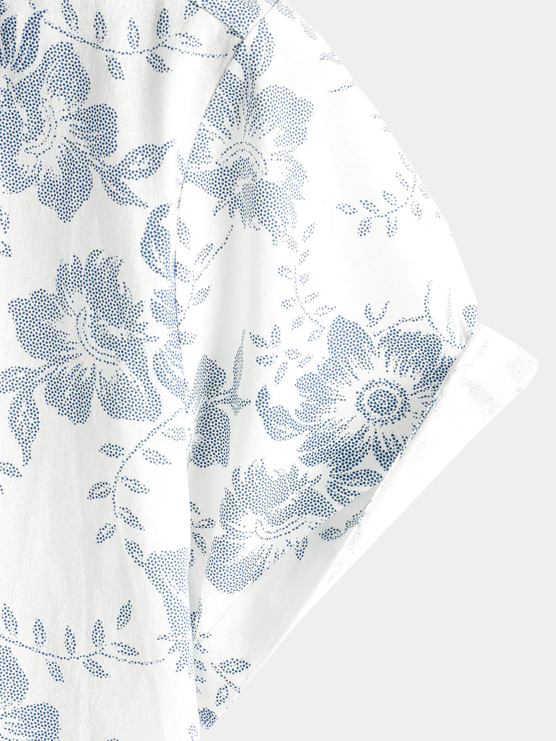 Men's Vintage Floral Print Shirt Floral Vacation Cotton Linen Breathable Short Sleeve Button Down White Hawaiian Summer Shirt