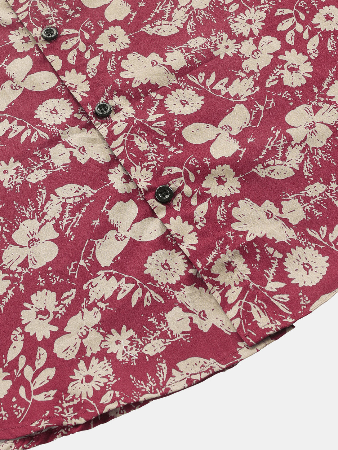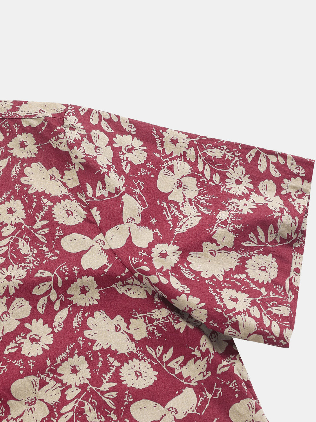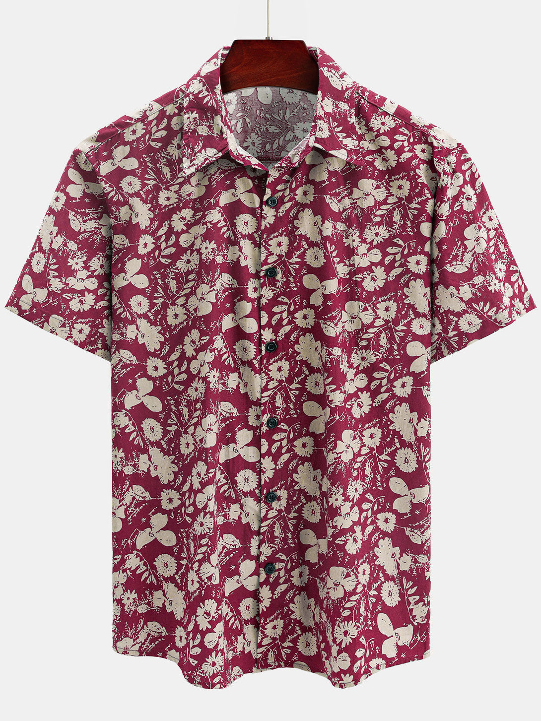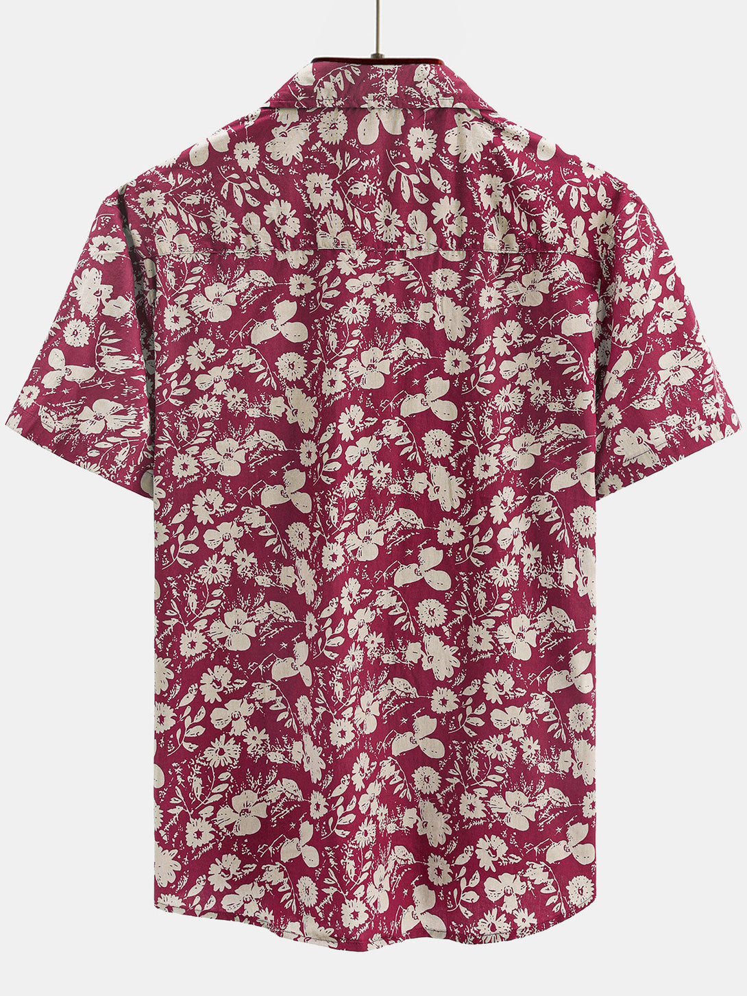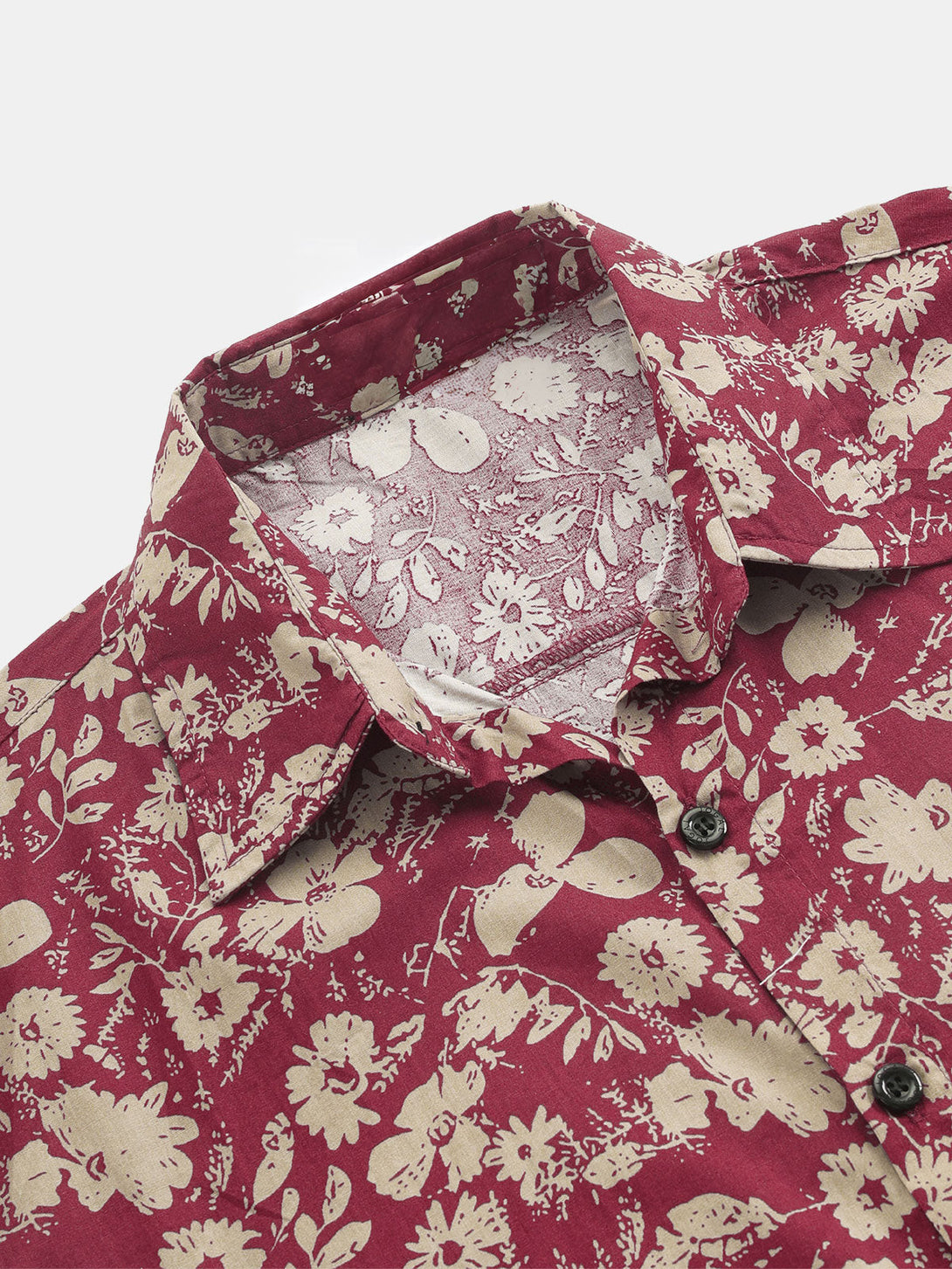 Men's Short-Sleeved Shirt With Vintage Floral Pattern In Red For Vacation