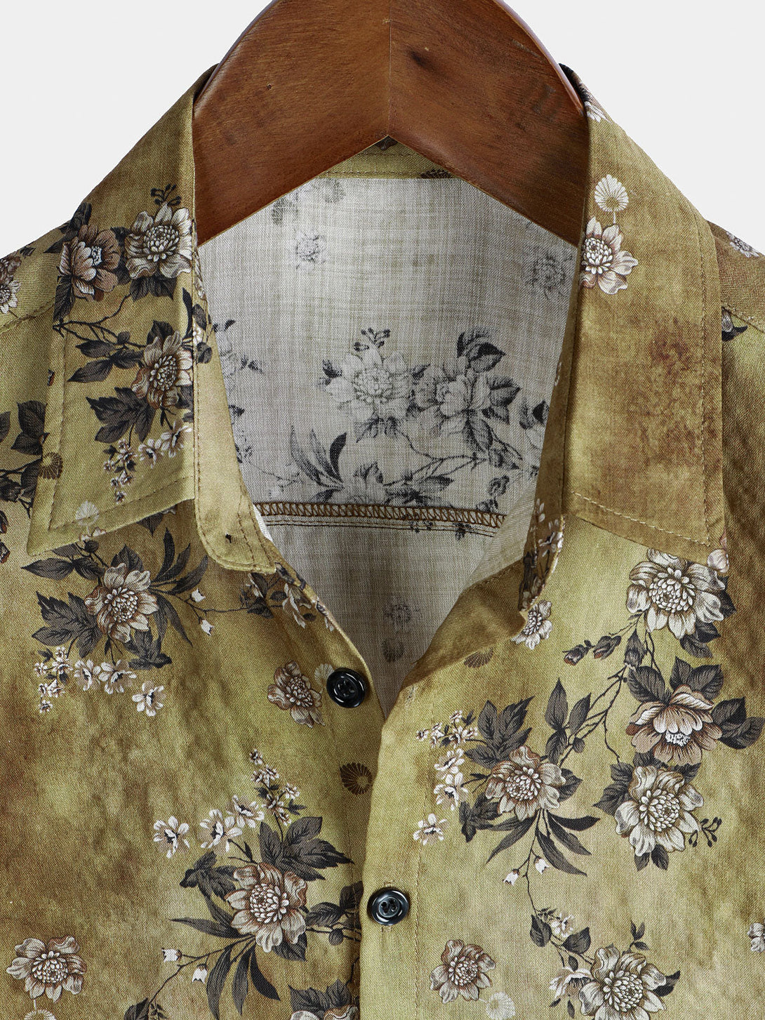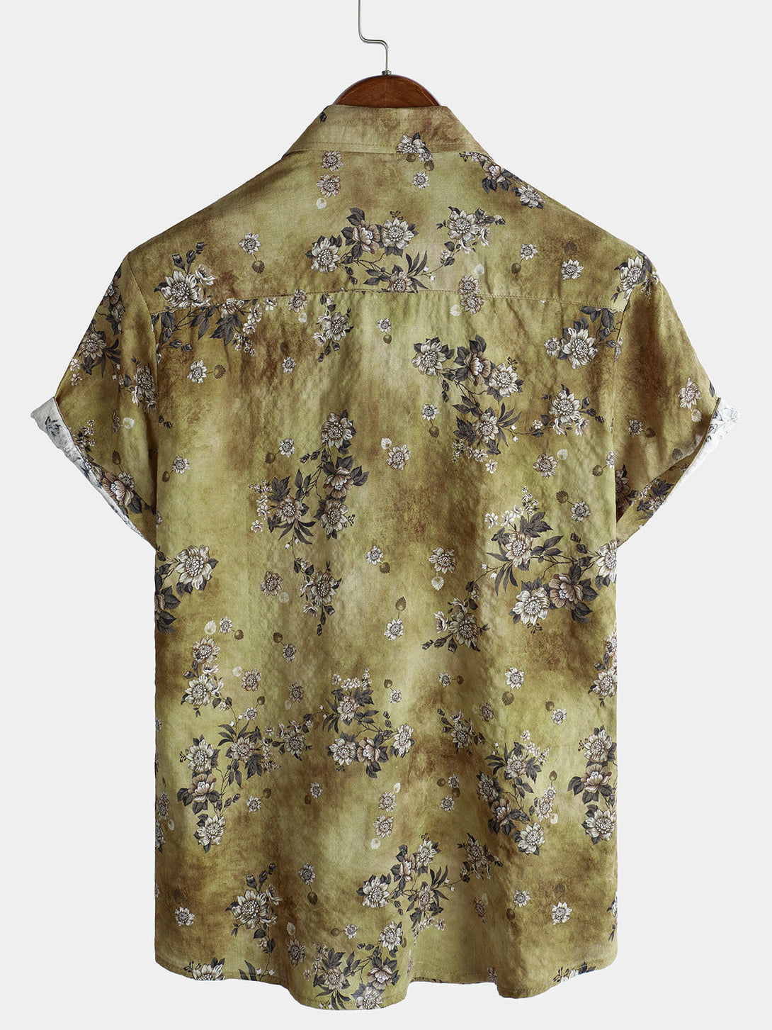 Men's Vintage Floral Retro Summer Holiday Short Sleeve Shirt