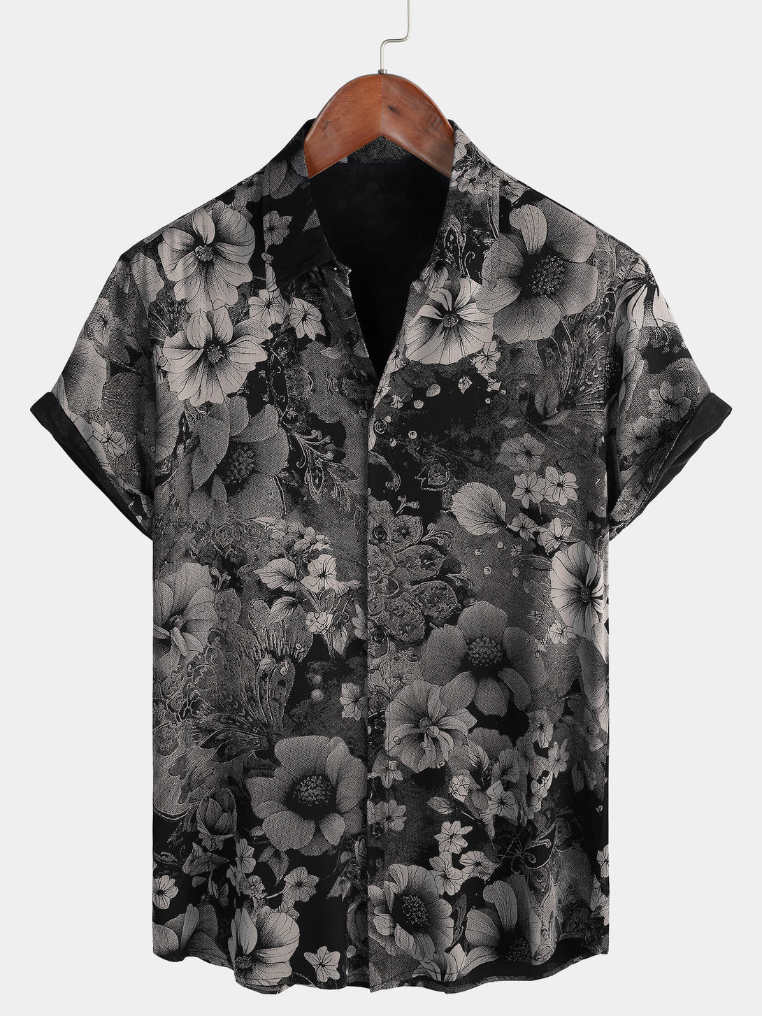 Men's Vintage Floral Print Summer Holiday Hawaiian Breathable Button Down Short Sleeve Shirt