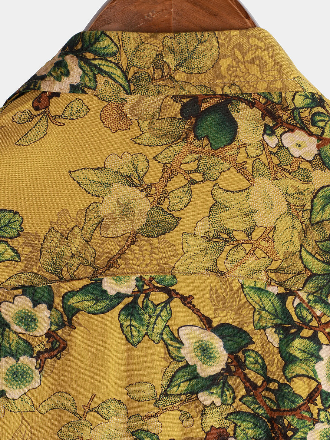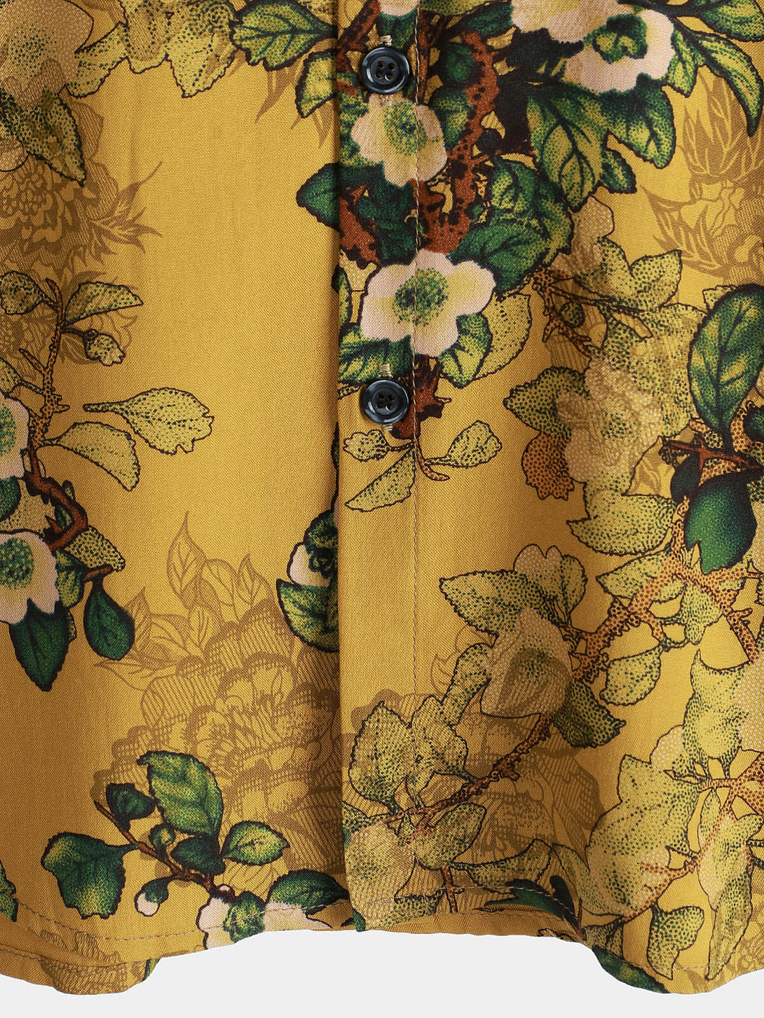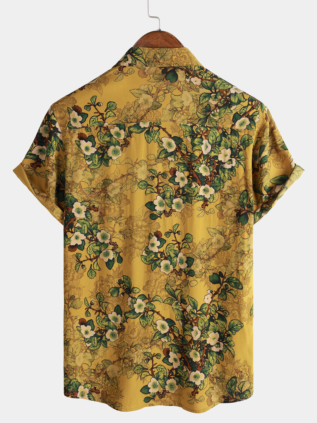 Men's Vintage Holiday Casual Rayon Soft Floral Short Sleeve Button Down Shirt