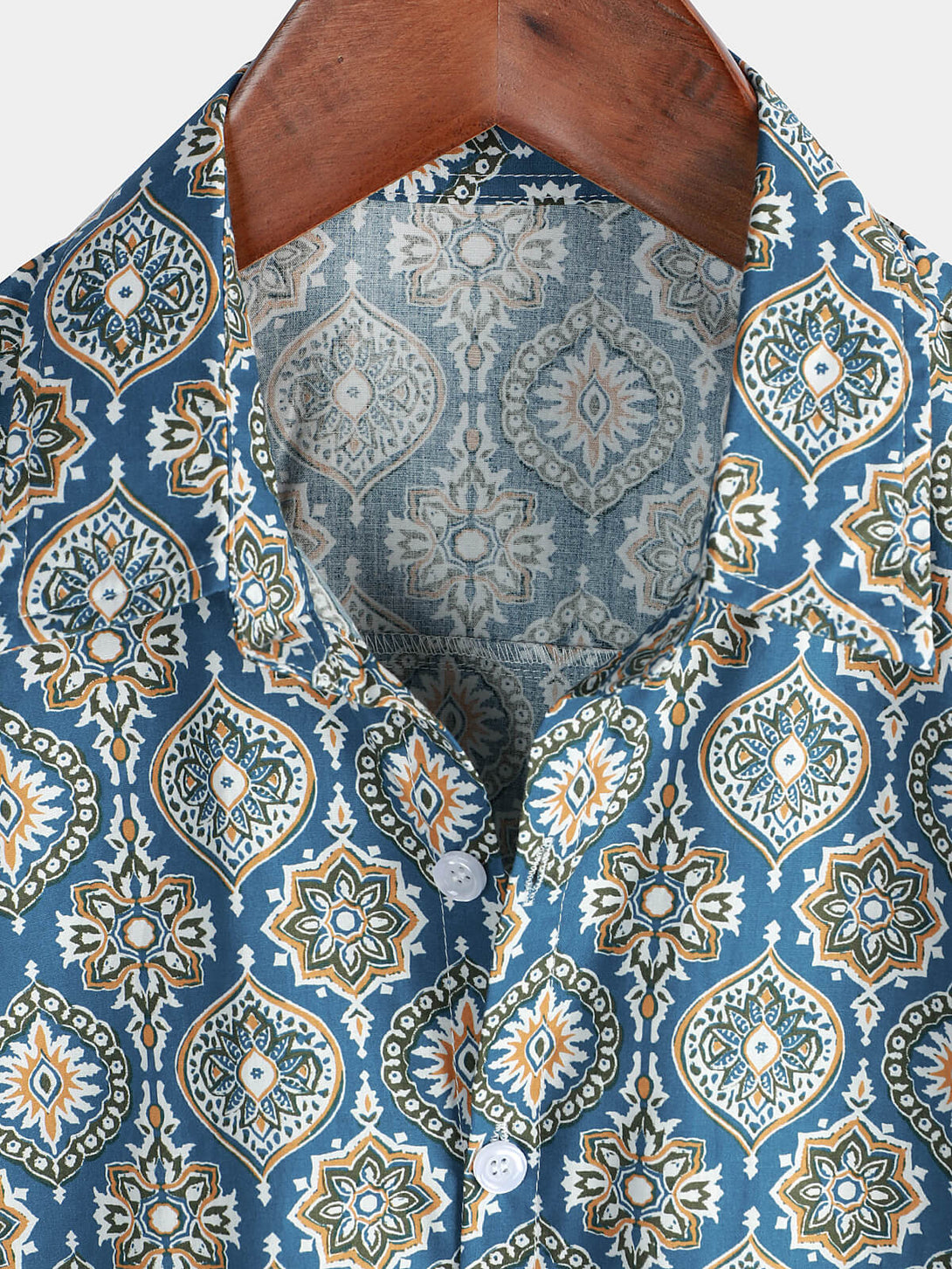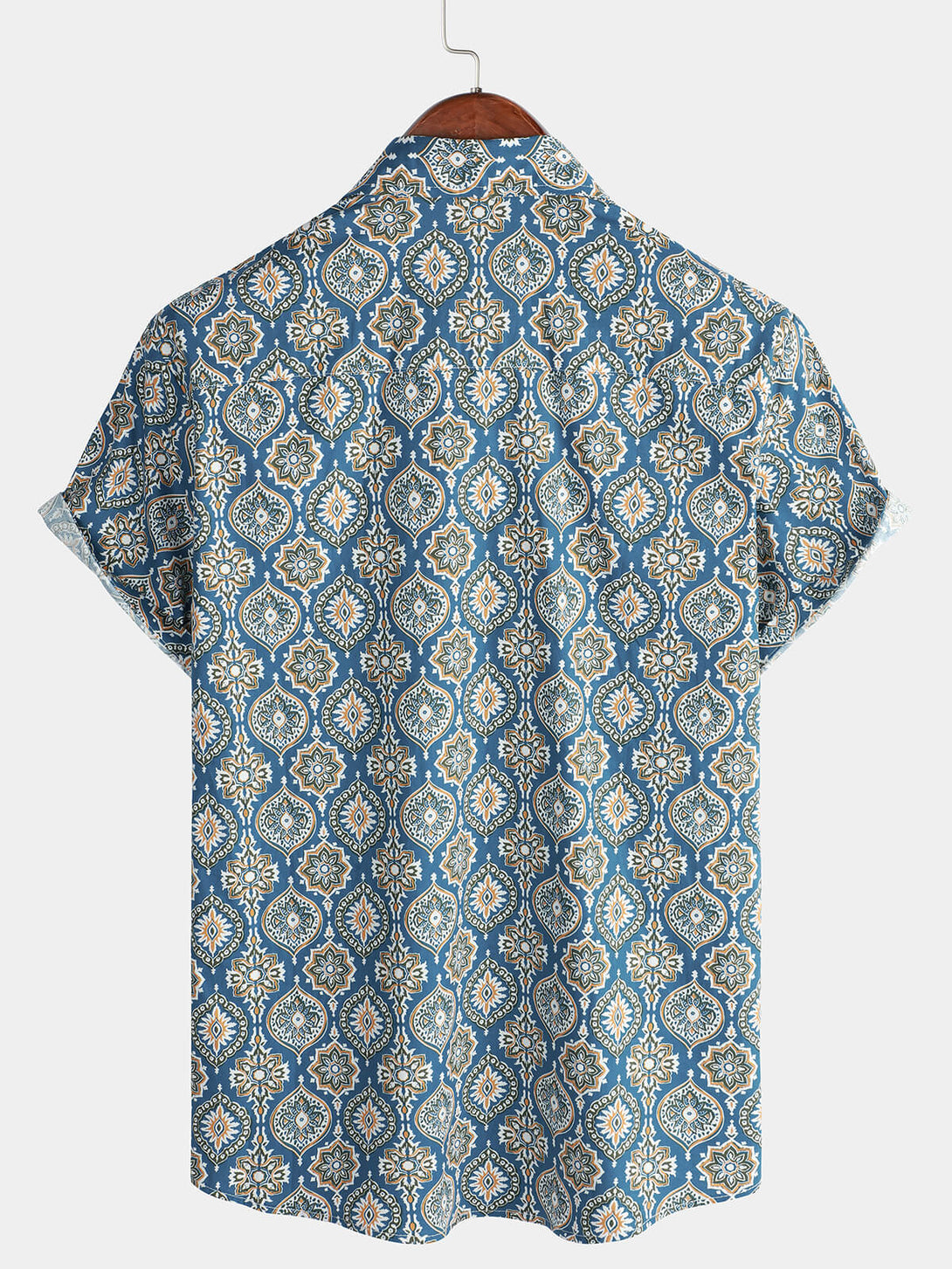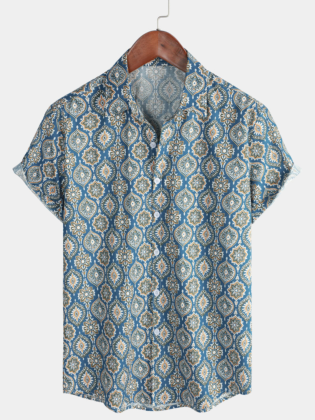 Men's Vintage Holiday Cotton Summer Floral Button Up Blue Short Sleeve Shirt