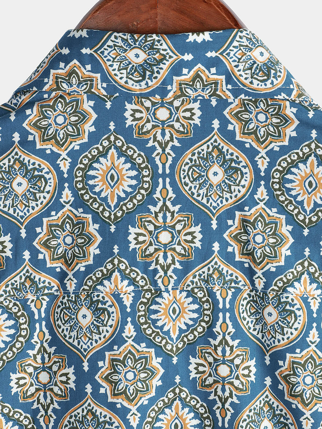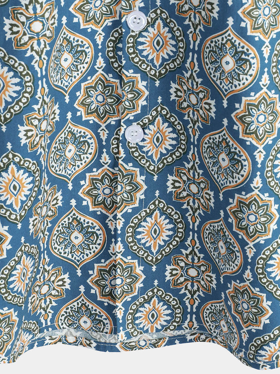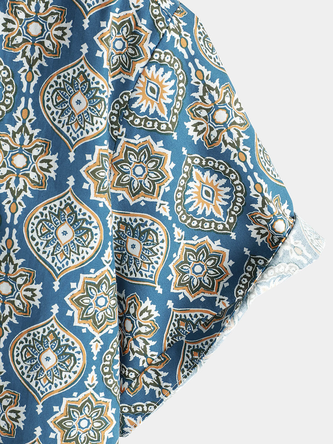 Men's Vintage Holiday Cotton Summer Floral Button Up Blue Short Sleeve Shirt