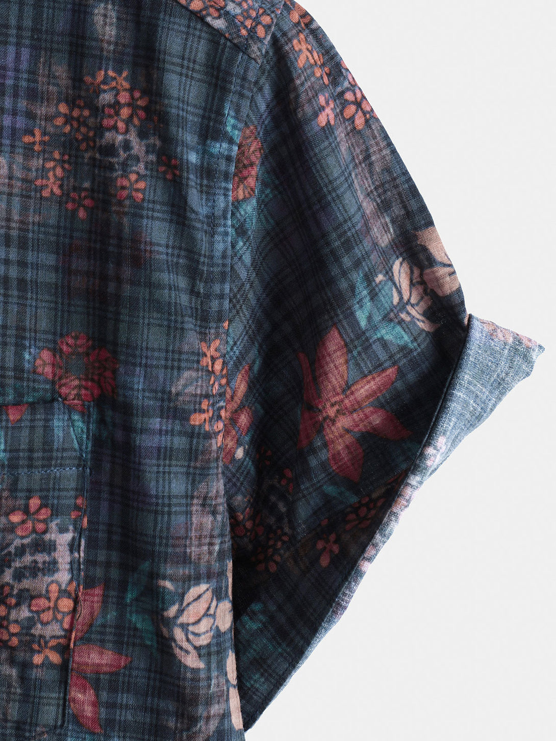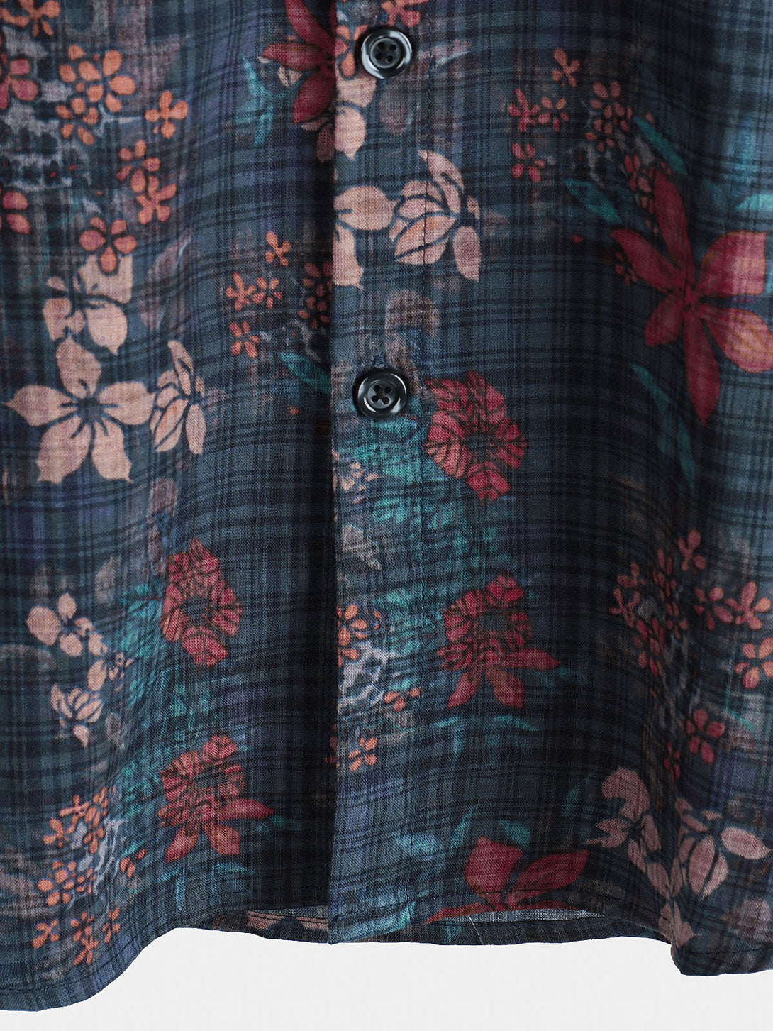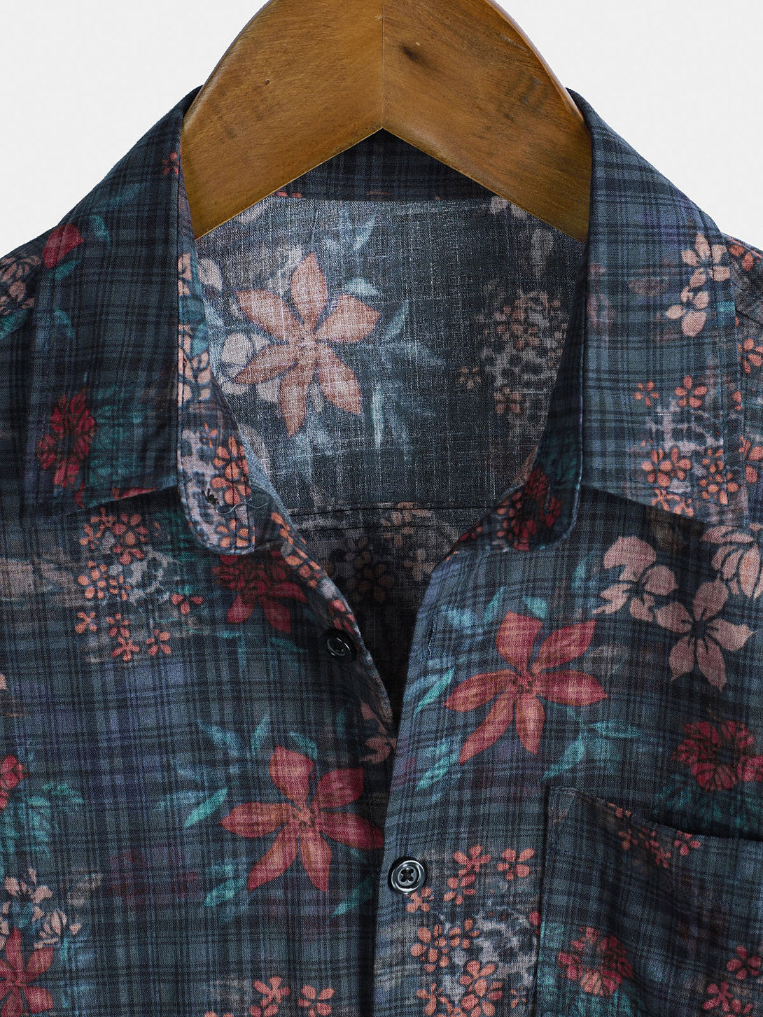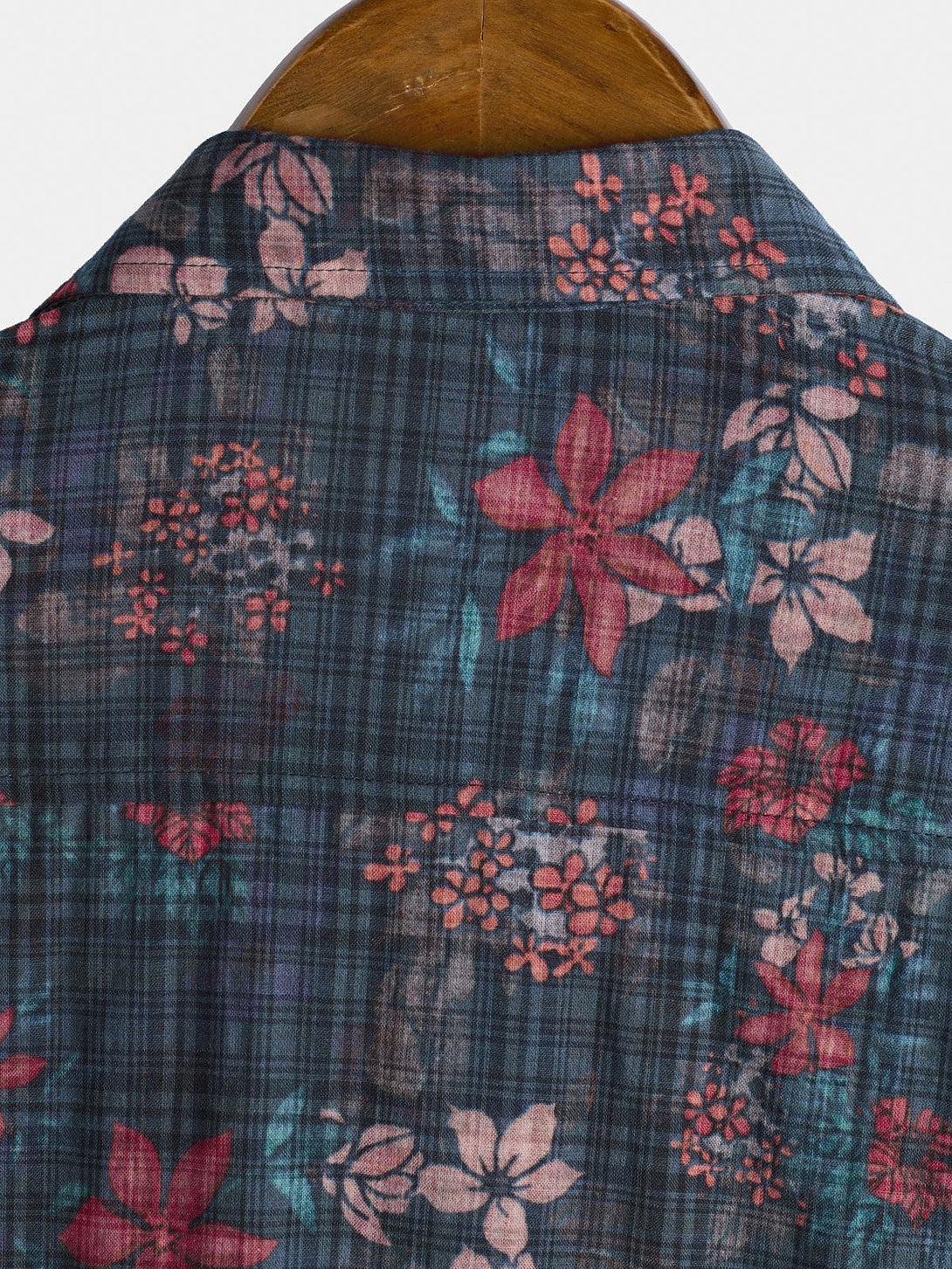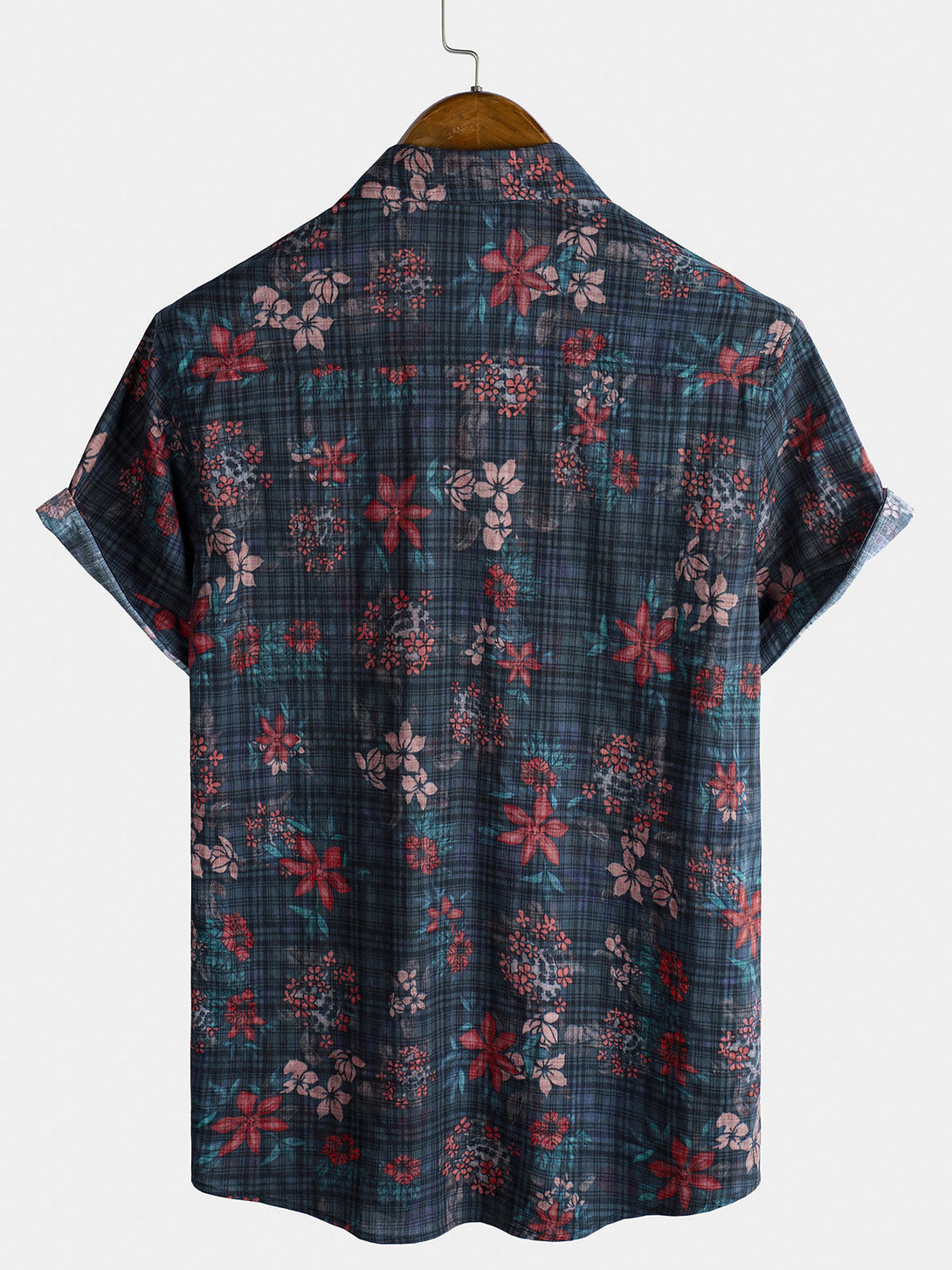 Men's Short-Sleeved Vintage Shirt With Tropical Floral Print For Vacation