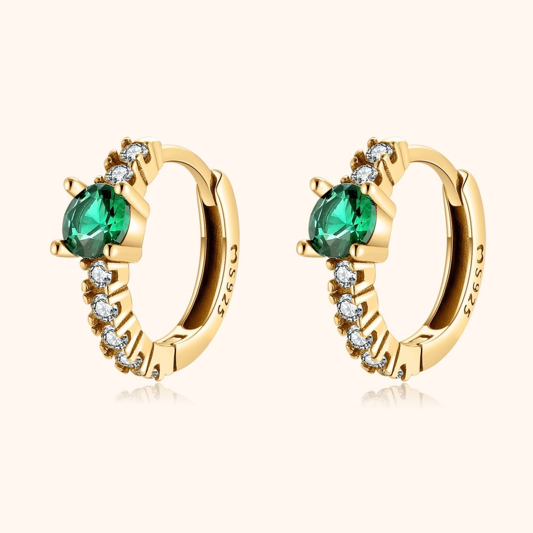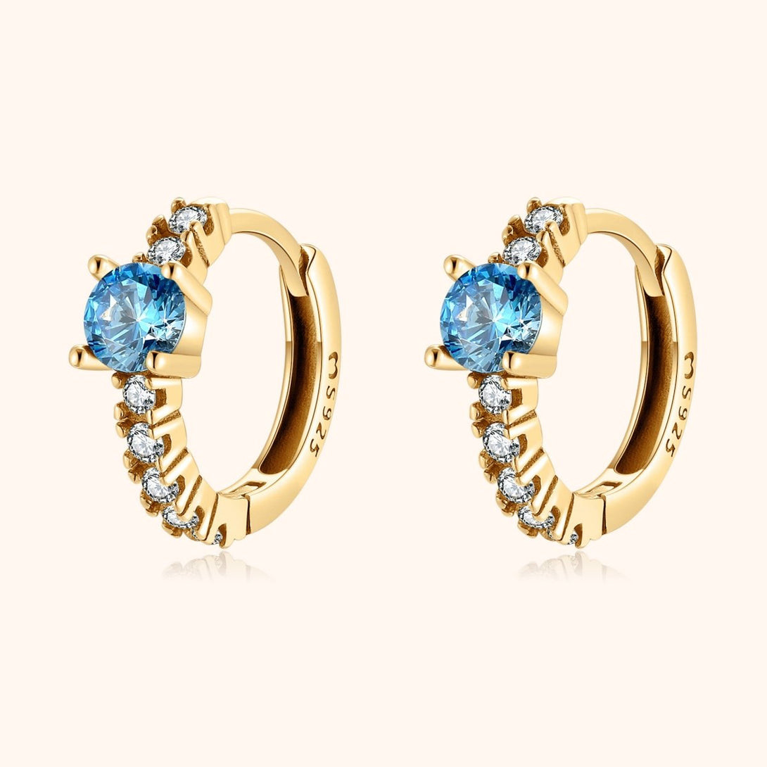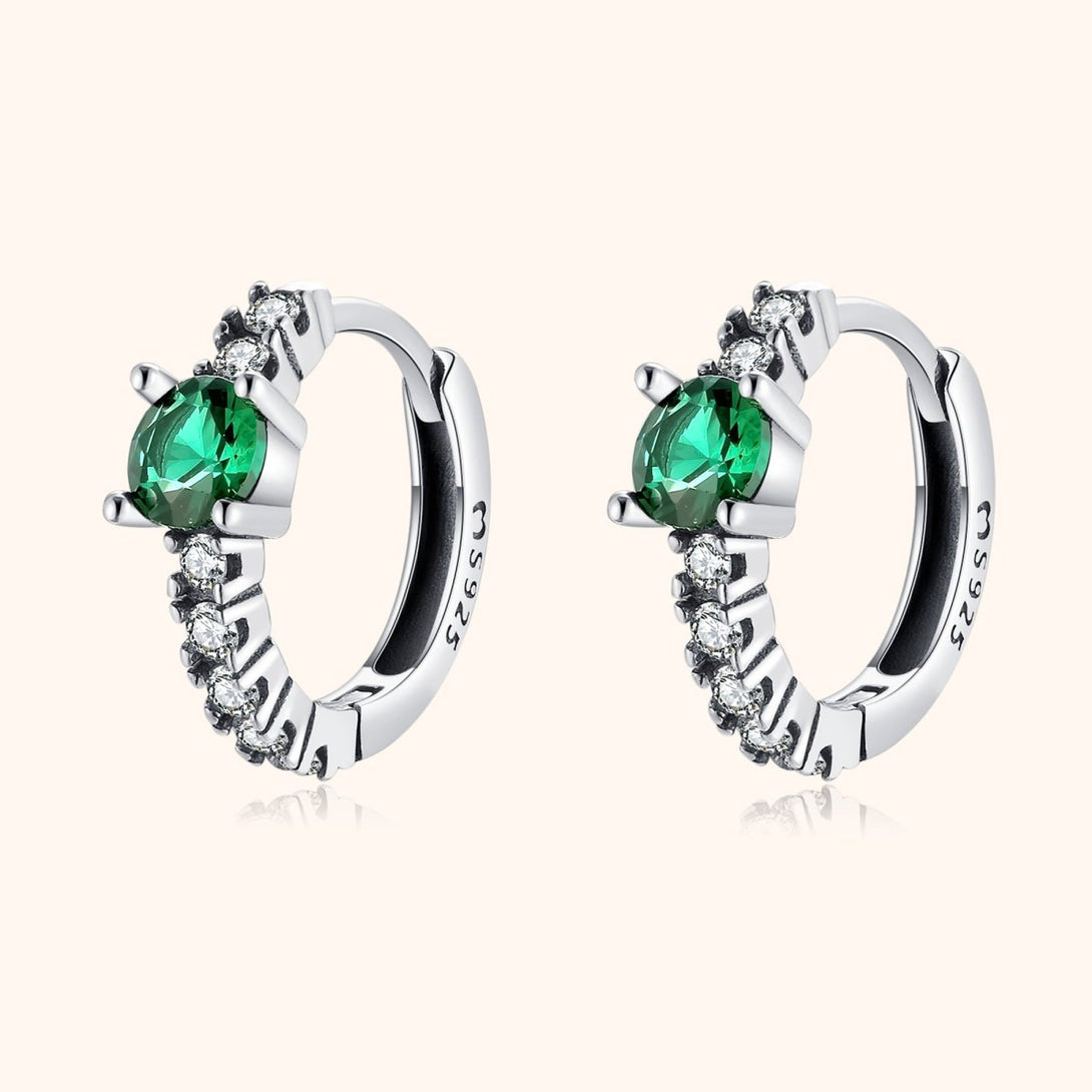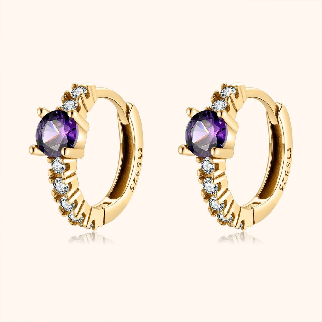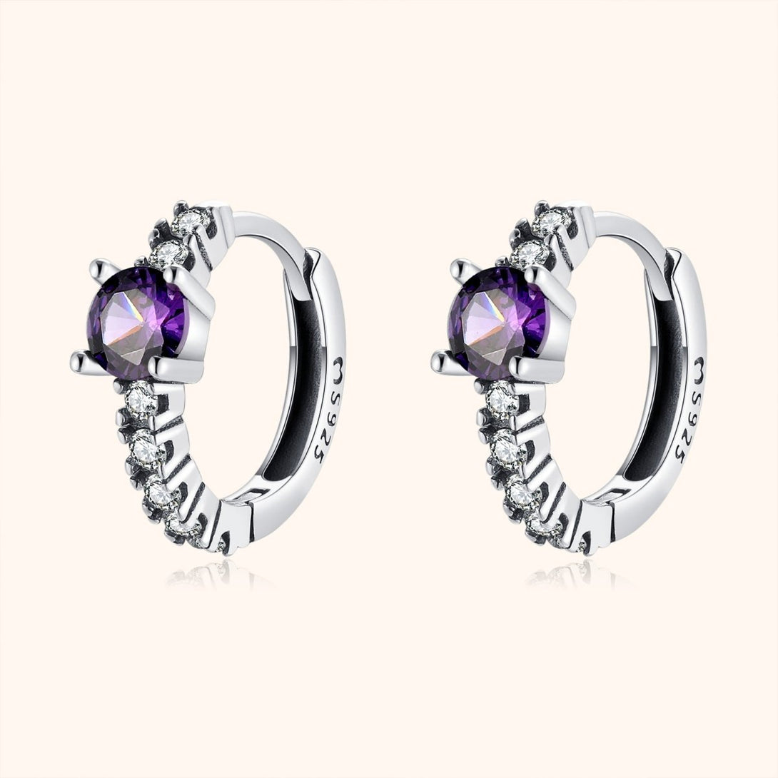 Shiny hoop earrings with a central zirconia in three colors to choose from, in sterling silver (S925).