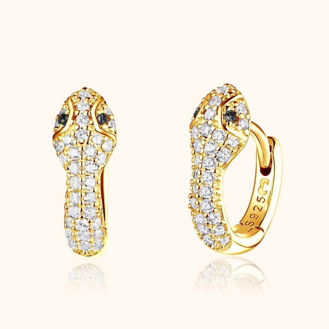 Snake-shaped earrings with small diamonds forming a ring, made of sterling silver (S925).