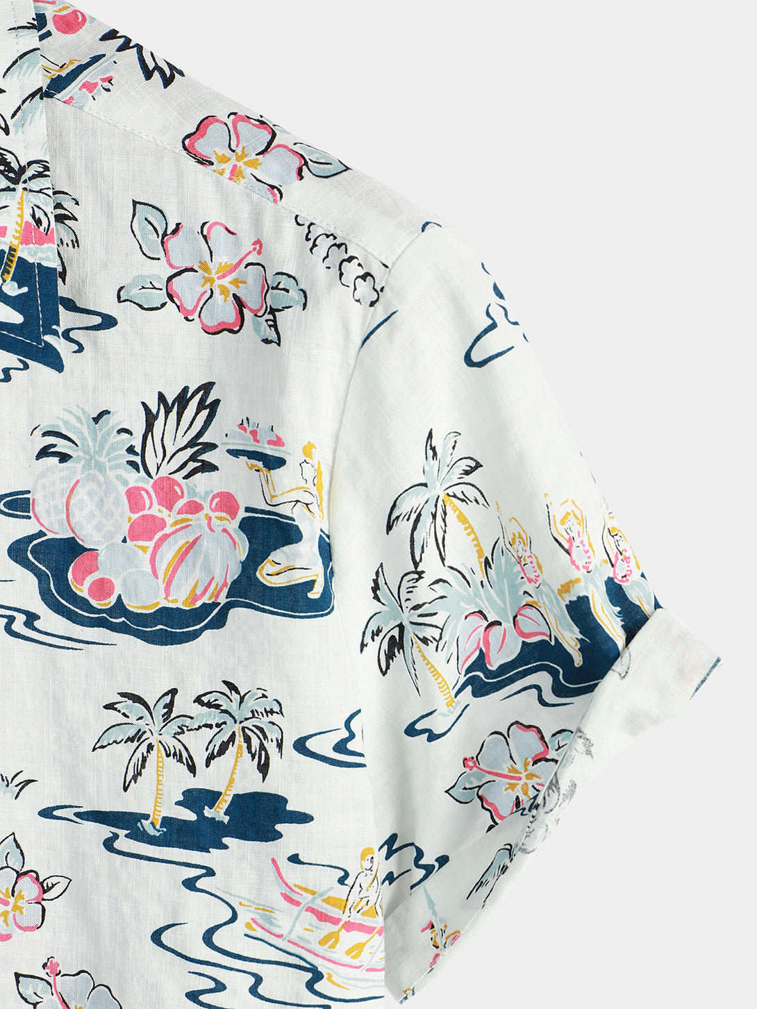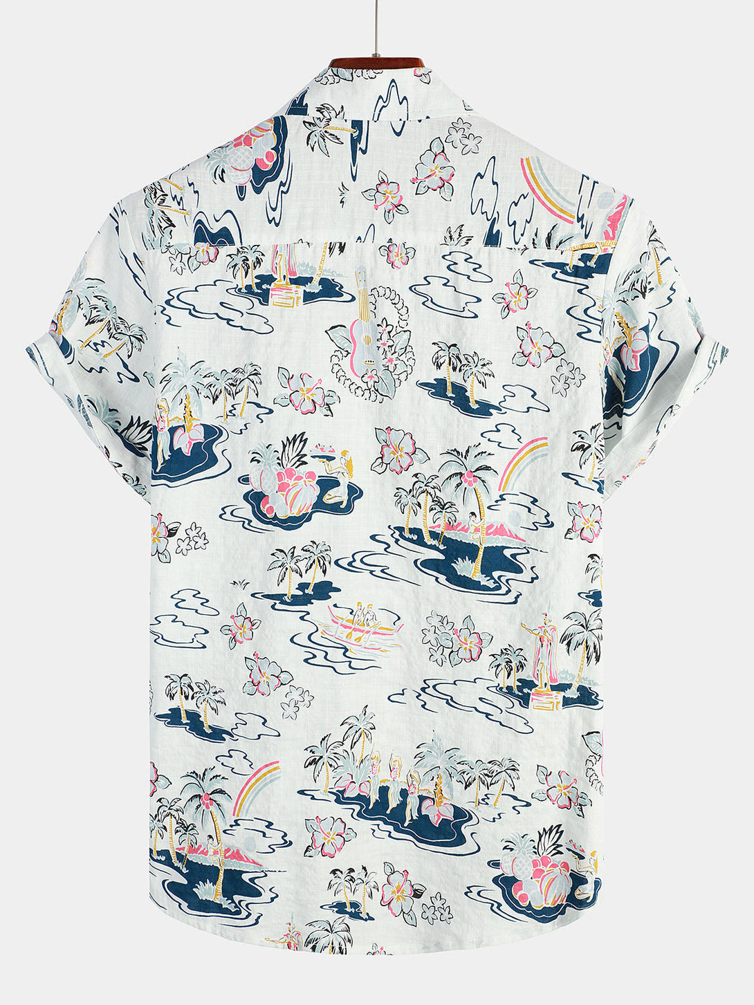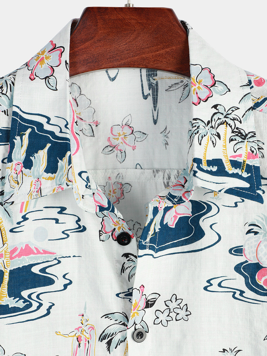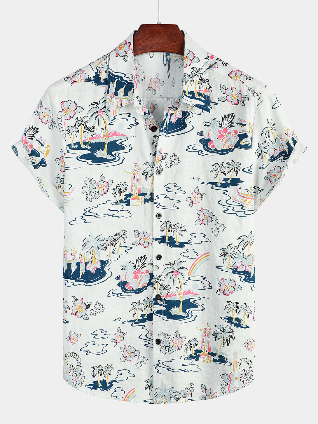 Casual Men's Shirt With Hawaiian Cotton Print And Short Sleeves