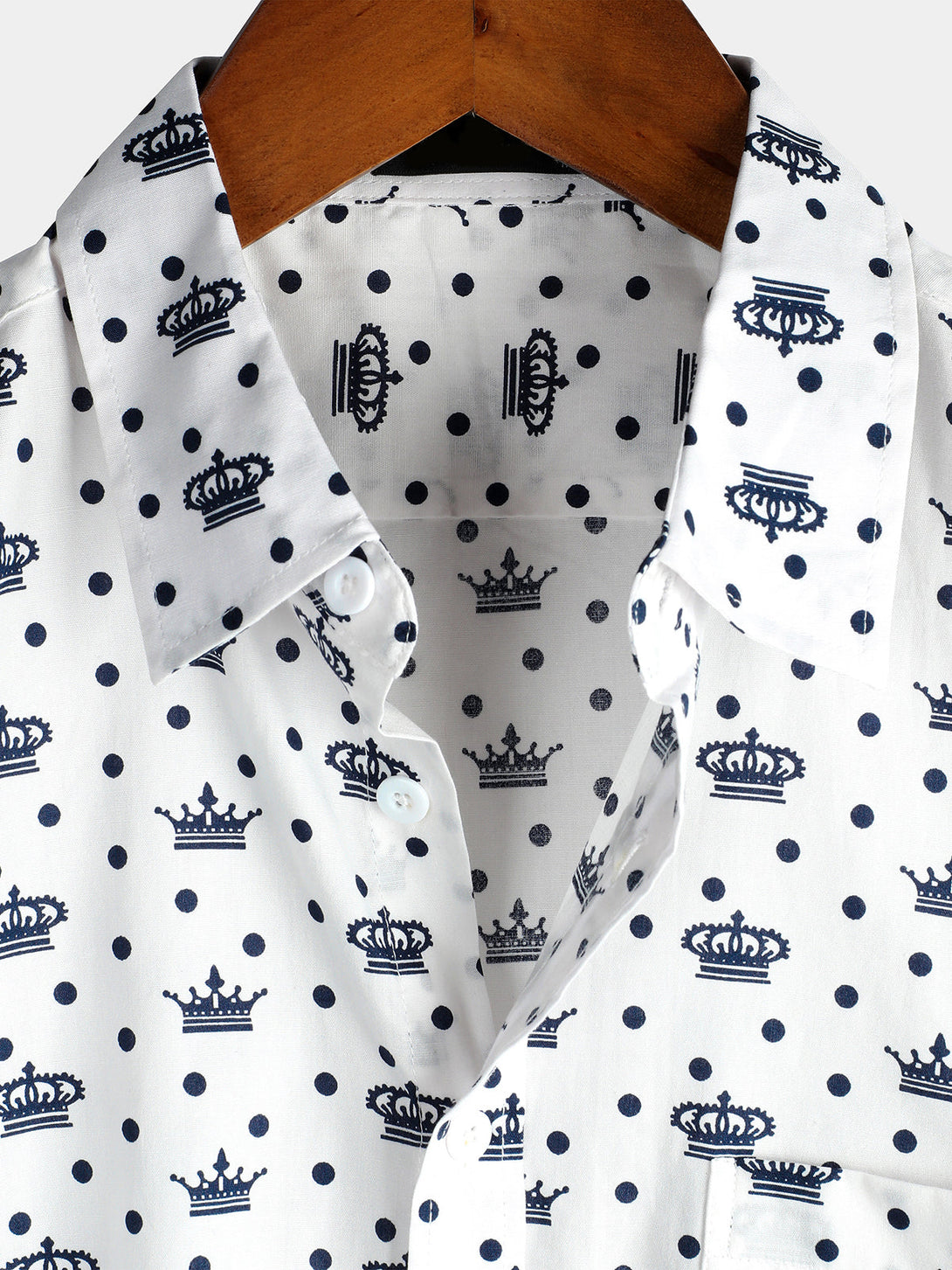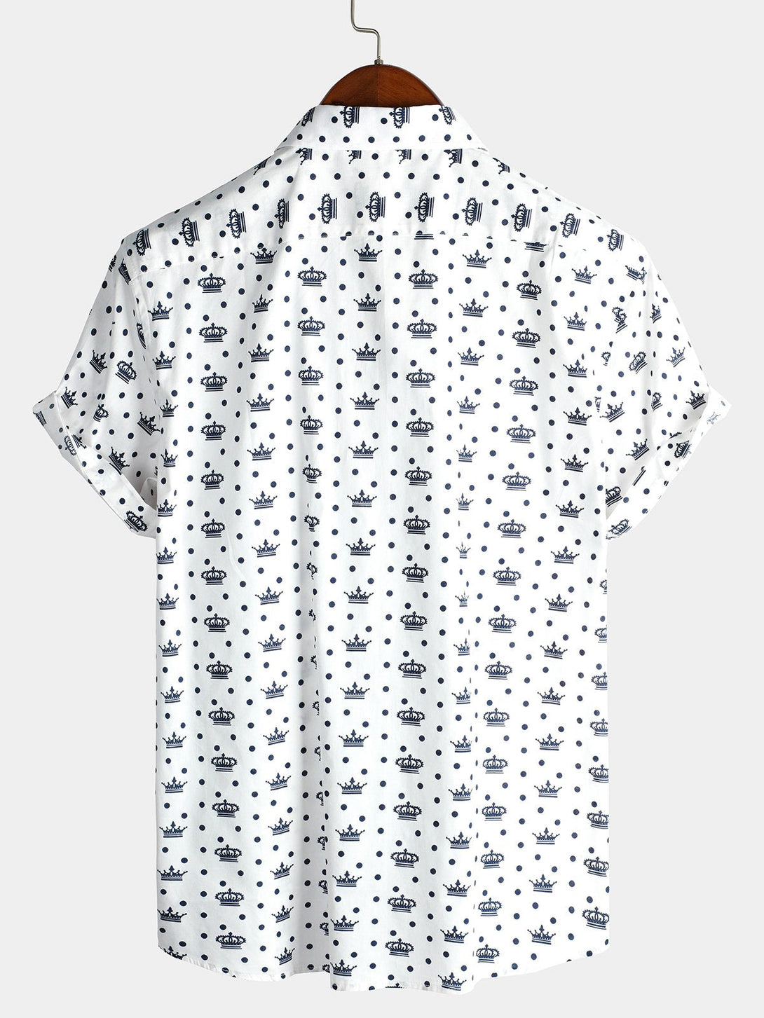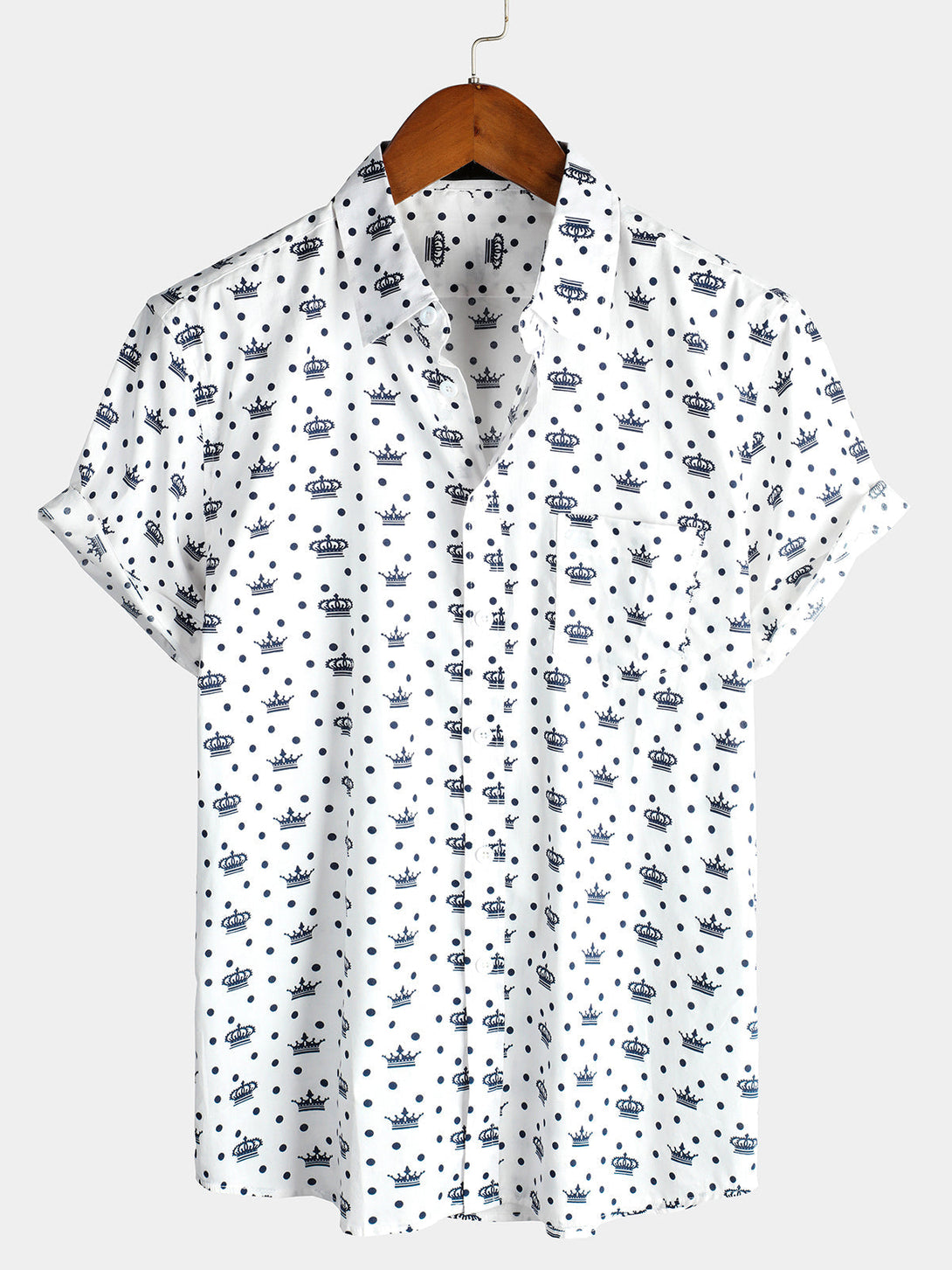 - Button-front shirt with a wide collar and short sleeves.