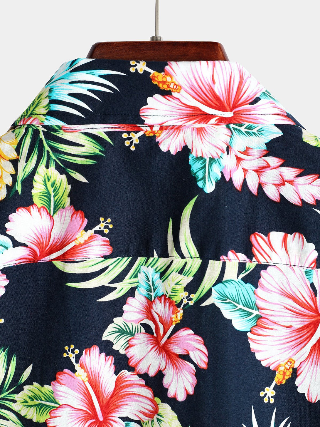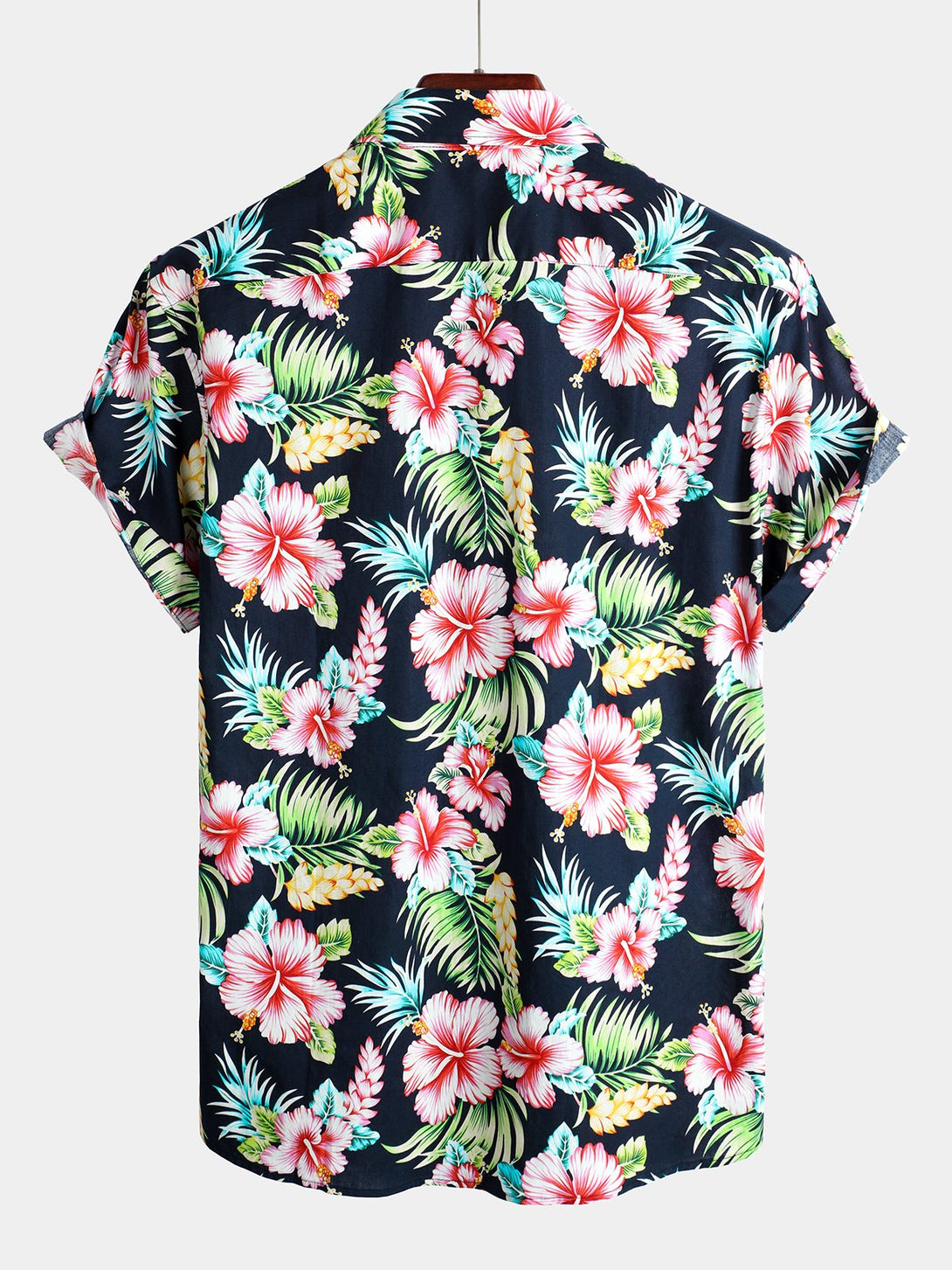 Men's Short-Sleeved Cotton Shirt With Floral Pattern In Dark Blue For Vacation