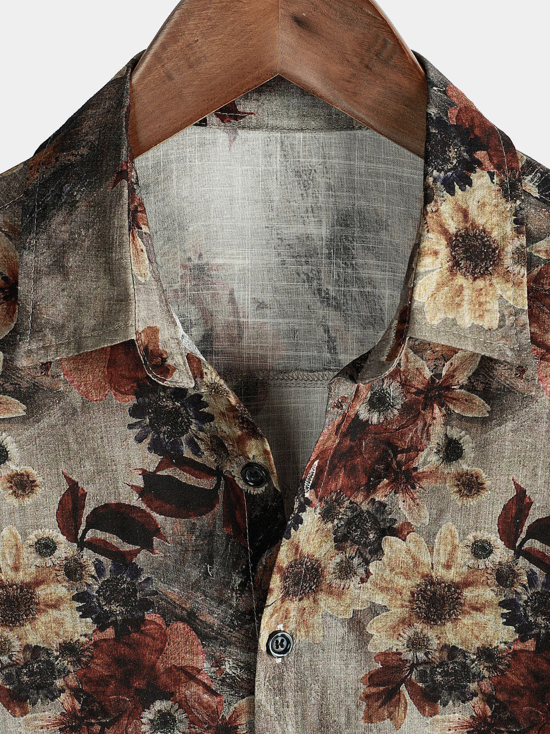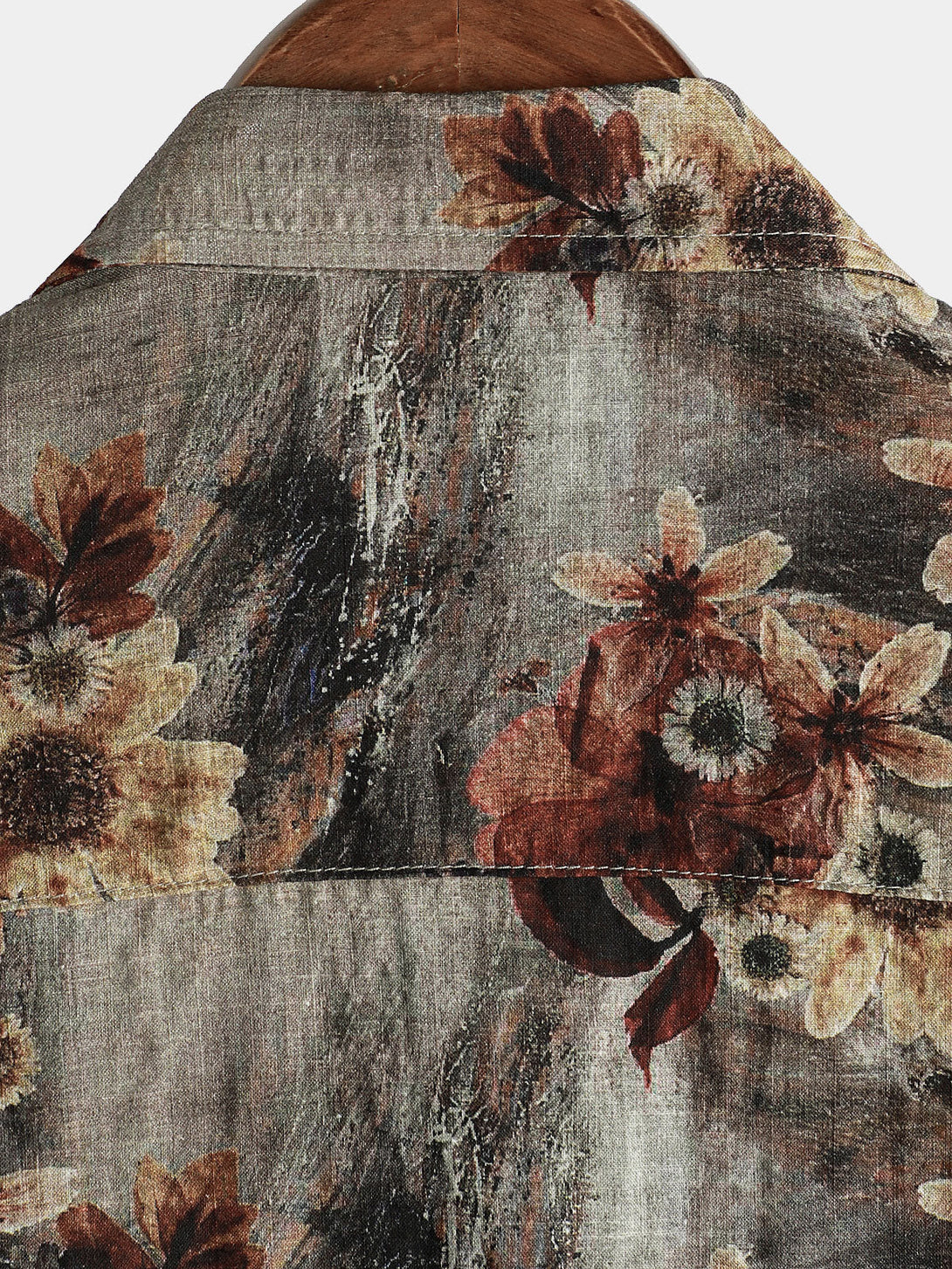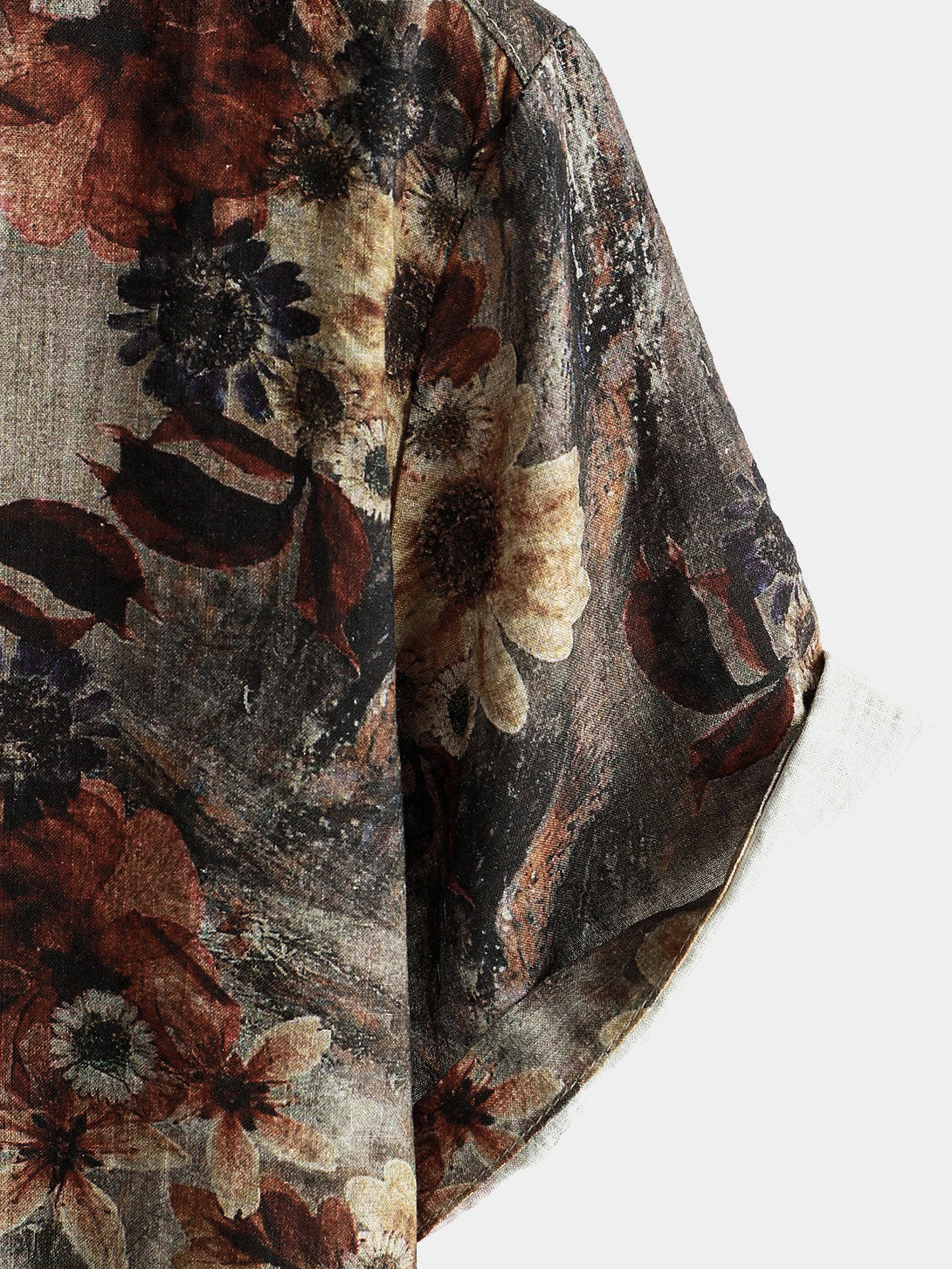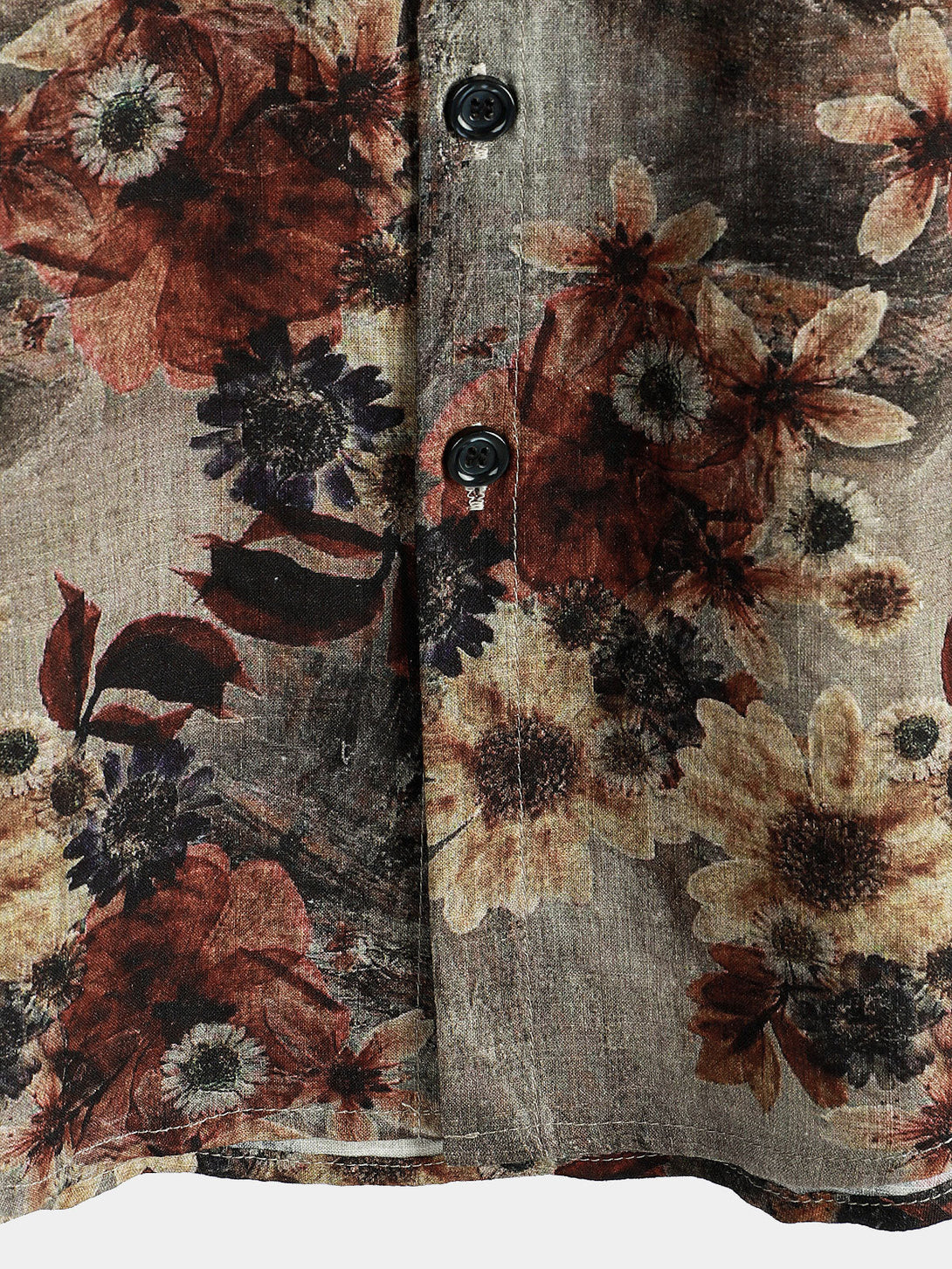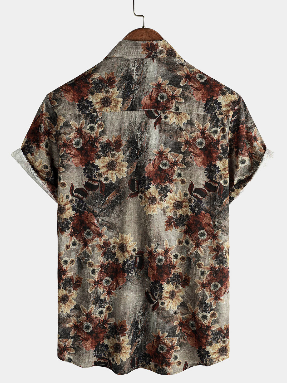 Men's Casual Short-Sleeved Shirt With Retro Floral Pattern