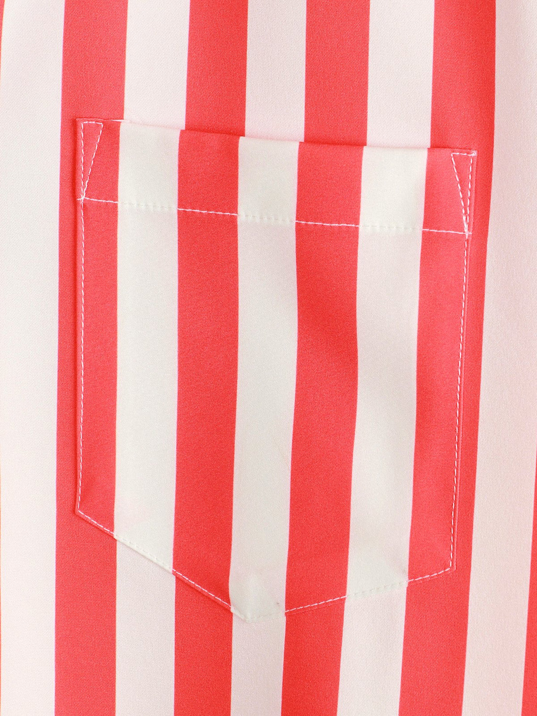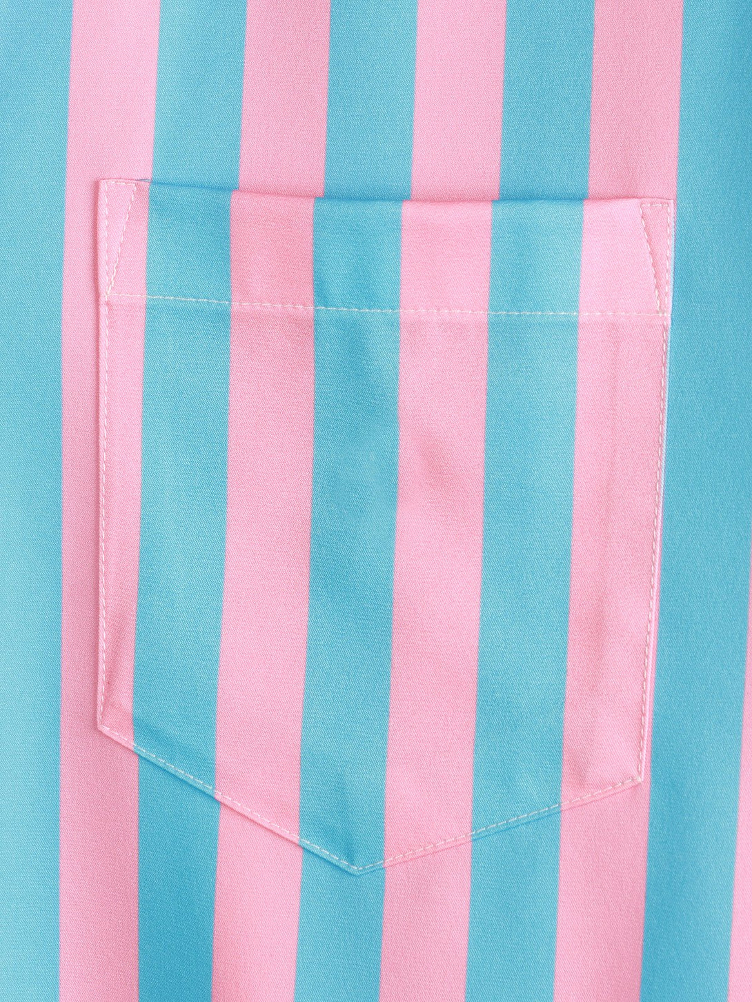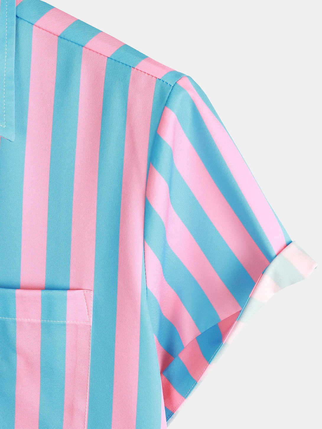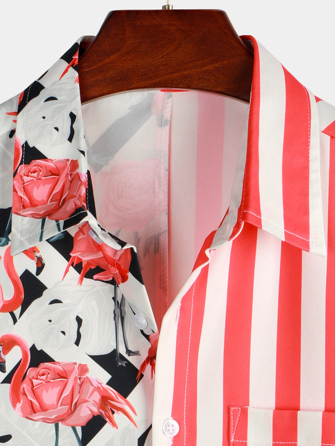 Men's Casual Shirt With Flamingo And Stripe Patchwork Pockets