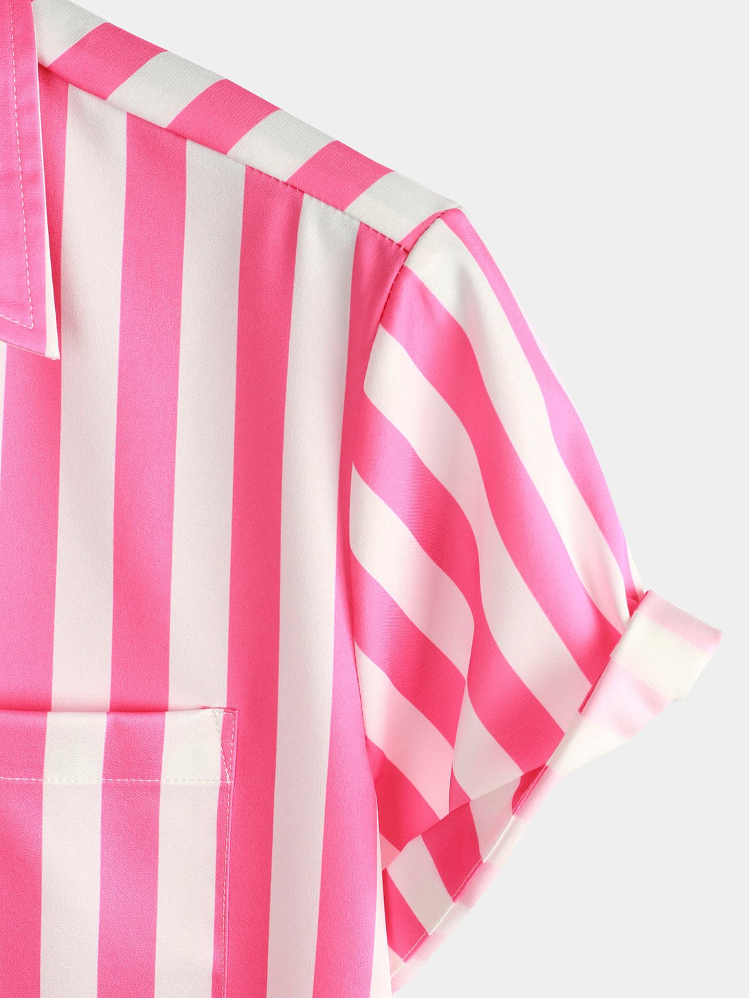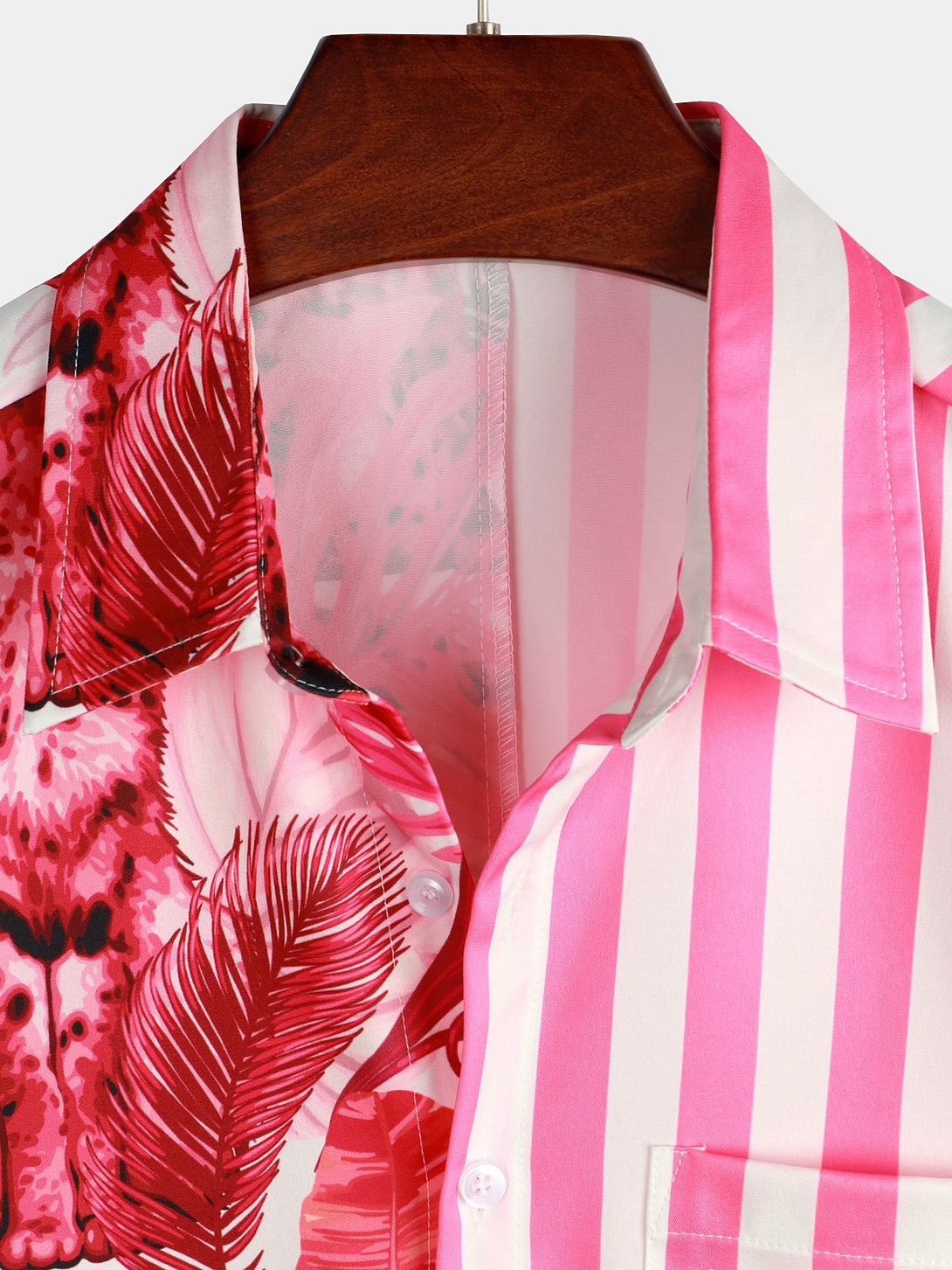 Men's Short-Sleeved Hawaiian Shirt With Striped Pockets