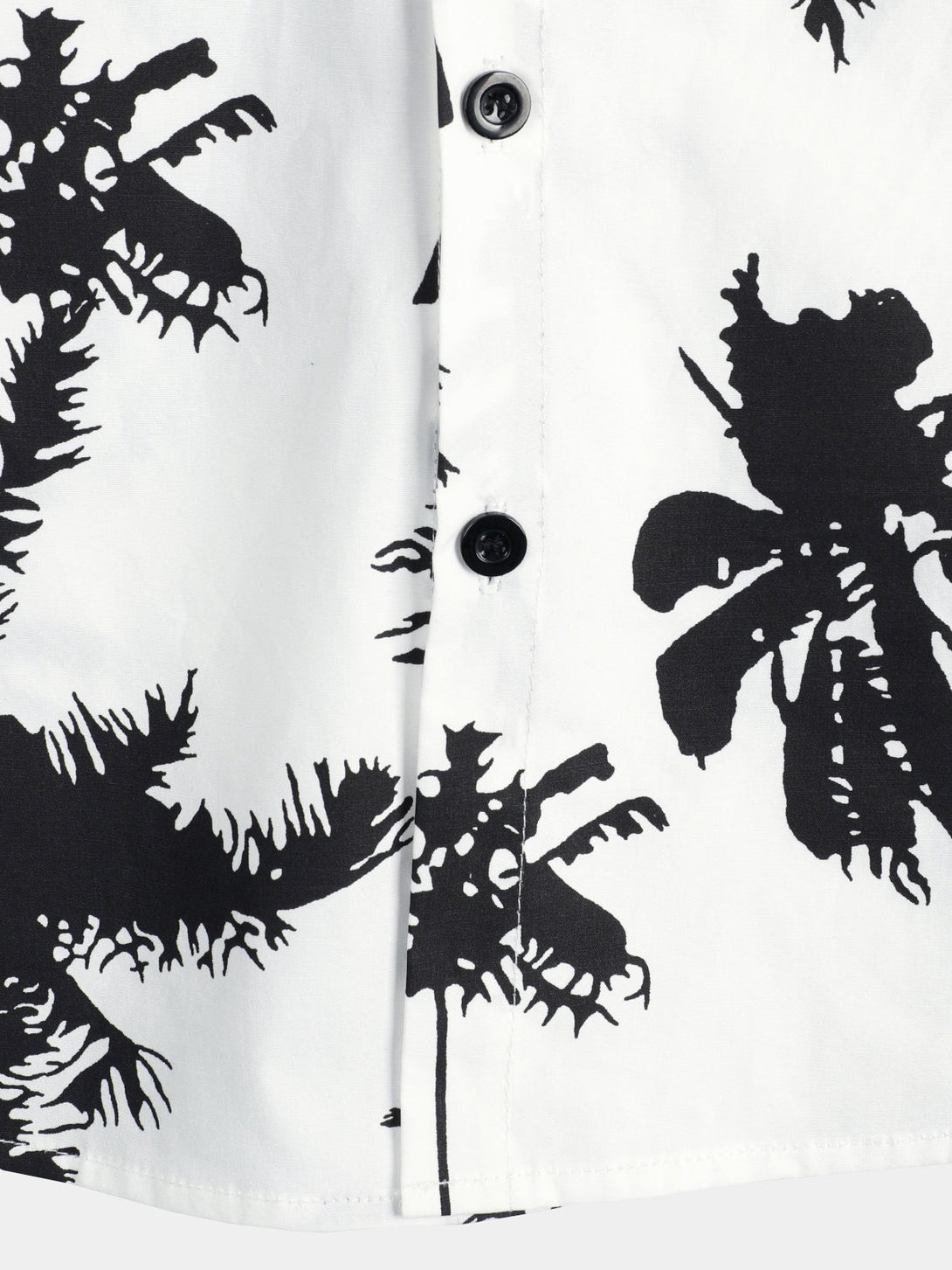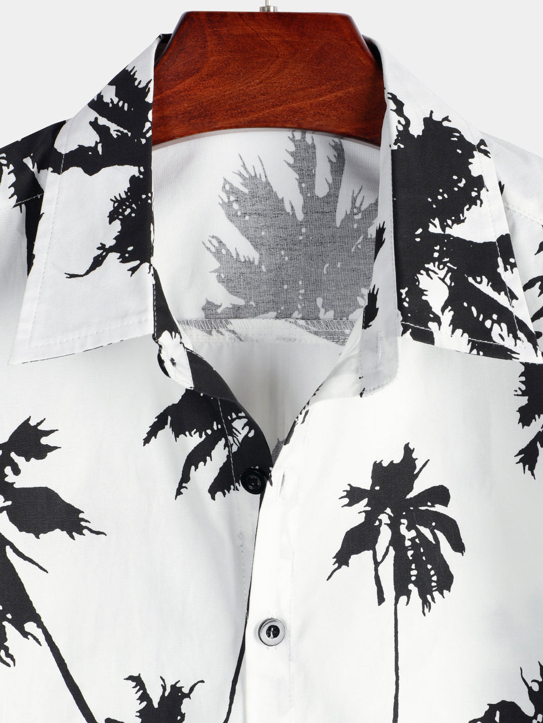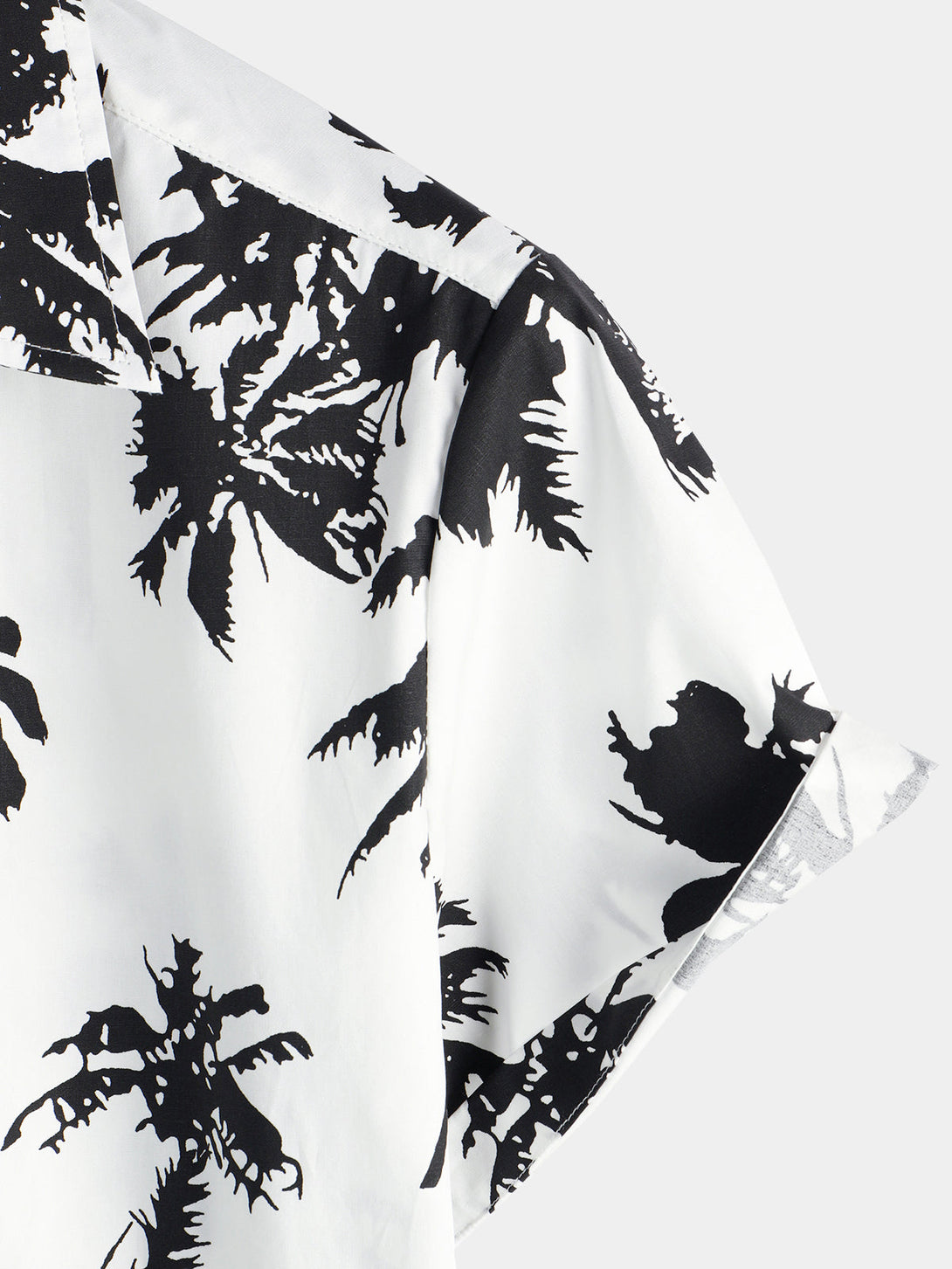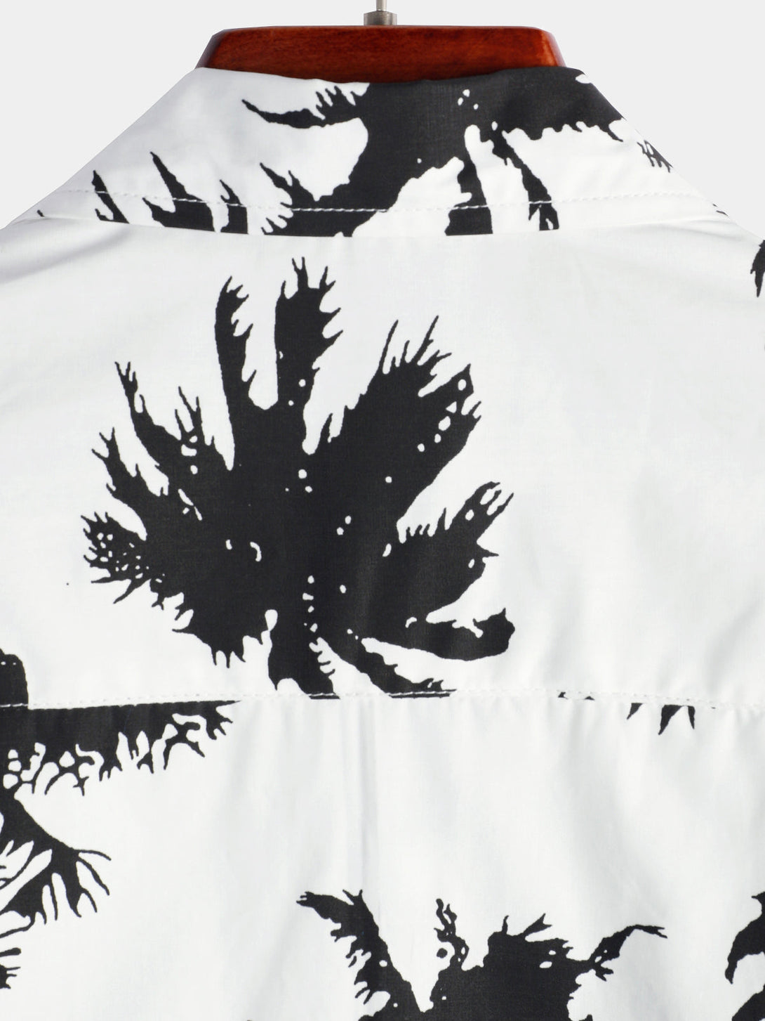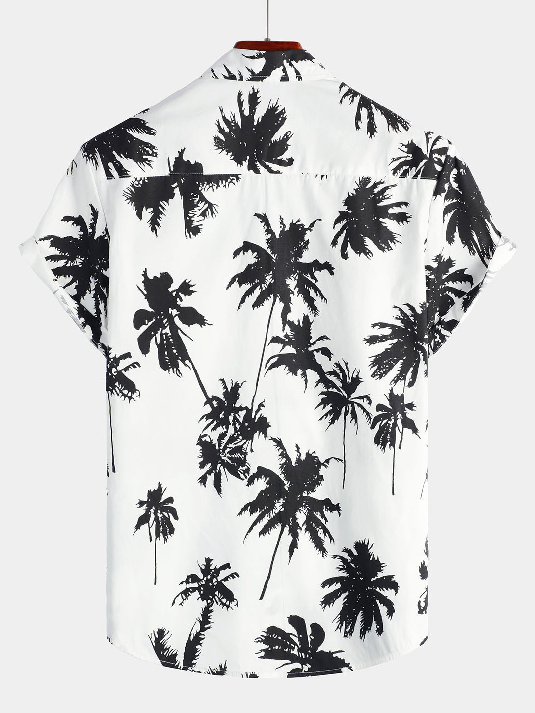 Men's Tropical Palm Print Cotton White Hawaiian Short Sleeve Summer Beach Cruise Camp Shirt