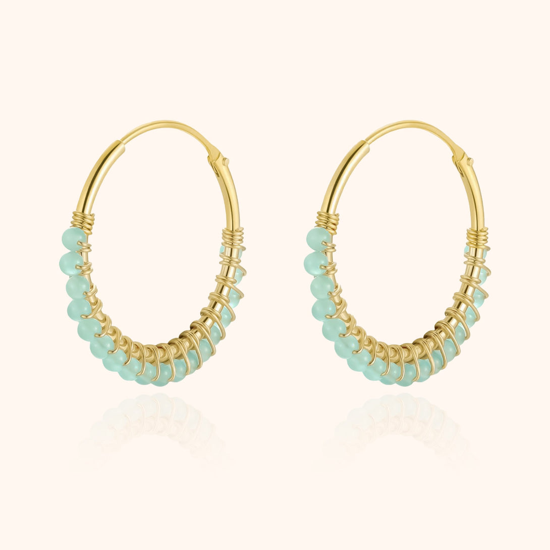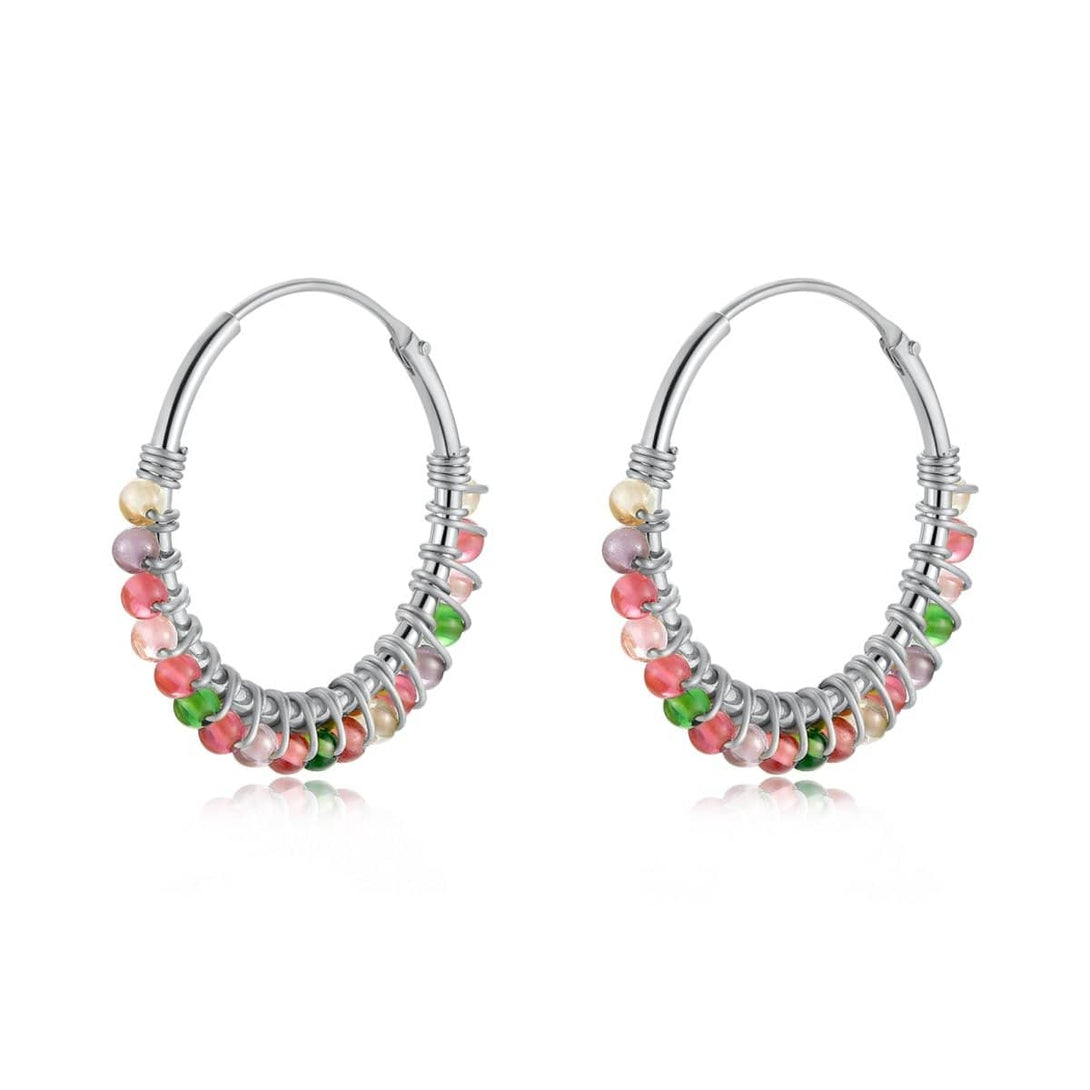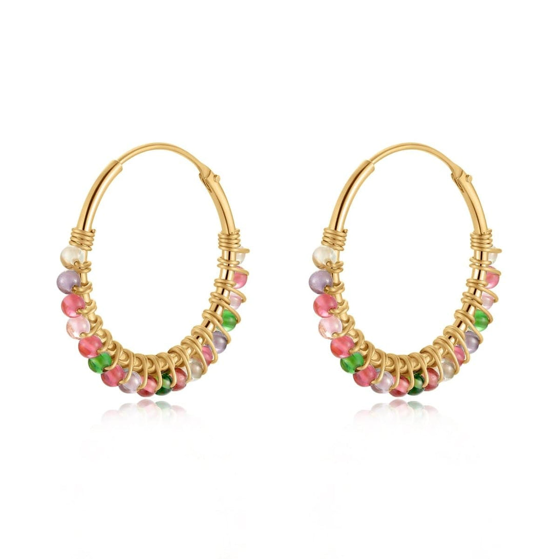 The beautiful, thin hoop shape, decorated with beads in super-cheerful colors, makes these earrings very easy to combine.